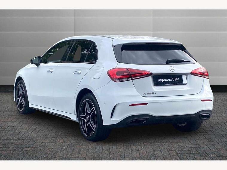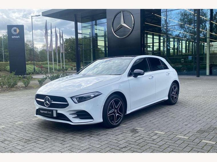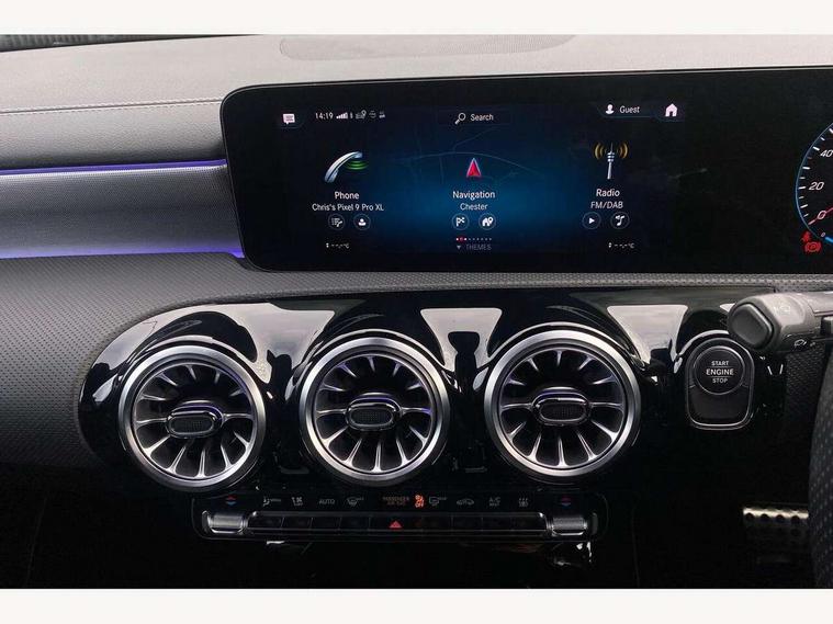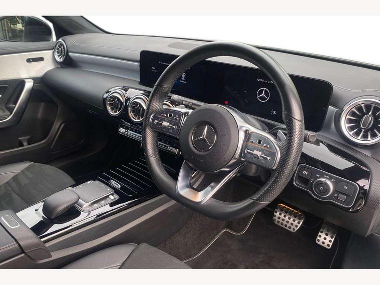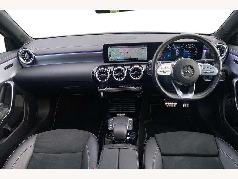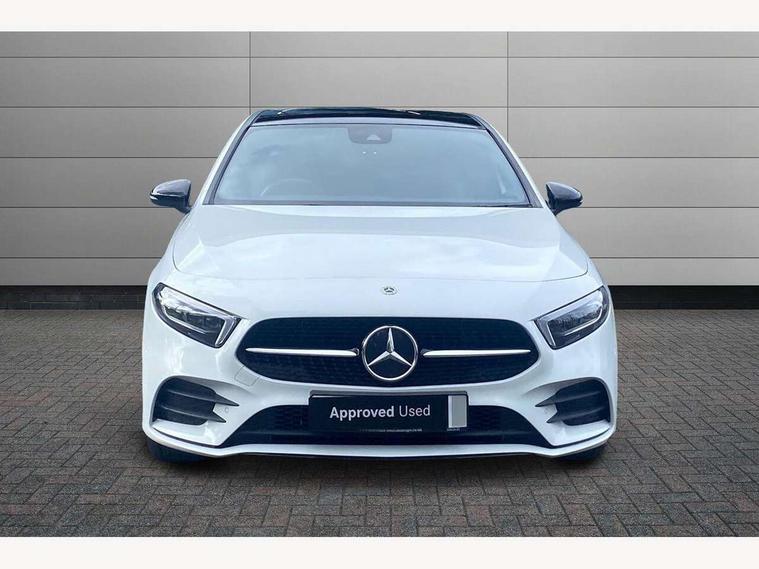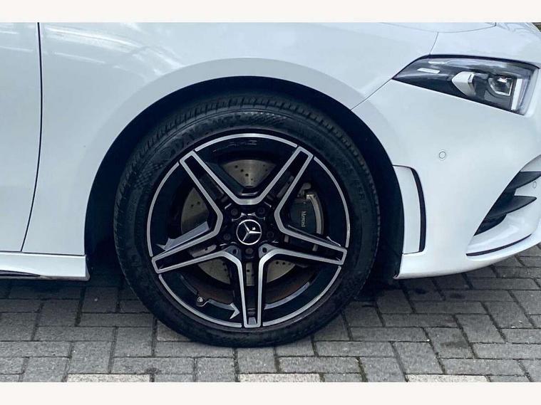 10.25" Digital instrument cluster display screen, 10.25" media display, 180 degree rear view camera with parking guidelines, Acoustic ambient protection, Active parking assist with visual and audible warning of detected obstacles, Attention assist, Brake pad wear indicator warning light, Car wash mode, Direct steering, Dual bluetooth interfaces, DYNAMIC SELECT with a choice of driving modes (ECO, Comfort, Sport and Individual), ECO start/stop function, Fluid level warning indicator for fuel, oil, coolant and washer fluid, Hard-disk navigation, Hey Mercedes Voice activation, Lamp failure indicator, Lane keeping system, Mercedes me connect including emergency call system, accident recovery, breakdown and maintenance management, Mercedes me remote services, Outside temperature gauge, Owners manual in English, Pre-installation for private car sharing, Preinstallation for Mercedes Benz link, Remote and charging services plus, Service indicator (ASSYST), Smartphone integration with Apple CarPlay and Android auto, Traffic sign assist, Trip computer, Ultrasonic sensors positioned in the front and rear bumpers, 7.4 kW monophase on board charger, Comfort suspension, Mode 2 charging cable with 3pin and 5m upto 2.3kW, Mode 3 charging cable 11 kW, Rear axle multi-link, 10 speakers, 2 USB ports (type C) in rear stowage compartment and one in front of center console, DAB Digital radio, MBUX multimedia system with DAB digital radio and touchpad including satellite navigation, Mercedes-Benz sound system - 100W, 4 Electric Front and Rear windows, Adaptive brake lights, AMG bodystyling - Front apron with splitter in chrome, rear apron with chrome trim and chrome visible trim elements in tailpipe, Automatic headlights, Black weather strip, Body colour bumpers, Body colour door handles, Body colour side skirt, Body coloured door mirrors, Edition badging on the front wings, Electric adjustable and heated door mirrors with integrated LED side indicators, Exclusive diamond radiator grille, Exhaust system - Twin visible tailpipes in polished stainless steel, Headlamp assist automatic headlamp activation, Heated glass rear windscreen + timer control, High gloss black beltline, LED daytime running lights, LED High level third brake light, LED tail lamp, Multibeam LED headlights with adaptive highbeam assist plus, Panoramic sliding sunroof, Privacy glass, Radio aerial, Rain sensing windscreen wipers with two sensitivity settings, Rear fog lights, Rear side wing doors, Rear wiper, Window line trim strip in high gloss black, 3 seat bench in 2nd row, 3 Spoke flat bottom leather multi function steering wheel with perforated leather in grip area, 40:20:40 split folding rear seats, Artico man-made leather/Microfibre Dinamica upholstery with contrast stitching in light grey, Auto Mercedes-Benz child seat recognition sensor, Black air vents with surround in silver chrome, Black roof lining, Brushed stainless steel sports pedals with rubber studs, Charging socket, Controller on centre console with chrome surround, Floor mats with black top stitching and embroidered edition logo and piping in light grey, Front centre armrest with storage compartment, Front seat backs luggage nets, Front seat cushion length adjustment, Galvanished gear shift paddles on steering wheel, Heated front seats, Height/reach adjustable steering column, Illuminated front door sills with changeable cover, Interior lighting - 64 colour Ambient lighting, Interior mirror with reading lamps in black and frameless, Pre-entry climate control, Rear armrest with 2 cupholders, Rear head restraints, Seat occupancy sensor for front passenger seat, Single front passenger seat, Sports seats with integrated headrests, Stowage compartment in centre console with retractable cover, Sunvisors with illuminated vanity mirrors, Touchpad on center console, Twin front cupholders, Two zone thermotronic luxury automatic climate control, Light and sight pack - A Class, Mirror package - A Class, Night pack - A Class Saloon/Hatchback, Seat comfort pack - A Class, 3 rear 3 point seatbelts, ABS with Brake Assist, Active bonnet, Adaptive brake assist with hold function and hill start assist, Black seatbelts, Childproof locks manually operated for rear doors and electrically operated for rear power windows, Crash responsive emergency lighting, Driver and passenger head and side airbags, Drivers knee airbag, Dual stage driver/passenger airbags, Electronic parking brake, ESP curve dynamic assist, ESP with ASR, Front and rear seatbelt reminder, Front brake callipers with Mercedes Benz lettering, ISOFIX and top tether child seat fixing points in two outer rear seats, Perforated front brake discs, Radar based regeneration, Tyre pressure monitoring system, Warning triangle and first aid kit, Window airbags, Alarm system/interior protection/immobiliser, Keyless entry lock/unlock, Keyless Go, Remote central locking and crash sensor with emergency opening function, Urban guard vehicle protection system with immobiliser and interior protection, Matrix look light longitudinal grain aluminium trim element, 18" AMG 5 twin spoke light alloy wheels aerodynamically optimised painted in black with highsheen finish, Summer tyres, Tirefit sealant kit,
