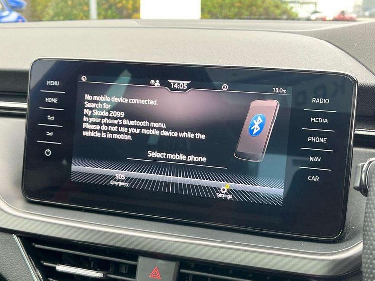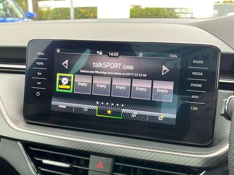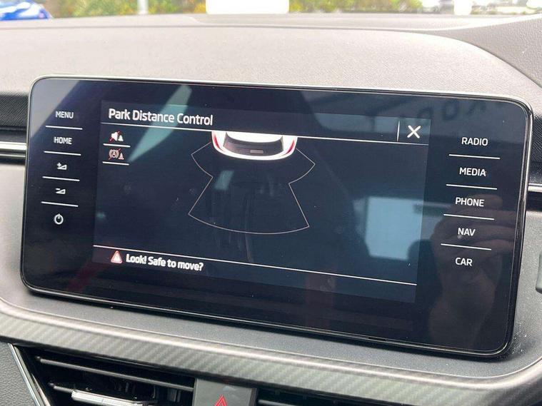 Amundsen satellite navigation with 9.2" glass colour touchscreen display, voice control, virtual cockpit, web radio and traffic sign recognition, Bluetooth system, E-call, Front assist system, Gesture control, PAS, Service indicator, Speed limiter, Virtual cockpit with 10.25" display, Wireless SmartLink for apple car play, android auto and mirrorlink, 8 Speakers, Auxiliary input socket, DAB Digital radio, Black door mirrors, Black radiator grille, Black rear diffuser, Body colour bumpers, Body colour door handles, Body colour roof spoiler, Boot lettering in black, Chrome grille surround, Dimming rear view mirror with black surround, Electrically adjustable and heated door mirrors, Front and rear electric windows, Front sport bumper, Full LED headlights with adaptive front light system and front cornering fog lights, Headlight range control, Heated rear window, High functionality rear led lights with dynamic indicators, KAMIQ Door sills, LED daytime running lights, Light sensors, Monte carlo plaque, Panoramic sunroof with black roof rails, Privacy glass, Rear fog lights, Rear side wing doors, Rear wiper, 12V Accessory socket in centre console, 3 seat bench in 2nd row, Aluminium pedals, Black ceiling for black/beige interior, Black roof lining, Chrome inner door handles, Cloth upholstery, Front head restraints, Glove compartment with illumination, Ice scraper, Isofix child seat fittings on outer rear seats, ISOFIX on front passenger seat, Leather gear lever, Manual lumbar support for front seats, Rake/reach adjustable steering wheel, Reading lights, Single front passenger seat, Sports seats, Sun visors with illumination on front passenger, Textile floor mats, Third rear headrest, Top tether for front passenger seat, Umbrella in driver's door, 3x3 point rear seatbelts, Airbags - driver and front passenger, ESP, Front passenger airbag deactivation switch, Front side airbags with curtain airbags, Hill hold control, Manual parking brake, Manual rear child locks, One tone horn, Rear disc brakes, Seatbelt reminder for driver an co-driver, Traction control, Tyre pressure monitor, Anti-theft alarm system with interior monitoring, backup horn, towing protection and remote central locking with SAFE system, Anti-theft wheel bolts, Electronic engine immobilizer, Chrome air vent surrounds, 18" Vega alloy wheels in black,