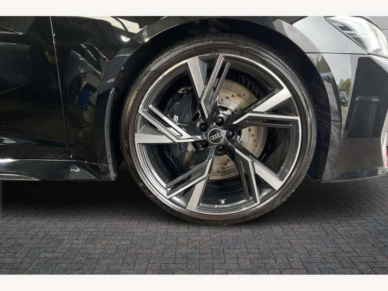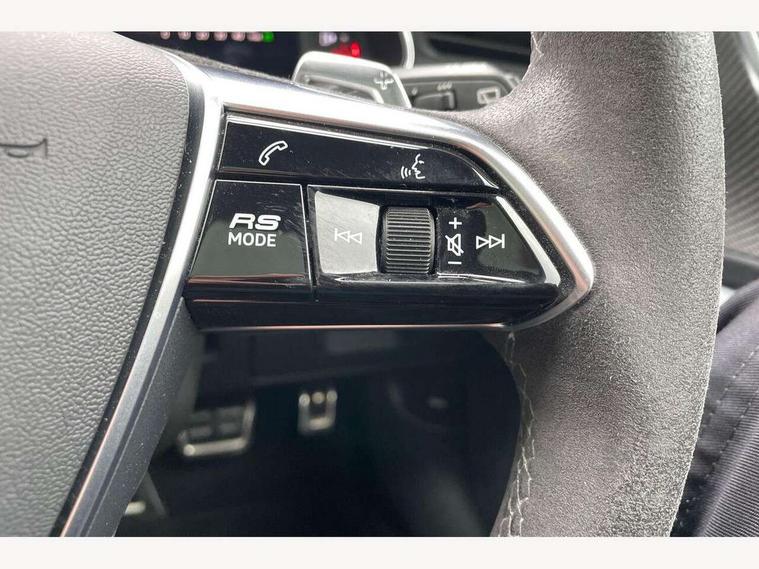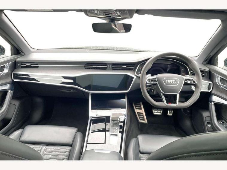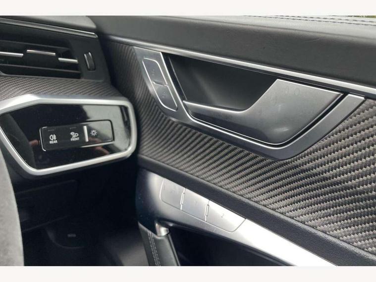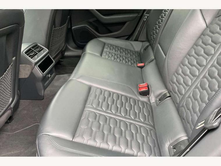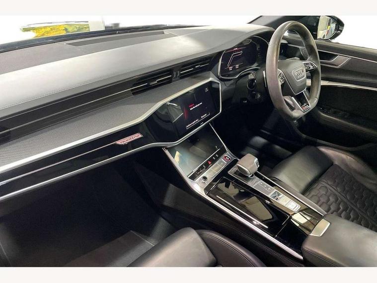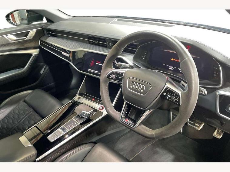 Audi connect safety and service (e-call), Audi connect with Amazon Alexa Integration, Audi drive select, Audi phone box with wireless charging, Audi smartphone interface includes wireless Apple carplay/Android Auto, Audi virtual cockpit plus with RS specific design and 12.3" display with additional graphic display options, Automatic start/stop system, Bluetooth interface, Dynamic all wheel steering, Lane departure warning system, MMI navigation with MMI touch + twin touch screens 10.1" and 8.6" with haptic and acoustic feedback, Operating buttons in black, glass look with haptic feedback including extended aluminium look, Power operated tailgate, Rear view camera, Service interval indicator, Voice control system, 73 litre fuel tank, Quattro sports differential, Audi music interface, Audi sound system, DAB Digital radio, Adaptive windscreen wipers with integrated washer jets, Black mirror caps, Body colour rear roof spoiler, Electric front/rear windows, Electrically adjustable, heated and folding door mirrors with integrated LED indicators and kerb view function for passenger side, Frameless auto dimming interior rear view mirror, HD Matrix LED headlights with Audi laser light with dynamic light design and dynamic turn signal, Headlight washers, Heat insulating glass in side and rear windows, Illuminated door sill trims with RS lettering, LED rear combination lamps with dynamic light design and dynamic turn signal, Privacy glass with rear/side windows and acoustic glazing side windows, Radiator grille in honeycomb structure, large front air inlets and rear diffuser in gloss black, Rain and light sensors, Rear wiper, RS front bumper with air inlets on both side, Wheel arch extensions, 4 way electric lumbar support for driver and front passenger, 4 zone deluxe automatic climate control, Aluminiium gear shift paddles, Audi Sport logo projection (Audi Beam) in front and rear, Black cloth headlining, Electric steering wheel adjustment, Electrically adjustable front seats with driver memory, Front and rear headrests, Front centre armrest, Front seat ventilation, Front/rear floor mats, Heated front seats, ISOFIX child seat mounting and Top Tether with front passenger airbag deactivation, Leatherette on upper instrument panel and door shoulders, RS Front sports seats, Stainless steel pedals and foot rest, Valcona leather upholstery with perforated honeycomb and RS lettering, Air quality pack - RS6, Carbon black styling pack - RS6, Extended LED interior multi coloured lighting pack - RS6, RS Grey design pack - RS6, Storage pack - RS6, 2 x 3-point rear seat belts, Airbags - Front side, front and rear including head, Audi pre-sense front, Direct tyre pressure monitoring system, EBD - Electronic brakeforce distribution, Electromechanical parking brake, Electronic Stability Control (ESC) including ABS, ASR and EDL, Extended pedestrian protection measures, Warning triangle and first aid kit, Anti theft alarm with tow away protection, Anti-theft wheel bolts and wheel loosening detection, Immobiliser, Keyless Go, Remote central locking, Carbon twill inserts, 22" Gloss black turned finish alloy wheels, Tyre repair kit,