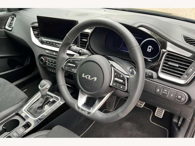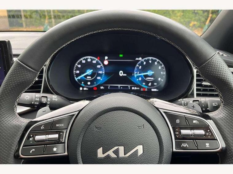 10.25" touchscreen satellite navigation, 12.3" TFT supervision cluster display, Apple car play/Android Auto with voice control, Blind spot Collision Warning (BCW), Bluetooth with Voice Recognition & Music Streaming, Drive mode select (Normal and Sport), Driver attention warning + (DAW) with leading vehicle departure warning, Emergency call service, Emergency stop signalling system, Forward Collision-Avoidance Assist (FCA) - City/Pedestrian/Cyclist, Intelligent speed limit warning, Kia connect UVO, Lane Following Assist (LFA), Lane keep assist, Manual speed limit assist, Motor driven power steering, Rear cross-collision assist, Reversing camera system with dynamic guidelines (Integrated into centre fascia screen), Smart cruise control with stop/go functionality, Smart park assist system (SPAS) with parallel/perpendicular with front/rear parking sensor, Trip computer, Wireless Mobile Phone Charger, Intelligent Stop and Go, DAB Radio with MP3, Illuminated USB ports, JBL Premium sound system with 8 speakers, Steering wheel mounted controls, USB Fast Charger in Front Centre Console, USB type A port, All-round Electric Windows with Front Auto Up & Down Function, Auto dimming rear view mirror, Automatic defog system, Automatic headlights control, Body colour bumpers, Body colour exterior door handles, Body coloured and dark chrome rear skid plate, Body coloured side sill mouldings, Dark chrome window surround, Electric adjustable/heated/folding door mirrors with LED Indicators, Heated rear window with timer, High beam assist, High gloss black and dark chrome radiator grille, High gloss black door mirrors, High Gloss Black rear spoiler - roof, LED daytime running lights, LED front fog lights, LED Headlights, LED High-mounted Brake Light, LED honeycomb rear light, LED rear combination lights, Panoramic sunroof with tilt/slide function and automatic electric roll blinds, Privacy glass (rear side windows and tailgate), Rain sensing front wipers, Rear side wing doors, Rear wash/wipe, Satin chrome dual exhaust trim, Tinted glass, Wide view drivers door mirror, Windscreen Washer Level Warning, 1 x Front 12V socket, 12V power socket in luggage compartment, 3 seat bench in 2nd row, 3 x passenger assist grips, 60/40 split folding rear seat, All-round height adjustable headrests, Aluminium pedals, Centre console storage box/armrest, Cupholders in centre console, Cupholders in rear armrest, Dash illumination dimmer switch, Door courtesy lamps, Driver & Front Passenger Sunvisors with Vanity Mirror Illumination & Ticket Holder, Driver + front passenger electric lumbar support, Driver's power seat height adjuster, Dual Height Luggage Area Floor, Dual zone automatic air conditioning, Faux leather door centre trim, Front and rear door storage, Front cabin map light with sunglasses case, Front Passenger Seat Height Adjuster, Front seat back pockets, Heated front seats, Heated rear seats, Heated steering wheel, Interior door lock/unlock function, ISOFIX Child seat top tethers and anchor fixings, Leather D-Cut steering wheel, Leather handbrake, Leather/suede upholstery, Luggage area light, Luggage area parcel shelf, Luggage hooks, Memory driver's seat, Rear centre armrest, Rear coat hooks, Single front passenger seat, Tilt/telescopic adjustable steering wheel, All round 3-point seatbelts, Anti-lock braking system (ABS), Brake assist system, Dual front side airbags, Dual horn, EBD - Electronic brakeforce distribution, Electronic parking brake, Electronic stability control (ESC) and vehicle stability management (VSM), Front passenger airbag cut-off switch, Height adjustable front seatbelts, Hill start assist control (HAC), Impact sensing auto door unlocking, Rear door child safety locks, Seatbelt reminder warning, Twin curtain airbags, Twin front airbags, Tyre pressure monitoring system, Alarm system, Engine Immobiliser & Deadlocks, Engine Start/Stop Button with Smart Entry System, Locking wheel nuts, Speed sensitive auto door locking, Satin Chrome Fascia Trim, 18" GT-Line S alloy wheels, Tyre mobility kit,