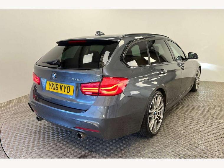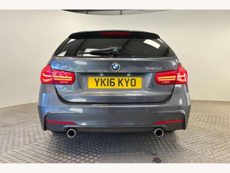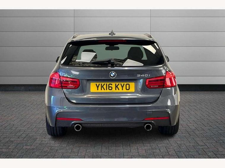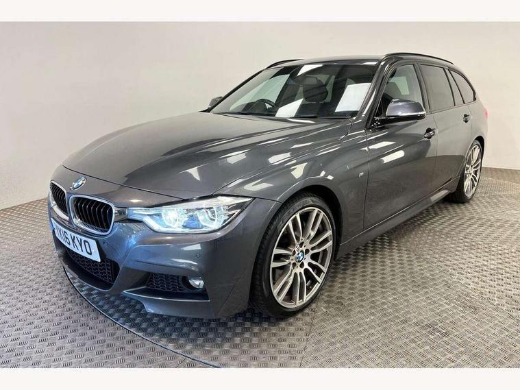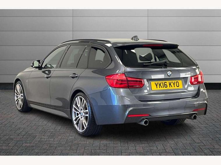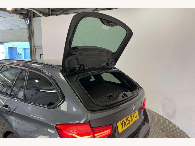 Automatic tailgate operation, BMW Online services, BMW Teleservices, Brake force display, Brake pad wear indicator warning light, Check control system, Digital clock, Door/boot open warning light, Front/rear park distance control, Lights on warning, Oil temperature gauge, On board computer, On board diagnostics, Operation warning of all exterior lights, Outside temperature display, Push button starter, Service interval indicator, Servotronic PAS, Traffic message channel (TMC), Drive Performance Control, Electronic differential lock, Sports function on gearbox with steering wheel mounted gearshift paddles, Auxiliary point for auxiliary devices, BMW professional radio/CD/MP3, CD Changer preparation, DAB Digital radio, 'Guide me home' headlamps, 2 speed adjustable intermittent wipers with wash/wipe function, Auto dimming rear view mirror, Automatic headlight beam throw control, Body colour bumpers, Body colour door handles, Body colour electric adjustable door mirrors, Body colour roof mouldings, Chromed finished twin exhaust, Clear indicator lenses, Door sill finishers, Dynamic brake lights, Electric front and rear windows with one touch/convenient open/close function, Front ornamental grille with black kidney bars and chrome bezel, Green tinted heat insulating glass, Heated rear window with automatic switch off, Heated windscreen washer jets, High gloss shadow line, Independent opening for tailgate window, LED daytime running lights, LED fog lights, M aerodynamic body styling, Rain sensor + automatic driving lights control, Rear wash/wipe, Shark fin roof aerial, 12V sockets in front centre console and passenger footwell, 2 bag hooks in luggage compartment, 2 x folding cupholders in instrument panel above glovebox, 3 rear seat head restraints, 4 foldable grab handles - rear with clothes hook, 4 lashing points to secure luggage, 40:20:40 split folding rear bench seat, Ambient lighting, Automatic interior light soft on/soft off system, Driver and passenger sunvisors with vanity mirrors + slide cover, Dual zone automatic air conditioning, Foldable boot floor with storage compartment, Folding front centre armrest + storage, Front and rear door armrests, Front and rear velour floor mats, Front door storage bins with bottle holder, Front sports seats with electric side bolster adjustment, Glovebox light, Height adjustable front headrests, Indirect front interior illumination - soft-light function, Individual anthracite headlining, Isofix system on outer rear seats, Leather gear knob, Leather gear selector lever handle, Leather handbrake grip, Lockable glovebox, Luggage compartment lighting, Luggage strap, M sports leather steering wheel, Multi-function controls for steering wheel, Reach + rake adjustable steering column, Rear centre armrest with 2 cupholders, Rear storage compartment in multifunction centre console with sliding cover, Retractable luggage cover, Separation net, Storage compartment in rear doors, Through load system, Toolkit located in luggage compartment, Extended lighting package - 3 Series, Interior lights pack - 3 Series Touring, 3 point inertia reel seatbelts + pre-tensioners on outer rear seats, ABS, Automatic Stability Control (ASC), BMW emergency call, Cornering brake control (CBC), Crash sensor, Driver and passenger airbags, DSC+, Dynamic brake control, Dynamic Traction Control - DTC, Front and rear head airbags, Front passenger airbag deactivation, Front seat side impact airbags, Front seatbelt pretensioners + load limiters, Hill start assist, Rear child proof door locks, Seatbelt warning, Three 3 point rear seatbelts, Twin horns, Tyre pressure monitor, Warning triangle and first aid kit, Automatic drive away locking facility, Central locking fuel filler cap, Centre lock switch, Electronic immobiliser, Key integrated remote control central locking, Remote control alarm, Low rolling resistance tyres, Run-flat tyres,