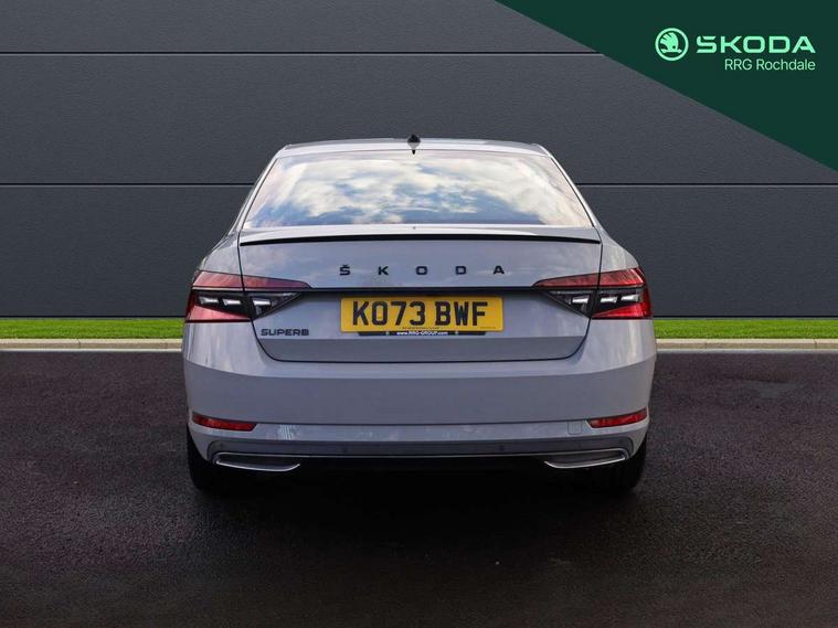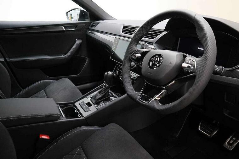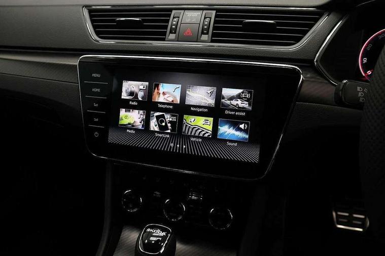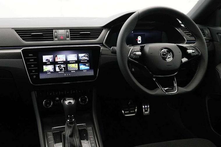 Bluetooth system, CareConnect and Emergency Call, Columbus HDD satellite 3D map navigation with 9.2" colour touch screen, web radio, integrated Wi-Fi, Driver fatigue sensor, Front assist with pedestrian protection, Progressive dynamic steering, Stop/start engine system and energy recovery, Virtual cockpit, Voice control system, Wireless smartlink apple carplay, SmartLink+ android auto, XDS+, 2 USB ports, Bolero radio with 8" touchscreen display, DAB Digital radio, 3rd brake light, Aero front windscreen wipers with intermittent function, Auto dimming rear view mirror, Black rear badge, Body colour door handles, Cornering front fog lights, Electrically adjustable heated and folding door mirrors with memory function, Front and rear electric windows, Full matrix LED headlights with AFS LED DRL integrated with headlight washer LED rear lights(High function), dynamic indicators and lighting animation, Gloss black exterior door mirrors with sports styling including front grill, side strip and window surrounds, Gloss black grille surround with gloss black rib elements, Gloss black rear spoiler, Gloss black strip between rear lights, Light assistant (coming/leaving home/tunnel light), Privacy glass, Rain sensor, Rear exhaust diffuser styling elements, Rear side wing doors, Sport Line badging, 12v power point in centre console, 3 seat bench in 2nd row, Black roof headlining, Black textile floor mats, Carbon optic interior elements, Electric auxiliary air heater, Front and rear footwell illumination, Front armrest with storage box, Height adjustable front and rear head restraints, Ice scraper, Illuminated and cooled glovebox, Interior lights with control switches, Isofix child seat fittings on outer rear seats, LED front and rear reading lights, Microsuede/leather upholstery with silver diamond stitching sports seats, One umbrella compartments in driver door with one umbrella in drivers door, Overhead glasses storage compartment, Rear centre armrest with cupholders, Removable parcel shelf, Single front passenger seat, Split folding rear seats, Storage compartment with cover in luggage compartment side panels, Ticket holder on A Pillar, LED package plus - Superb, 3 rear seatbelts, 7 airbags - Front, front side, curtain, driver's knee airbag with front passenger deactivation switch, Driver and passenger seatbelts with warning light, Electronic parking brake, ESC including ABS, EBV, MSR, ASR, EDS, HBA, DSR, RBS, CBC, multi-collision brake (MKB) and Auto hold, Hill start assist, Power operated child lock in rear doors, Tyre pressure monitor, Alarm with interior monitoring tilt sensor and back up horn, Electronic engine immobiliser, Keyless entry and start/stop, Remote central locking with SAFE system, Third remote key,