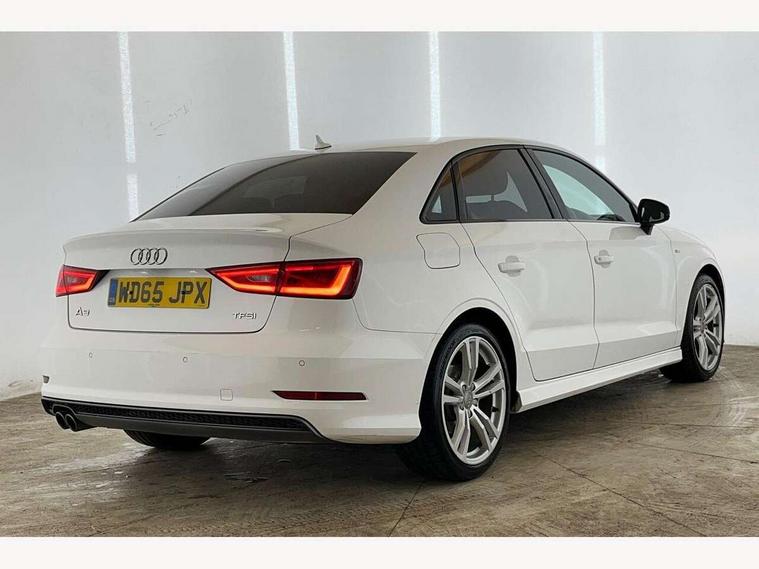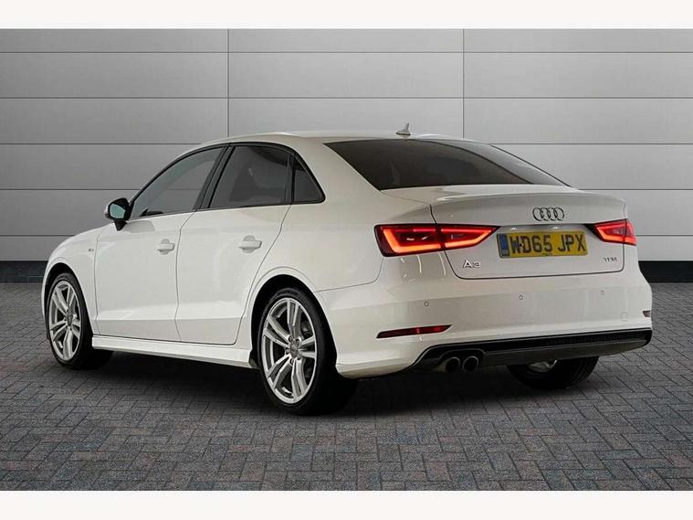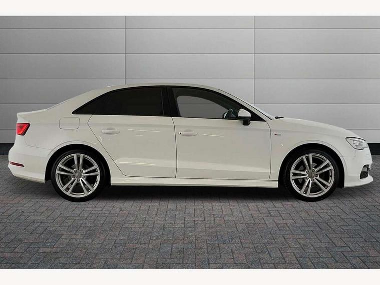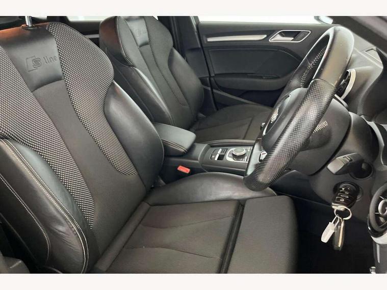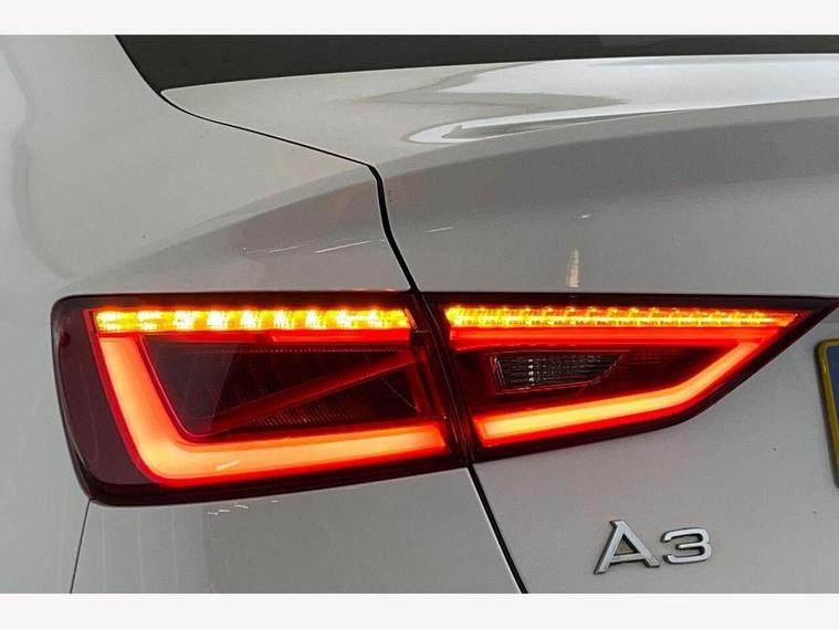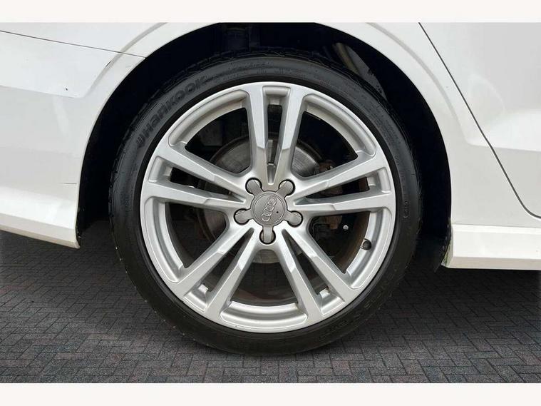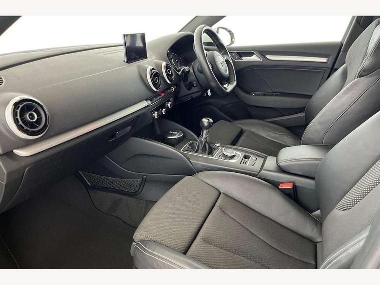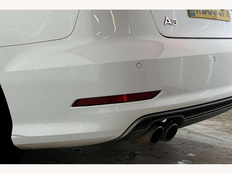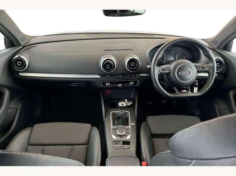 Audi drive select, Colour driver's information system display, Low washer fluid indicator, Service interval indicator, Voice control system, Audi music interface, DAB Digital radio, Aluminium side window trim, Body colour bumpers, Body colour door mirrors with integral indicators, Body colour roof spoiler, Chrome exhaust tailpipes, Front and rear electric windows, Front fog lights, Heated rear window, Heated windscreen washer jets, High gloss black fog light surround, High gloss black front grille, LED daytime running lights, S Line body styling, Twin exhaust tailpipe, 3 adjustable rear headrests, 3 spoke flat bottomed S Line multifunction steering wheel, 4 lashing points to secure luggage, 60/40 split folding rear seat, Adjustable front armrest, Aluminium door sill trims, Black cloth headlining, Coat hooks on both sides, Cup holders, Door sill trims with S line logo, Driver/passenger sunvisors, Dual zone electronic climate control, Front and rear interior lights with delay, Front/rear floor mats, Height adjustable front seats, Height/depth adjustable steering column, Illuminated glovebox, Illuminated luggage compartment, ISOFIX child seat preparation+airbag deactivation, Passenger underseat drawer, Perforated leather gearknob, Removable rear parcel shelf, Storage compartment in centre console, Storage compartments in doors, Storage and luggage pack - A3/RS3, 3 point seatbelts on all seats, ABS/EBD, Active bonnet, Active front headrests, ASR, Curtain airbags, Driver and passenger side airbags, Driver/Front Passenger airbags, Drivers knee airbag, EDL, Electromechanical parking brake, ESC - Electronic Stability Control + traction control, Front passenger airbag deactivation, Manual rear child locks, Seatbelt warning, Tyre pressure monitor, Warning triangle and first aid kit, Anti-theft wheel bolts, Remote control central locking, Thatcham category 1 alarm + immobiliser, Aluminium air vent surrounds, Aluminium trim elements, Matt brushed aluminium inlays, Space saver spare wheel,
