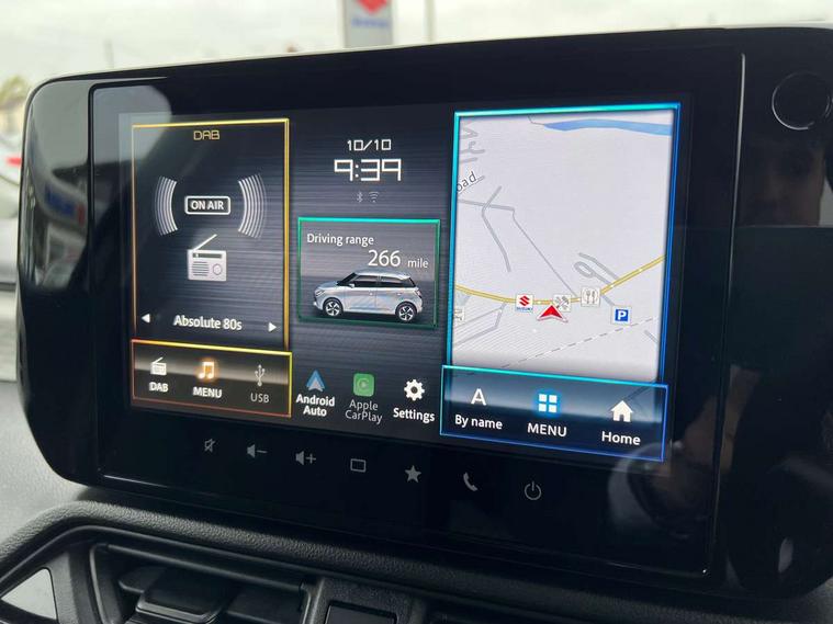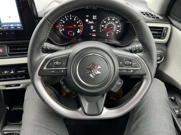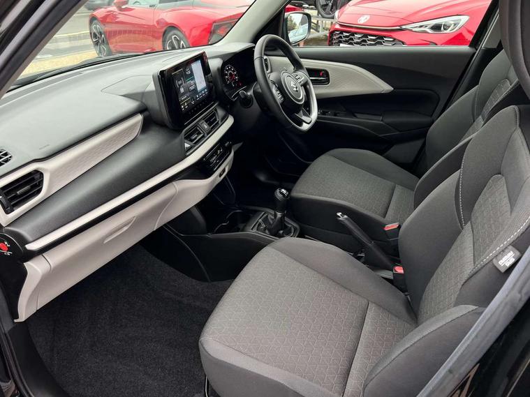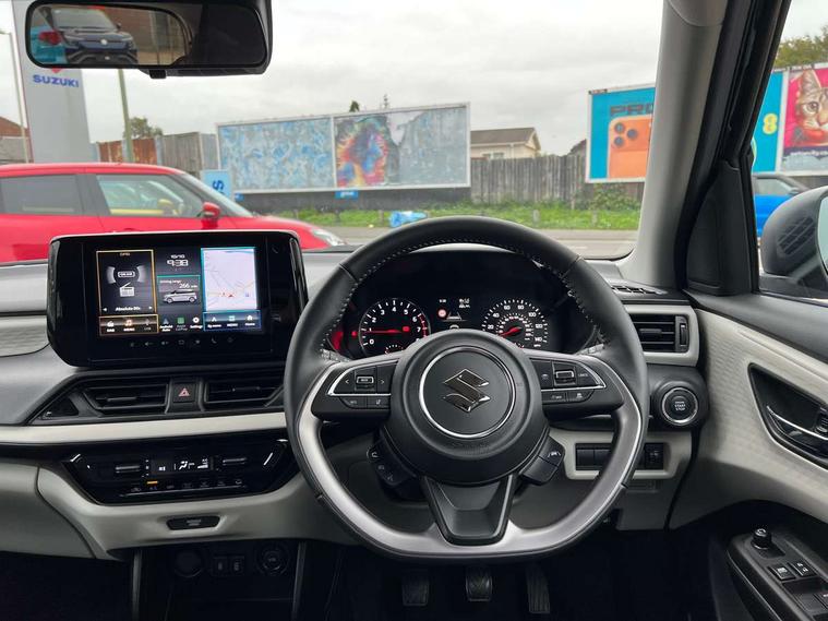 Adaptive cruise control, Automatic start/stop system, Blind spot monitoring, Colour LCD information display, Digital clock, Driver monitoring system, eCall, Fuel consumption display (average/instantaneous) and range display, Intelligent speed control support, Lane departure prevention, Lane departure warning system, Lane keeping assist (LKA), Low fuel level warning light, Navigation system, Outside temperature display, PAS, Rear cross traffic alert, Rear parking camera, Rear parking sensors, Remote fuel cap release, Smartphone integration with Apple CarPlay and Android auto, Suzuki connect, Tailgate, Traffic sign recognition, Weaving alert, 4 speakers + 2 tweeters, 9-inch infotainment display, Auxiliary input socket, Bluetooth audio streaming, DAB Digital radio, Steering wheel audio controls, USB Type A and C, 'Guide me home' headlamps, 1 speed with intermittent rear wiper + washer, 2 speeds front wiper with intermittent + washer, Automatic headlights, Black coloured A & B pillars, Black Upper and lower front grille, Body colour door mirrors and handles, C pillar trim moulding, Electric door mirrors, Electric front windows, Electric rear windows, Green tinted glass, Heated door mirrors, High beam assist, LED daytime running lights, LED High mounted stop light, LED position lamps, LED projector headlamps, LED rear combination lamp, Manual headlamp level control, Rain sensor, Rear fog lights, Rear privacy glass, Rear side wing doors, Rear spoiler, Side spoiler, 1 cup holder in rear, 12V Accessory socket in front console, 2 cup holders in front, 2 Isofix seat anchors, 3 bench rear seats in 2nd row, 3 rear head restraints, 3 spoke leather covered steering wheel, 60/40 split rear seats, Accessory socket, Centre console storage, Centre lower box, Child seat tether anchorages x 2, Chrome handbrake release button, Chrome interior door handles, Cloth upholstery, Door pockets with bottle holder, Driver/passenger sunvisors with ticket holders + vanity mirrors, Front cabin lights, Front headrests, Front map light, Front passenger side assist grip, Glovebox, Heated front seats, Heater, Height adjustable driver's seat, Luggage area lamp, Manual air conditioning with digital control panel, Material door trim ornament, Parcel shelf, Passenger seat back pocket, Pollen filter, Single front passenger seat, Tilt adjustable steering wheel, Tilt/telescopic adjustable steering wheel, 3 point ELR seatbelts for centre seat, 3 point ELR seatbelts front and rear, ABS+EBD+Brake assist, Curtain airbags, Driver airbag, Dual sensor brake support, ESP + traction control, Front and rear seatbelt reminder, Front passenger airbag, Front passenger airbag deactivation, Front seatbelt pretensioners with force limiters, Hill hold control, Rear child proof door locks, Rear seatbelts with pre-tensioners and load limiters, Side airbags with incorporated into front seats, Tyre pressure indicator, Deadlocks, Freewheeling key cylinders, Immobiliser, Keyless entry and start, Light - on and Key in reminder, Locking wheel nuts, Remote central locking, Painted instrument panel ornament, 16" Painted alloy wheels, Emergency flat tyre repair kit,