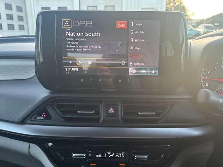 Adaptive cruise control with Stop and Go, Automatic start/stop system, Blind spot monitoring, Colour LCD information display, Digital clock, Driver monitoring system, eCall, Fuel consumption display (average/instantaneous) and range display, Intelligent speed control support, Lane departure prevention, Lane departure warning system, Lane keeping assist (LKA), Low fuel level warning light, Navigation system, Outside temperature display, PAS, Rear cross traffic alert, Rear parking camera, Rear parking sensors, Remote fuel cap release, Smartphone integration with Apple CarPlay and Android auto, Suzuki connect, Tailgate, Traffic sign recognition, Weaving alert, 4 speakers + 2 tweeters, 9-inch infotainment display, Auxiliary input socket, Bluetooth audio streaming, DAB Digital radio, Steering wheel audio controls, USB Type A and C, 'Guide me home' headlamps, 1 speed with intermittent rear wiper + washer, 2 speeds front wiper with intermittent + washer, Automatic headlights, Black coloured A & B pillars, Black Upper and lower front grille, Body colour door mirrors and handles, C pillar trim moulding, Door mirrors with built-in turn signal lamp, Electric door mirrors, Electric folding door mirrors, Electric front windows, Electric rear windows, Green tinted glass, Heated door mirrors, High beam assist, LED daytime running lights, LED High mounted stop light, LED number plate light, LED position lamps, LED projector headlamps, LED rear combination lamp, Manual headlamp level control, Rain sensor, Rear fog lights, Rear privacy glass, Rear side wing doors, Rear spoiler, Side spoiler, 1 cup holder in rear, 12V Accessory socket in front console, 2 cup holders in front, 2 Isofix seat anchors, 3 bench rear seats in 2nd row, 3 rear head restraints, 3 spoke leather covered steering wheel, 60/40 split rear seats, Accessory socket, Automatic air conditioning, Centre console storage, Centre lower box, Child seat tether anchorages x 2, Chrome handbrake release button, Chrome interior door handles, Cloth upholstery, Door pockets with bottle holder, Driver/passenger sunvisors with ticket holders + vanity mirrors, Front cabin lights, Front headrests, Front map light, Front passenger side assist grip, Gearshift paddles, Glovebox, Heated front seats, Heater, Height adjustable driver's seat, Luggage area lamp, Painted interior door trim ornament, Parcel shelf, Passenger seat back pocket, Pollen filter, Rear assist grips x2, Rear heater duct, Single front passenger seat, Tilt adjustable steering wheel, Tilt/telescopic adjustable steering wheel, 3 point ELR seatbelts for centre seat, 3 point ELR seatbelts front and rear, ABS+EBD+Brake assist, Curtain airbags, Driver airbag, Dual sensor brake support, ESP + traction control, Front and rear seatbelt reminder, Front passenger airbag, Front passenger airbag deactivation, Front seat seatbelts shoulder height adjuster, Front seatbelt pretensioners with force limiters, Hill hold control, Rear child proof door locks, Rear seatbelts with pre-tensioners and load limiters, Side airbags with incorporated into front seats, Tyre pressure indicator, Deadlocks, Freewheeling key cylinders, Immobiliser, Keyless entry and start, Light - on and Key in reminder, Locking wheel nuts, Remote central locking, Painted instrument panel ornament, 16" Polished alloy wheels, Emergency flat tyre repair kit,