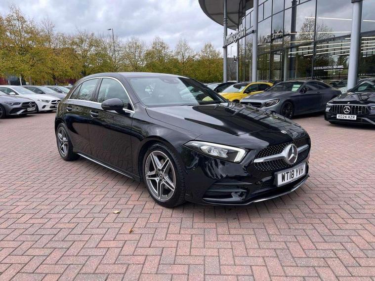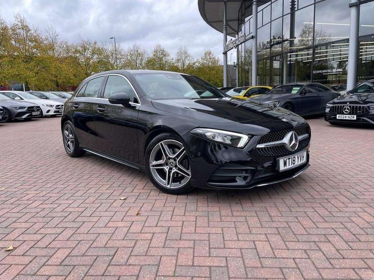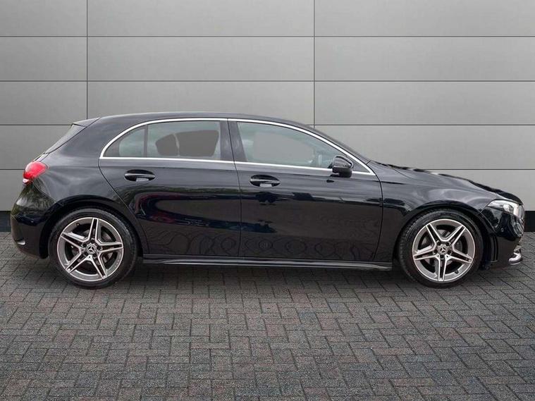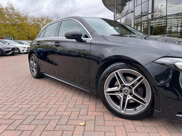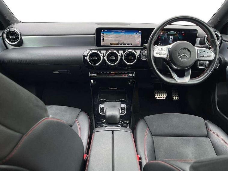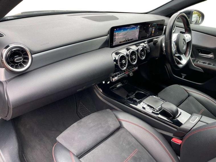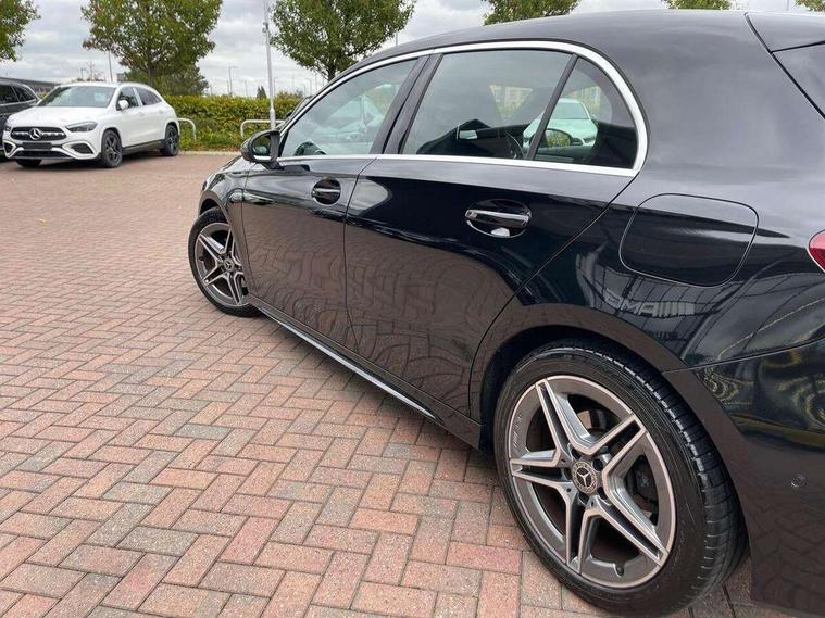 10.25" display screen, Active lane keep assist, Active park assist with parktronic system, Attention assist, Bulb failure indicator, Collision prevention assist plus, Cruise control + speed limiter, DYNAMIC SELECT with a choice of driving modes (ECO, Comfort, Sport, Sport+ and Individual), External temperature gauge, Low fluid warning light, Mercedes connect me with remote online services, Reversing camera, Service indicator (ASSYST PLUS), Speed sensitive power steering, Trip computer, Voice control system, Lowered sports suspension, 2 USB ports in centre console, DAB Digital radio, Multimedia System, SD card slot, Adaptive brake lights, AMG body styling, Auto dimming driver's door mirror, Auto dimming rear view mirror, Body colour bumpers, Body colour door handles, Body colour side skirt, Body coloured door mirrors, Chrome beltline trim, Diamond radiator grille with chrome pins and silver louvre + chrome insert, Electric adjustable heated door mirrors, Electric folding door mirrors, Electric front windows, Electric rear windows, Headlamp assist, Heated rear window with timer, LED daytime running lights, LED Headlights, LED rear lights, Rain sensor windscreen wipers, Rear wiper, Twin Trapezoidal tailpipes, 1/3 to 2/3 split folding rear seats, 12V socket, 3 spoke flat bottomed nappa leather sport steering wheel, AMG floor mats with red stitching, Artico man-made leather/Dinamica upholstery, Auto Mercedes-Benz child seat recognition sensor, Black headlining, Brushed stainless steel sports pedals with rubber studs, Dual zone automatic climate control, Footwell lights, Front and rear reading lights, Front centre armrest with storage compartment, Front door sills with Mercedes Benz lettering, Front head restraints, Front seat backs luggage nets, Front sport seats, Gearshift paddles on steering wheel, Heated front seats, Height adjustable front seats, Height/reach adjustable steering column, Illuminated cup holders, Illuminated glovebox, Illuminated storage compartment, Integrated head restraints, Isofix rear child seat preparation, Load securing rings in luggage compartment, Luggage compartment cover, Multifunction steering wheel, Oddments tray lighting, Rear head restraints, Storage compartment under load area floor, Sunvisors with illuminated vanity mirrors, Twin front cupholders, Seat comfort pack - A Class, 3 rear 3 point seatbelts, ABS with Brake Assist, Active bonnet, Adaptive brake system, Brake calipers with Mercedes-Benz lettering + perforated brake discs, Child proof door locks, Crash responsive emergency lighting, Drivers knee airbag, Dual stage driver/passenger airbags, Electronic parking brake, ESP with ASR, Front and rear seatbelt reminder, Front head airbags, Front passenger seat occupancy sensor, Front side airbags, Hill start assist, Tyre pressure monitoring system, Warning triangle and first aid kit, Window airbags, Alarm system/interior protection/immobiliser, Keyless ignition, Remote central locking, Chrome air vent surrounds, 18" AMG 5 twin spoke light alloy wheels in titanium grey with highsheen finish, Tirefit sealant with electric air pump,