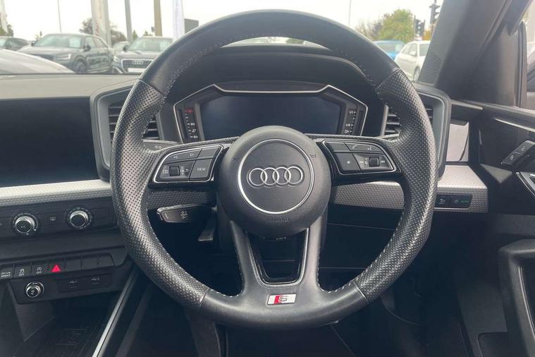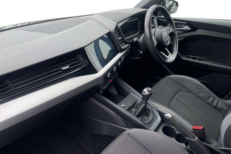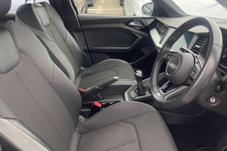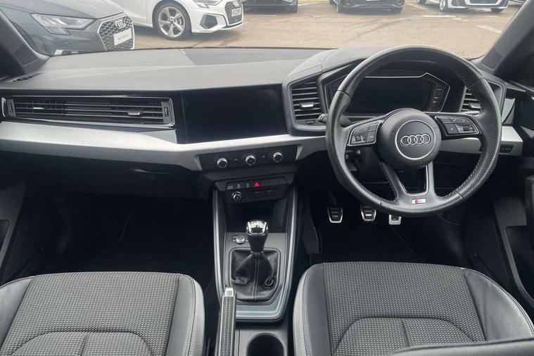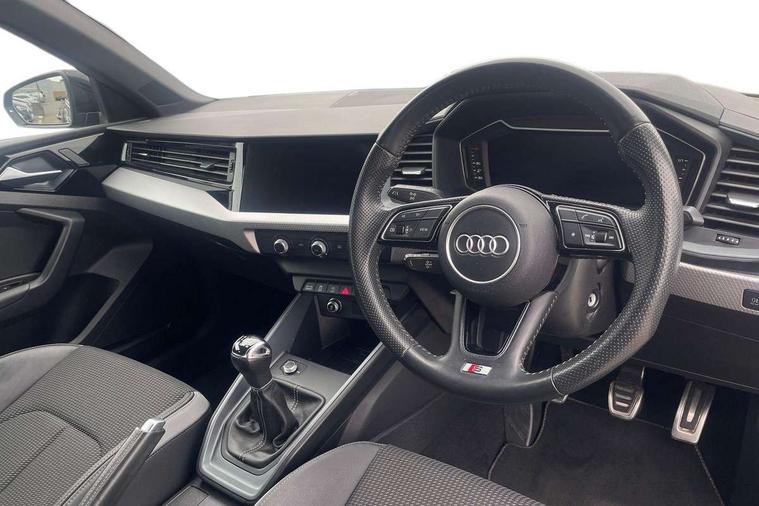 10.25" Digital instrument cluster display classis style instrument dials + speed, odometer, time, outside temperature, telephone menu + fuel level warning, Audi connect safety emergency and service including E-call, Audi drive select - power steering assistance + engine, Audi smartphone interface with connect compatible smartphone via USB directly MMI display + Nav, music, third party apps controlled via MMI controller, Automatic start/stop system, Bluetooth interface, Cruise control, Driver's information system, Electromechanical power steering, Lane departure warning system, Rear parking sensor, Service interval indicator, Speed limiter, Voice control system, Washer fluid level indicator, Sports suspension, 1 x SDXC card reader, 1 x USB type C and 1 USB type A charging points, DAB Digital radio, MMI radio plus with 8.8" colour MMI display screen and MMI touch, Auto dimming rear view mirror, Body coloured door mirrors, Door sills with aluminium inlays and S Line logo, Electric front and rear windows, Electrically adjustable, heated, folding door mirrors with integrated LED side indicator, Front side air inlets in grained matt black and C frame in titanium black, Heat insulating glass windscreen and side windows, Heated rear windscreen, LED headlights with LED rear lights + dynamic rear indicators + headlight adjustment and high beam, turning light + LED daytime running lights, Radiator grille and rear diffuser in matt titanium black, Radiator protective grille frame in matt aluminium silver, Rain and light sensors, Rear fog lights, Rear wiper, S line badges on front wings, Side front spoiler lips in grained matt black, 12V socket in centre console with two cup holders, 3 rear seats with headrests, 40:60 Split folding rear seat or folded fully, Black cloth headlining, Driver and passenger seat with manual height adjust with forward and backwards adjustment, Front and rear black floor mats with contrast stitching in fine silver, Front head restraints, Height and reach adjustable steering wheel, ISOFIX child seat mounting for front passenger and outer rear seats including top tether attachment point of outer rear seats, Leather gear knob with aluminium trim, Luggage compartment light with front and rear reading lights, Manually adjustable lumbar support in front seats, Stainless steel pedals, LED interior lighting pack - A1, Luggage compartment pack - A1, S line exterior styling pack - A1 Sportback, 3x3 point rear seatbelts, Audi pre-sense front with pedestrain and cyclist recognition, Brake assist function, Driver and front passenger airbag with front side and head airbags, Electronic Stability Control including ABS, EBD, ASR and EDL, Front and rear seatbelt reminder, Front passenger airbag deactivation switch, Hill hold assist, Seatbelt height adjustment for front seats, Seatbelt monitoring, Tyre pressure warning light, Warning triangle and first aid kit, Anti theft alarm, Anti theft wheel bolts and loose wheel warning, Immobiliser, Remote central locking with 2 foldaway keys, Aluminium trim for control switches, air vents and digital instrument cluster, Silver grey inlays polygon structure in diamond paint finish, Structured grey accent areas including air vents, door handle recesses and centre console in quartz paint finish,