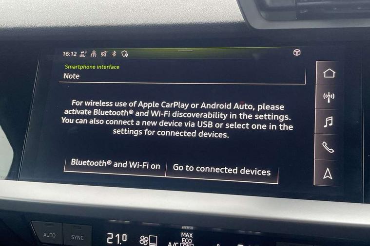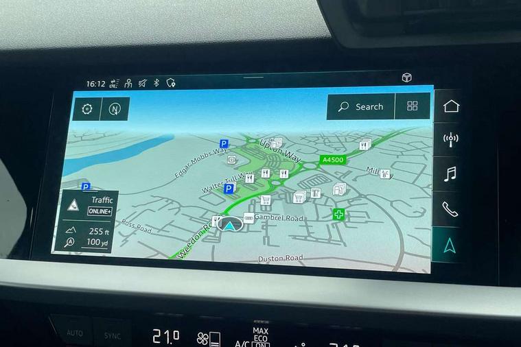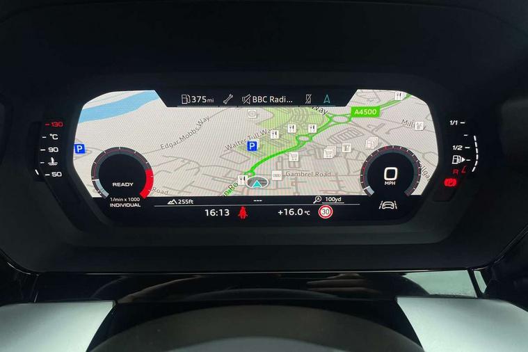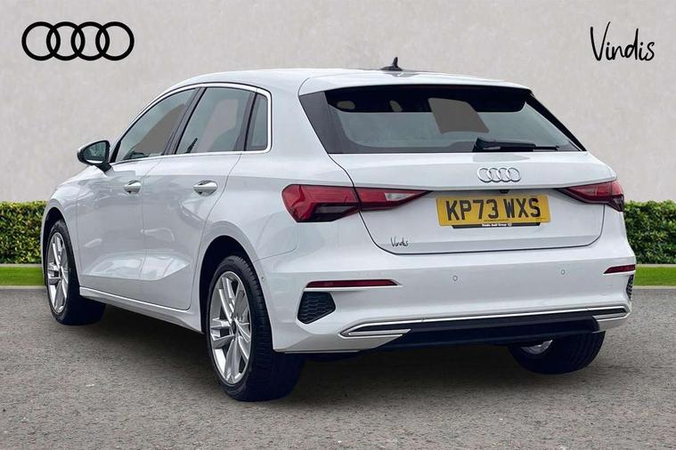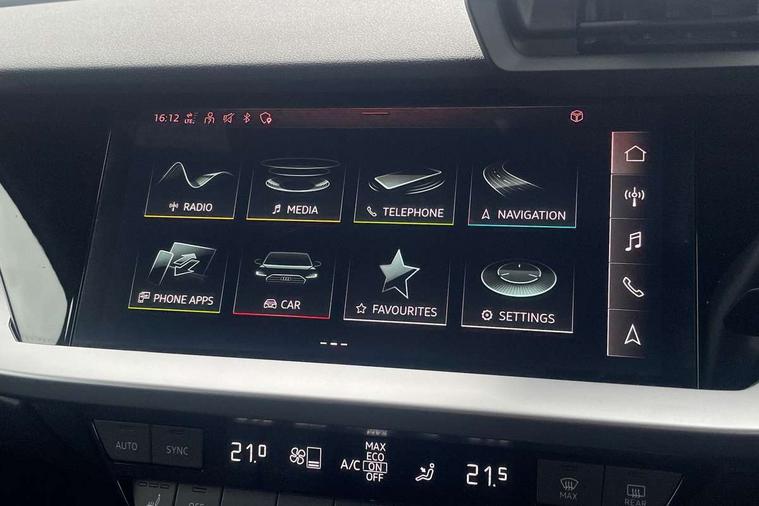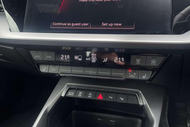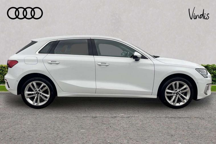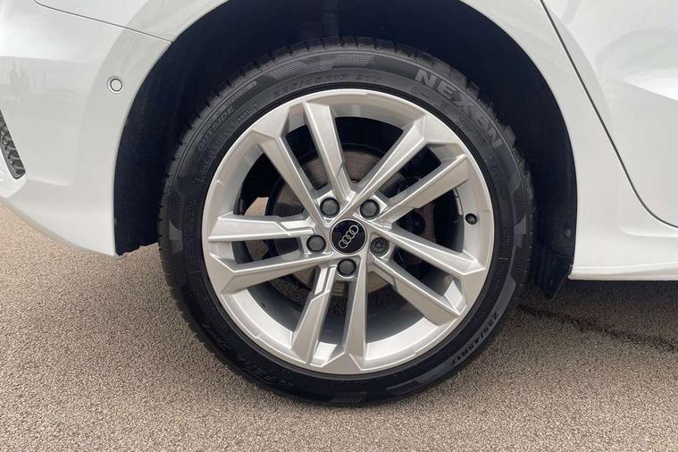 Audi drive select (Auto, Comfort, Dynamic, Efficiency and Individual), Audi smartphone interface, Audi Virtual Cockpit - 10.25" digital and colour instrument cluster, Automatic start/stop system with recuperation, Bluetooth interface, Camera based traffic sign recognition, Collision avoidance assistant, Cruise control, e-Call (emergency call), Electromechanical power speed sensitive steering, Lane departure warning system, MMI Navigation Plus with high resolution 10.1" colour touch screen display, Rear parking sensors, Service indicator, Trip computer, Voice control system with natural language interaction, Standard suspension, 2xUSB-C connection with data and charging functions, 6 passive loudspeakers, DAB Digital radio, 3rd brake light, Acoustic glass windscreen, Aluminium window trim, Auto dimming frameless rear view mirror, Body colour exterior mirrors, Body colour roof spoiler, Electrically adjustable/heated/folding/auto dimming door mirrors with integrated LED indications + kerb view function for passenger side, Front electric windows, LED daytime running lights, LED headlights and halogen rear lights, Light and rain sensors, Rear electric windows, Rear side wing doors, Rear window, rear door windows and rear side windows in clear glass, Rear wiper, 12V socket and storage compartment in front centre console, 3 seat bench in 2nd row, 3 spoke leather multifunction steering wheel, 4 way electrically adjustable lumbar support for driver and front passenger, 60/40 split folding rear seat bench, Dual zone electronic climate control, Front and rear headrests, Front centre armrest, Front door sill trims with aluminium inlay, Front/rear floor mats, Height and reach adjustable steering wheel, Interior lighting - Front and rear roof module including reading lights, glove compartment light and right hand side, Interior lighting - glove compartment light and right hand side, Luggage compartment floor covering, Manual boot compartment lid, Manually adjustable front seats, Routine cloth upholstery with front sports seats, Seat side bolsters, Single front passenger seat, Steel grey cloth headlining, Aluminium interior elements pack - A3 Sportback, LED interior lighting pack - A3 Sportback, Sport styling pack - A3 Sportback, 3x3 point rear seat belts, Driver and front passenger airbag with passenger airbag deactivation, Electronic Stabilisation Control (ESC) including ABS, ASR and EDL, First aid kit with warning triangle and 2 safety vests, Front side airbags with head airbags and interaction airbag, Pre-sense front with pedestrian and cyclist detection, Seatbelt monitoring, Tyre pressure loss indicator, Anti theft alarm, Anti-theft wheel bolts, Electronically operated child locks, Immobiliser, Remote control central locking, Inlays with silk effect paint in platinum grey,