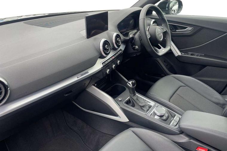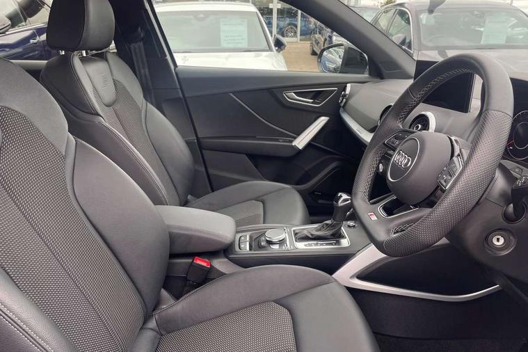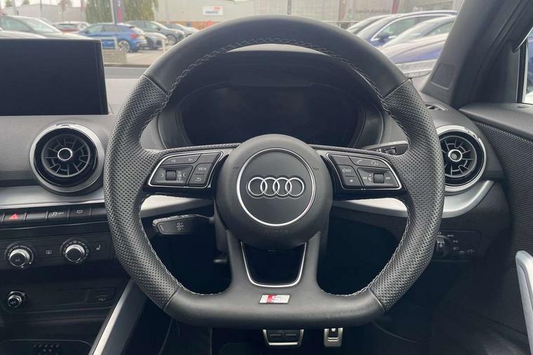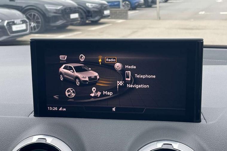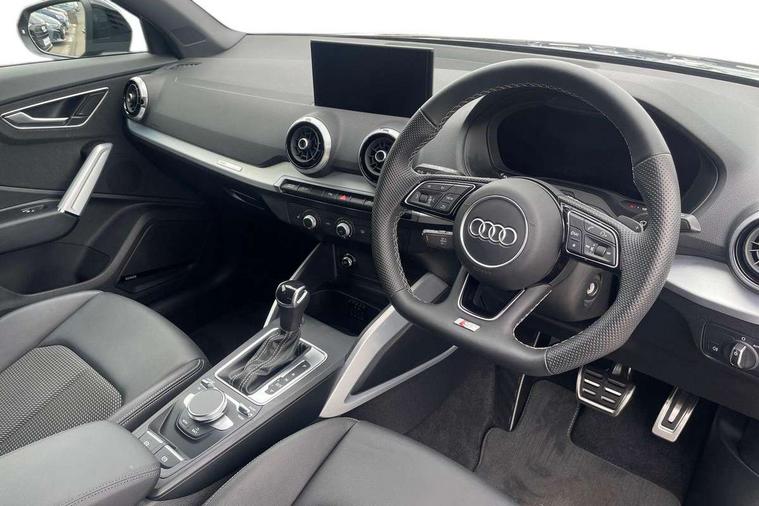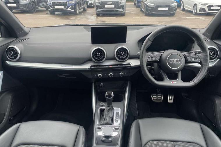 Audi connect navigation and infotainment includes innovative services, Audi connect remote and control connects your vehicle to your smartphone, Audi drive select: S tronic - power steering assistance + engine + gearshift (modes: comfort, auto, dynamic, efficiency, individual), Audi smartphone interface - Apple carplay/Android Auto, USB connect, 2xSDXC card readers, voice control for navi, telephone, music and 3rd party apps, Audi virtual cockpit, Automatic start/stop system with recuperation, Bluetooth interface includes bluetooth audio streaming, Cruise control, E-call, MMI navigation plus with MMI touch, Power operated tailgate, Progressive steering, Rear parking sensors, Sport suspension, 6 passive loudspeakers, DAB Digital radio, Audi beam, Auto dimming rear view mirror, Black window trims, Bumper in full body colour paint finish, Electrically adjustable, folding, auto dimming and heated door mirrors with integrated LED side indicators, Front windscreen with grey tinted sunband, LED daytime running lights, LED headlights with dipped beam, high beam, position lights, indicators, LED rear lights, LED third brake light, Privacy glass - dark tinted rear and rear side windows from B-pillar backwards, Rear side wing doors, Rear wiper, Variable front intermittent wipers, Wheel arch trims in manhattan grey, 12v socket in front, 3 seat bench in 2nd row, 3 spoke flat bottomed multi-function leather sport steering wheel with gear shift paddles, 4-way electric lumbar support for front seats including manual seat height adjustment for both front seats, 60/40 split folding rear seat bench, Black cloth headlining, Front and rear head restraints, Front centre armrest, Front sport seats, Front/rear floor mats, Height/reach adjust steering wheel, Illuminated door sill trims with S logo, ISOFIX child seat mounting in front passenger and rear outer seats, Manual air conditioning, Single front passenger seat, Stainless steel pedals, Black styling pack - Q2, 3x3 point rear seatbelts, 6 airbags - Front, curtain and front side airbags, Electromechanical parking brake, Electronic stabilisation control including ABS, ASR and EDL, Front passenger airbag deactivation, Hill hold assist, Pre-sense front with pedestrian recognition, Seatbelt monitoring, Tyre pressure warning light with visual and acoustic warning, Warning triangle and first aid kit, Anti theft alarm, Anti theft wheel bolts, Electronically operated child locks, Remote central door locking, Aluminium interior element, Matt brushed aluminium trim inlays, Tool kit,