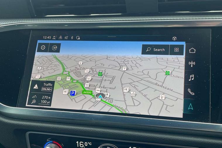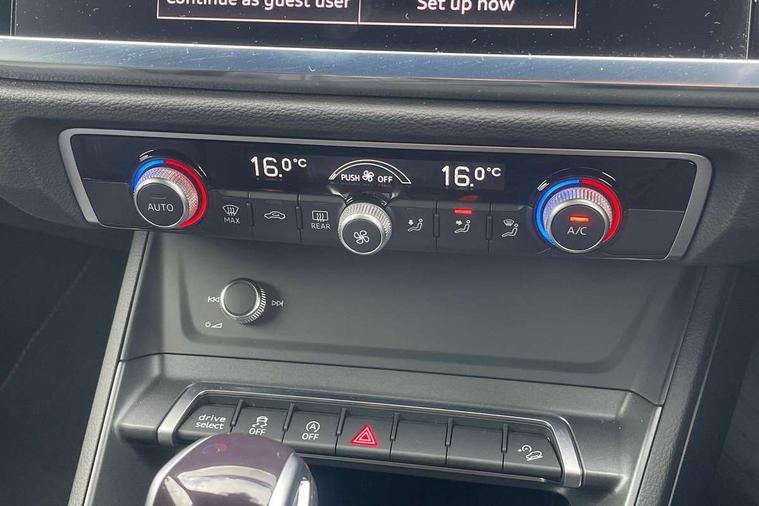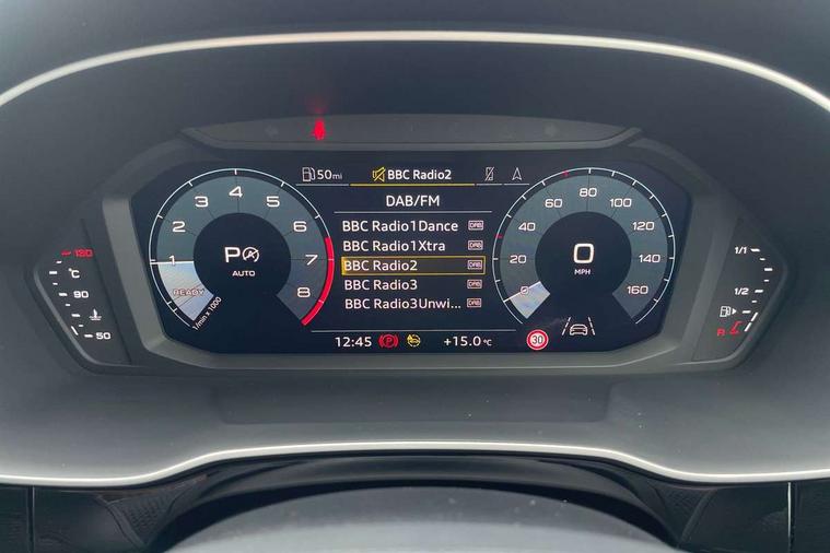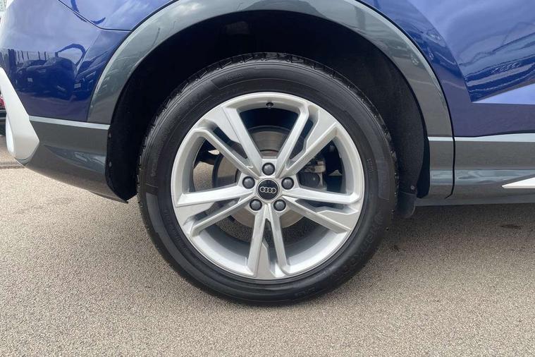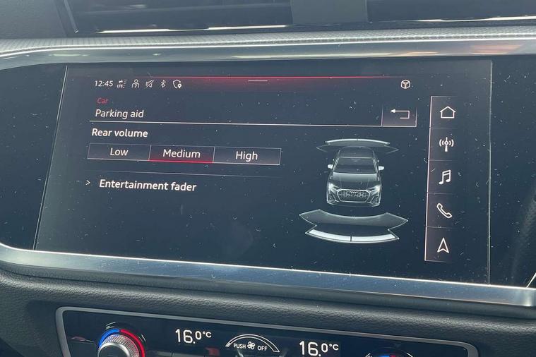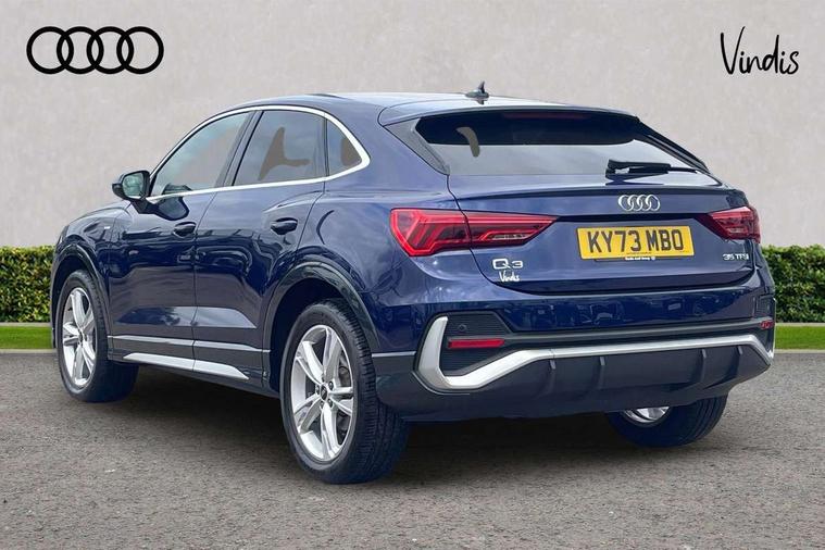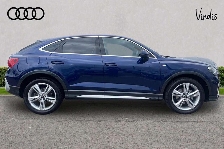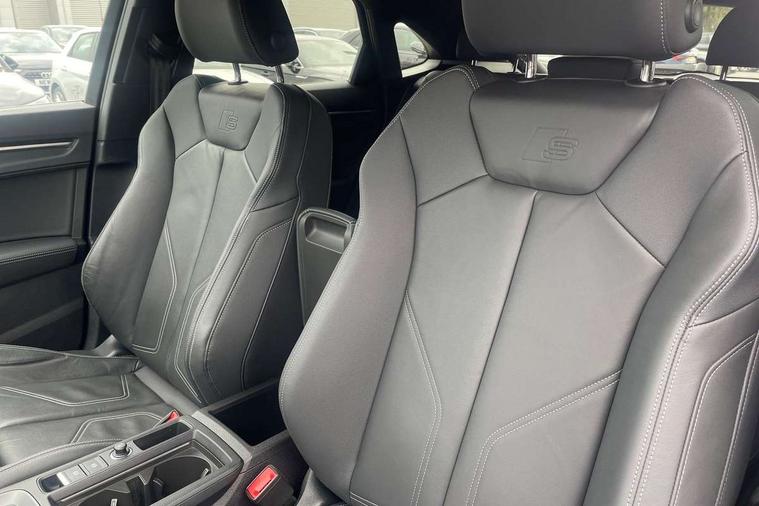 Audi drive select, Audi lane departure warning, Audi Virtual Cockpit - 10.25" display, Bluetooth interface, Camera based traffic sign recognition, Legal emergency call, MMI Navigation Plus with high resolution 10.1 inch touchscreen colour display, Power operated tailgate, Progressive steering, Service interval indicator, Smartphone interface includes wireless Apple carplay/Android Auto, Start stop system with recuperation, Voice control system with natural language interaction, Sports suspension, 2 USB-C ports with charge and data functions, 6 passive loudspeakers, DAB digital radio module, Acoustic windscreen, Aluminium window trim, Auto dimming frameless rear view mirror, Diffuser grille in grained matt black, Diffuser trim in selenite silver, Electrically folding, adjustable and heated door mirrors with integrated LED side indicators and kerb view function for passenger side, Front and rear electric windows, Front fog lights, Front side air inlets in selenite silver, Front underbody protection in manhattan grey paint finish, Grille surround in aluminium silver matt, High gloss black finish B and C pillars, LED Dynamic rear indicators, LED headlights with LED daytime running lights, LED rear lights, LED third brake light, Privacy glass dark tinted rear and rear-side windows (from B-pillar backwards), Radiator grille in anthracite black with inlay in matt aluminium silver, Rain and light sensors, Rear side wing doors, Rear underbody protection in matt black, Rear wiper, S line badges on front wings, S line front and rear bumpers and side skirts in contrasting Manhattan grey paint finish, Side skirt insert in matt Platinium grey, Variable front intermittent wipers, 12V socket in rear centre console, 3 seat bench in 2nd row, 3 spoke leather multifunction steering wheel features S badging and grips in perforated leather with contrast stitching, 40:20:40 folding with manual adjustment for 60:40 forwards/backwards position and backrest angle, Adjustable rear seat bench/backrest with centre armrest and cupholder, Black cloth headlining, Dual zone electronic climate control, Front and rear black floor mats with contrast stitching, Front and rear headrests, Front and rear roof module including reading lights, Front centre armrest, Glove compartment lighting, Height and reach adjustable steering wheel, Illuminated door sill trims with S logo, ISOFIX child seat mounting for front passenger with airbag deactivation and outer rear seat including top tether attachment point for outer rear seats, Luggage compartment light right in white, Luggage compartment sill protection in stainless steel, Manual front seats with height adjustment, Perforated leather gearknob, Single front passenger seat, Stainless steel pedals, Ambient lighting pack - Q3, Non smoking pack - Q3, 3x3 point rear seatbelts, 6 airbags - Driver, front passenger, curtain and side windows, Audi pre-sense front with pedestrain and cyclist recognition, Electrically operated child locks on rear doors, Electromechanical parking brake, Electronic stabilisation control including ABS, ASR and EDL, Front seatbelt reminder, Hill descent control, Hill hold assist, Pre sense basic, Seatbelt monitoring, Tyre pressure warning, Warning triangle and first aid kit, Anti theft alarm, Anti theft wheel bolts, Immobiliser, Remote central locking, Aluminium look interior elements, Black dashboard, Dark matt brushed aluminium inlay, Detail dashboard around MMI touch colour display in glass look, black with surround in aluminium look, Leatherette door armrest,