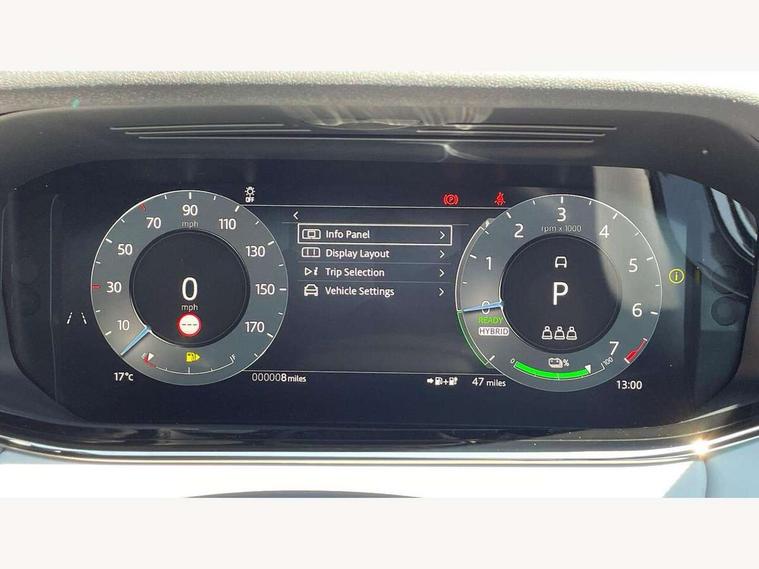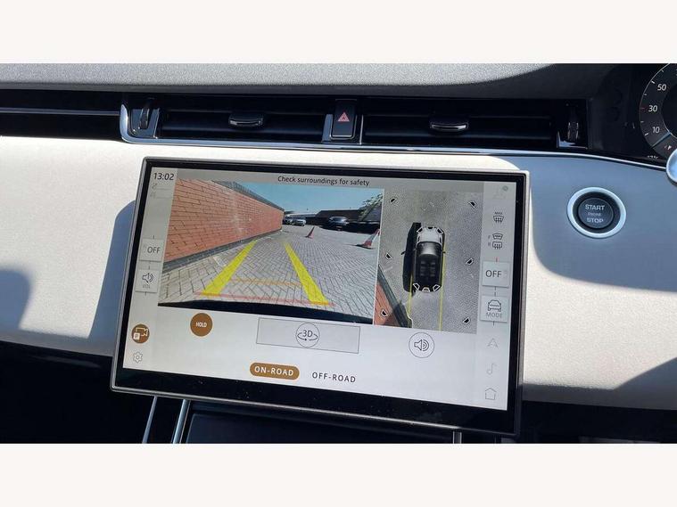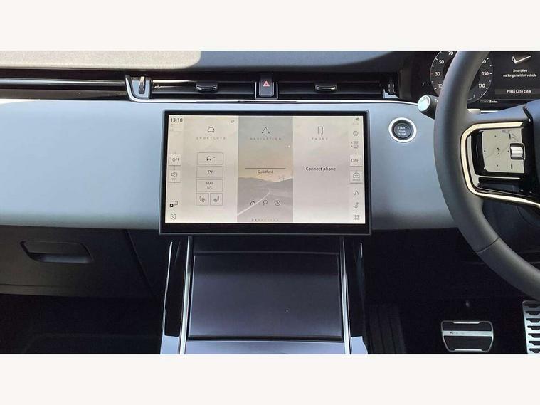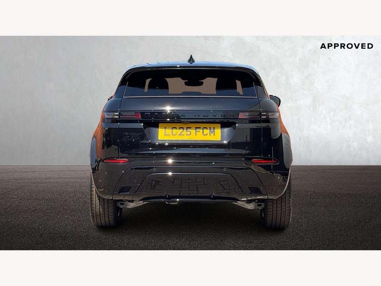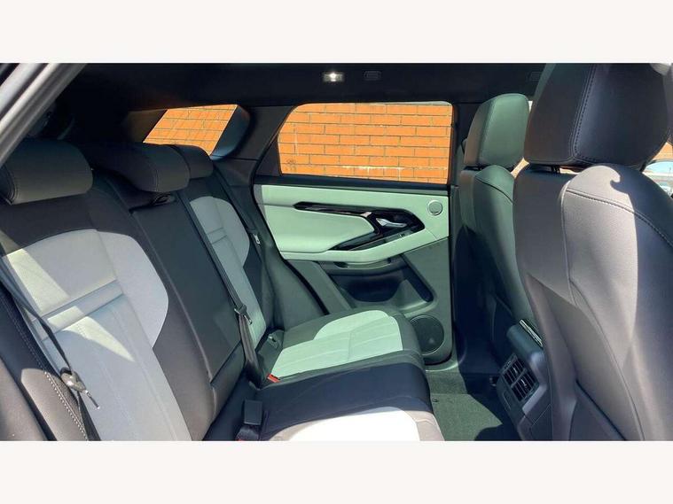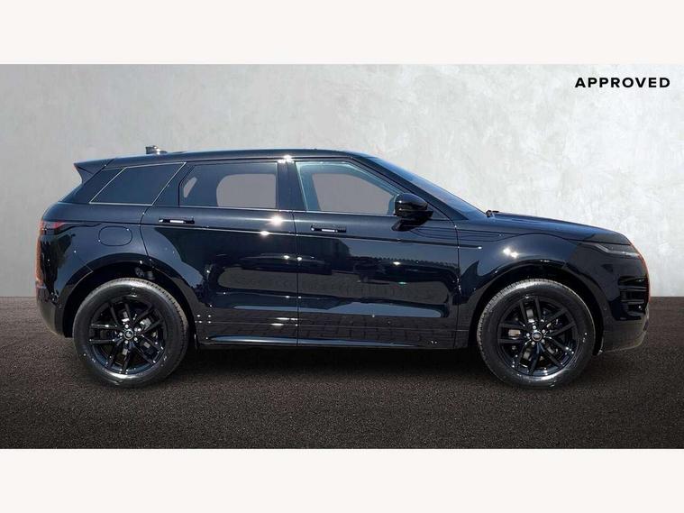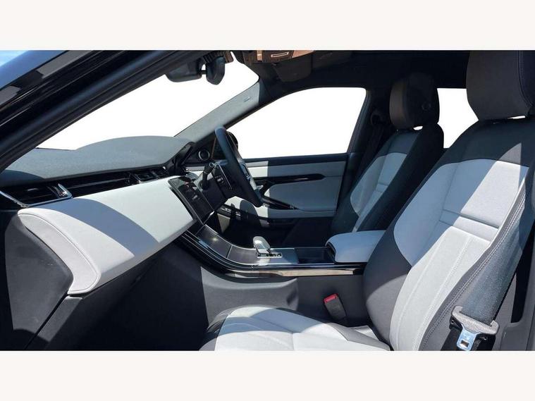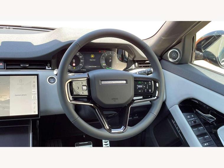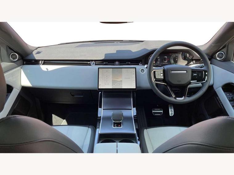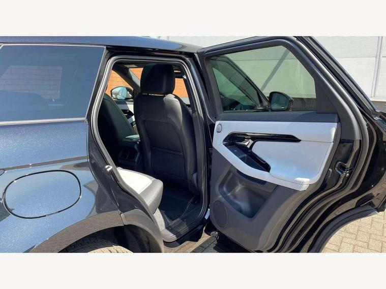 11.4" touch screen, 3D 360 degree surround camera with wade sensing, Adaptive cruise control, Android Auto, Apple car play, Blind spot assist, Bluetooth connectivity, Brake pad wear indicator warning light, Driver condition monitor, eCall emergency system, Eco mode, Electronic power assisted steering (EPAS), Front and rear parking aid, InControl remote, Interactive driver display, Land Rover InControl apps, Lane keep assist, Pivi pro connected includes diamond pivi variant, smart settings, connected navigation pro, nuance speech licence, Powered tailgate/boot lid, Rear collision monitor, Rear traffic monitor, Tailgate, Traffic sign recognition with adaptive speed limiter, Voice control system, Wireless device charging, All terrain progress control, Electric rear axle drive, Home charging cable, Large fuel tank, Passive suspension, Public charging cable, Terrain Response 2, Digital Audio Broadcast radio-DAB, Meridian sound system with 400W subwoofer and 11 speakers, Steering wheel mounted controls, Acoustic laminated windscreen, Auto dimming interior rear view mirror, Auto headlights, Auto high beam assist, Automatic headlight levelling, Black contrast roof, Electric windows with one touch open/close and anti trap, Fixed panoramic sunroof with powered sunblind, Flush deployable exterior door handles, Front and rear recovery eyes, Heated rear window with timer, Heated washer jets, Heated windscreen, LED headlights with signature DRL and LED tail Lights, Metallic paint, Power fold, auto-dimming, heated door mirrors with approach lights and auto dimming driver side, Privacy glass, Rain sensing windscreen wipers, Rear animated directional indicators, Rear fog lights, Rear side wing doors, Rear wiper, Tailgate spoiler, Third brake light, Winter wiper park position, 12 way driver memory and 10 way passenger electric front seats with 2 way manual headrest + 4 way lumbar support, 40:20:40 split folding rear seats with centre headrest and armrest, Bright metal pedals, Cabin lighting, Carpet mats, Chrome tread plates with range rover branding Includes stainless steel loadspace scuff plate with etched graphic, Customer configurable single point entry, Front and rear cupholders, Grained Leather upholstery, Heated front seats, Heated steering wheel, Isofix system on outer rear seats, Manually adjustable steering column, Overhead lighting console, Overhead stowage for sunglasses, Passive front head restraints, Rear air vents, Rear head restraints, Satin chrome gearshift paddles, Single passenger seat, Standard steering wheel with Moonlight Bezel, Sunvisors with illuminated vanity mirrors, Twin sliding front centre armrest, Two zone climate control, Black exterior styling pack - Evoque, Power socket pack 2 - Evoque, 3 rear 3 point seatbelts, Anti-lock braking system (ABS), Black brake calipers, Brake hold function, Customer configurable autolock, DSC - Dynamic Stability Control, Electronic brake force distribution, Electronic parking brake, Electronic traction control, Emergency braking, Front and rear seatbelt reminder, Hill descent control, Hill launch assist, Low traction launch, Occupant protection assist, Passenger seat occupant detector, Power operated child locks, Roll stability control, Six airbags - Driver and passenger airbags/driver knee airbag/front side airbag and curtain airbags, Torque vectoring brake, Tyre pressure monitoring system, Alarm, Immobiliser, Intrusion sensor, Keyless entry, Locking wheel nuts, Secure tracker pro, Black brushed aluminium finisher, 19" gloss black alloy wheels - Style 5136, All season tyres, Tyre repair system,