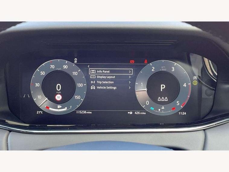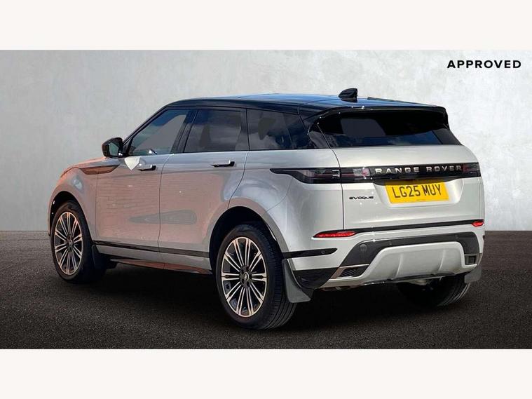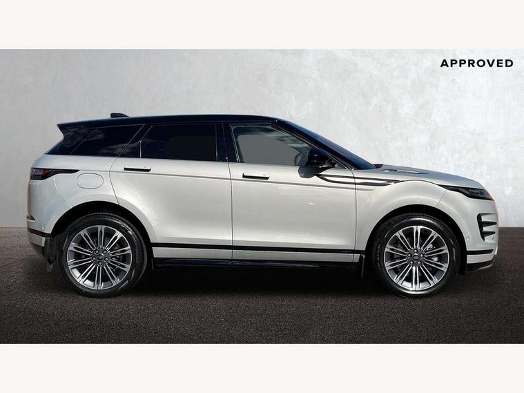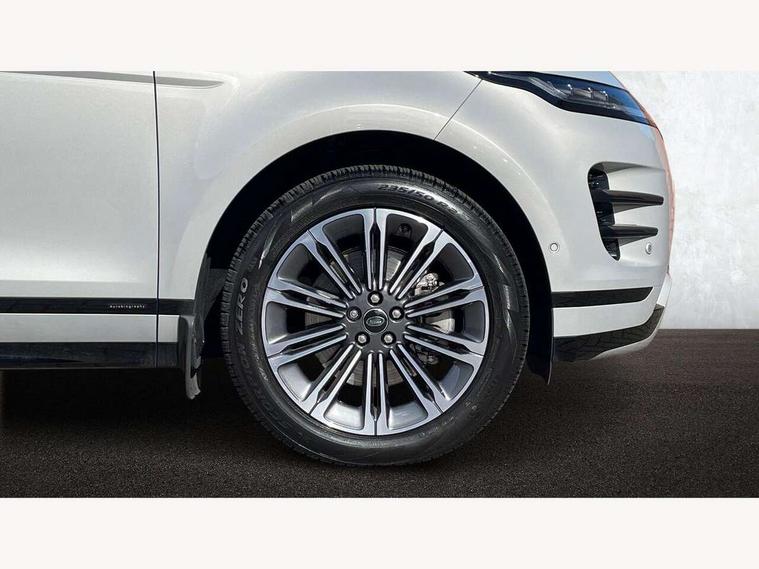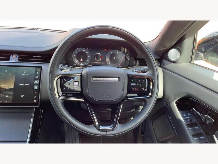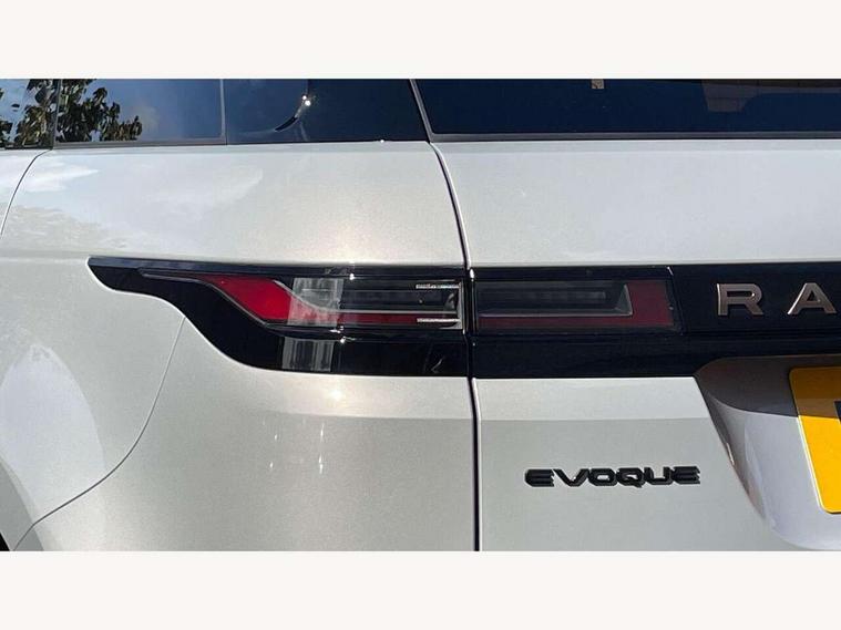11.4" touch screen, 3D 360 degree surround camera with wade sensing, Adaptive cruise control, Android Auto, Apple car play, Blind spot assist, Bluetooth connectivity, Brake pad wear indicator warning light, Driver condition monitor, eCall emergency system, Eco mode, Electronic power assisted steering (EPAS), Front and rear parking aid, InControl remote, Interactive driver display, Land Rover InControl apps, Lane keep assist, Pivi pro connected includes diamond pivi variant, smart settings, connected navigation pro, nuance speech licence, Powered tailgate/boot lid, Rear collision monitor, Rear traffic monitor, Tailgate, Traffic sign recognition with adaptive speed limiter, Voice control system, Wireless device charging, All terrain progress control, Diesel exhaust fluid (DEF) large tank, Efficient Driveline, Large fuel tank, Terrain Response 2, Digital Audio Broadcast radio-DAB, Meridian surround sound system with 650W subwoofer and 14 speakers, Steering wheel mounted controls, Acoustic laminated windscreen, Auto headlights, Automatic headlight levelling, ClearSight interior rear view mirror, Electric windows with one touch open/close and anti trap, Flush deployable exterior door handles, Front and rear recovery eyes, Heated rear window with timer, Heated washer jets, Heated windscreen, Pixel LED headlights with signature DRL and LED tail Lights, Power fold, auto-dimming, heated door mirrors with approach lights and auto dimming driver side, Rain sensing windscreen wipers, Rear animated directional indicators, Rear fog lights, Rear side wing doors, Rear wiper, Side repeater indicators in mirror, Sliding panoramic roof with powered sunblind, Tailgate spoiler, Third brake light, Winter wiper park position, 14 way driver memory electric front seats with 2 way manual headrests + 4 way lumbar support, bolsters, 40:20:40 split folding rear seats with centre headrest and armrest, Ambient interior lighting, Bright metal pedals, Carpet mats, Customer configurable single point entry, Electrically adjustable steering column with memory function and easy entry/exit, Front and rear cupholders, Heated steering wheel, Isofix system on outer rear seats, Overhead lighting console, Overhead stowage for sunglasses, Passive front head restraints, Rear air vents, Rear head restraints, Satin chrome gearshift paddles, Single passenger seat, Sunvisors with illuminated vanity mirrors, Twin sliding front centre armrest, Power socket pack 2 - Evoque, 3 rear 3 point seatbelts, Anti-lock braking system (ABS), Brake hold function, Customer configurable autolock, DSC - Dynamic Stability Control, Electronic brake force distribution, Electronic parking brake, Electronic traction control, Emergency braking, Front and rear seatbelt reminder, Hill descent control, Hill launch assist, Low traction launch, Occupant protection assist, Passenger seat occupant detector, Power operated child locks, Roll stability control, Six airbags - Driver and passenger airbags/driver knee airbag/front side airbag and curtain airbags, Torque vectoring brake, Tyre pressure monitoring system, Alarm, Immobiliser, Intrusion sensor, Keyless entry, Locking wheel nuts, All season tyres,