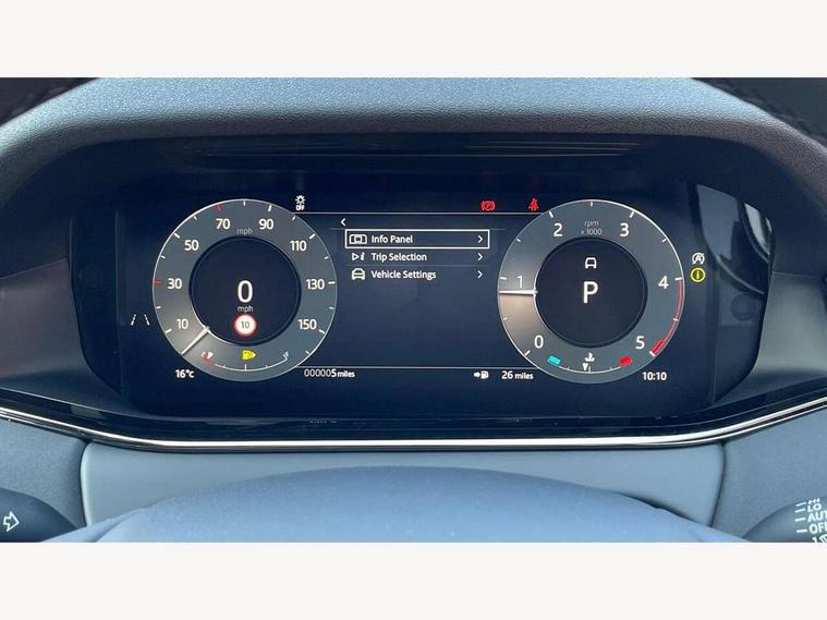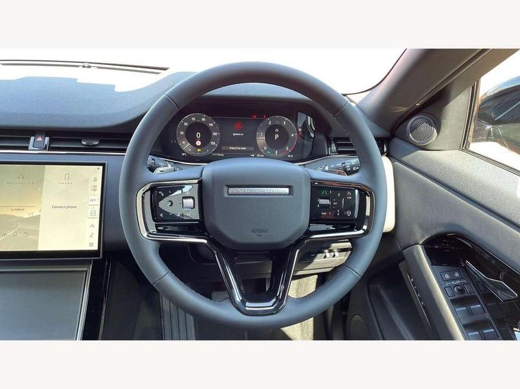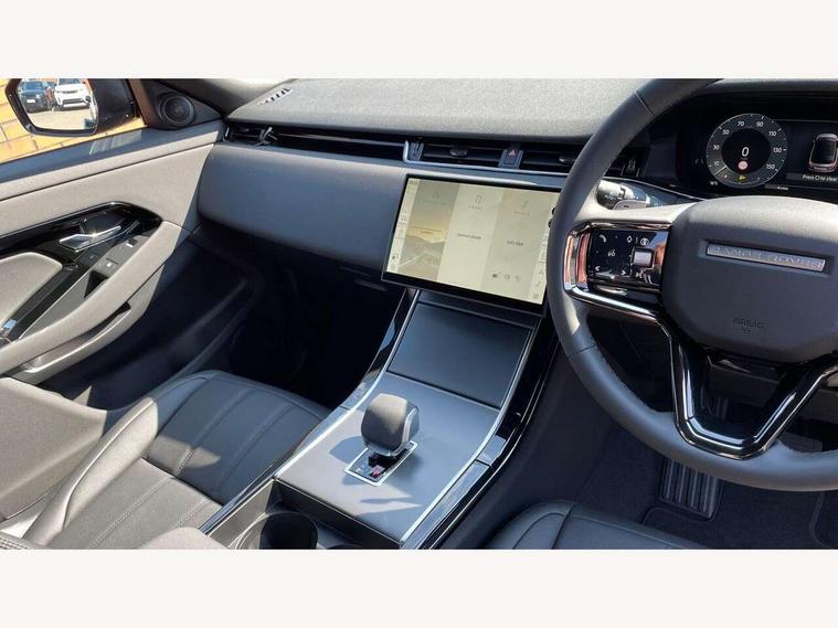 11.4" touch screen, Adaptive cruise control, Android Auto, Apple car play, Bluetooth connectivity, Brake pad wear indicator warning light, Digital driver display, Driver condition monitor, eCall emergency system, Eco mode, Electronic power assisted steering (EPAS), Front and rear parking aid, InControl remote, Land Rover InControl apps, Lane keep assist, Pivi pro connected includes diamond pivi variant, smart settings, connected navigation pro, nuance speech licence, Push button starter, Tailgate, Traffic sign recognition with adaptive speed limiter, Voice control system, Wireless device charging, All terrain progress control, Efficient Driveline, Terrain Response 2, Digital Audio Broadcast radio-DAB, Steering wheel mounted controls, Acoustic laminated windscreen, Auto headlights, Electric windows with one touch open/close and anti trap, Flush deployable exterior door handles, Front and rear recovery eyes, Heated rear window with timer, Heated washer jets, Heated windscreen, LED headlights with Daytime running light and LED tail lights, Manual headlight levelling, Power fold, auto-dimming, heated door mirrors with approach lights and auto dimming driver side, Rain sensing windscreen wipers, Rear animated directional indicators, Rear fog lights, Rear side wing doors, Rear wiper, Side repeater indicators in mirror, Tailgate spoiler, Third brake light, Winter wiper park position, 40:20:40 split folding rear seats with centre headrest and armrest, Ambient interior lighting, Carpet mats, Customer configurable single point entry, Front and rear cupholders, Heated front seats, Heated steering wheel, Isofix system on outer rear seats, Manually adjustable steering column, Overhead lighting console, Overhead stowage for sunglasses, Passive front head restraints, Rear air vents, Rear head restraints, Satin chrome gearshift paddles, Single passenger seat, Standard steering wheel with Moonlight Bezel, Standard tread plates with range rover branding, Sunvisors with illuminated vanity mirrors, Twin sliding front centre armrest, Power socket pack 2 - Evoque, 3 rear 3 point seatbelts, Anti-lock braking system (ABS), Brake hold function, Customer configurable autolock, DSC - Dynamic Stability Control, Electronic brake force distribution, Electronic parking brake, Electronic traction control, Emergency braking, Front and rear seatbelt reminder, Hill descent control, Hill launch assist, Low traction launch, Occupant protection assist, Passenger seat occupant detector, Power operated child locks, Roll stability control, Six airbags - Driver and passenger airbags/driver knee airbag/front side airbag and curtain airbags, Torque vectoring brake, Tyre pressure monitoring system, Alarm, Immobiliser, Intrusion sensor, Keyless entry, Locking wheel nuts, All season tyres,