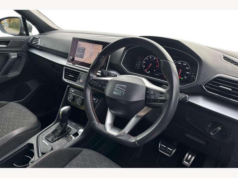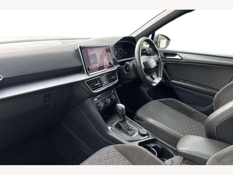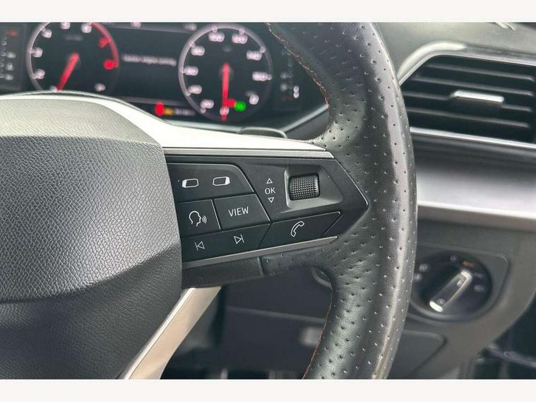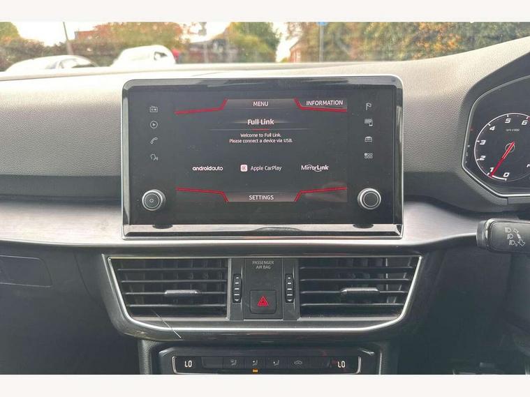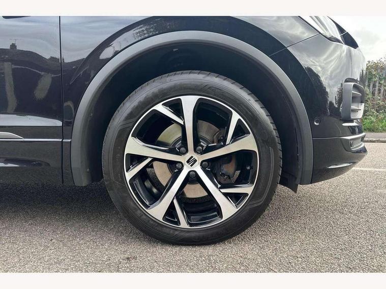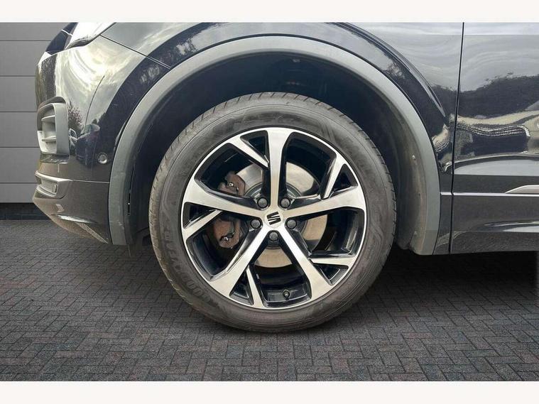 'Lights On' Reminder warning buzzer, 10.25" digital cockpit, Adaptive cruise control with speed limiter, Bluetooth audio streaming with handsfree system, Digital clock, Digital cockpit, e-Call (emergency call), Front assist city emergency braking and pedestrian protection, Full Link Wireless Smartphone Integration with Mirror Link, Apple Car Play, Lane assist, Low fuel warning light, Outside temperature gauge, PAS, RPM counter, Seat connect with safety, service, remote and online, SEAT Drive profile-4 different modes, progressive steering, 4Drive versions with off-road/snow, steering response, throttle response, gear shifts mode, Self parking functionality (includes front and rear parking sensors), Trip computer, Wash water level indicator, Comfort suspension, Sports rear shock absorption, XDS electronic differential lock, Navigation system with 9.2" colour touchscreen with proximity sensor, 3D Map display, DAB, AM/FM Radio, 3 USB (type C), Aux-in, 8 speakers, SD card, Steering wheel mounted audio/telephone controls, USB (type C) cable for Apple and Android compatibility, Auto dimming rear view mirror, Auto headlights with automatic coming and leaving home function, Automatic headlight adjustment, Black bumpers, Black door mirrors, Black roof rails, Black window trims, Body coloured side skirts, Dark tinted rear windows, Dynamic rear indicators, Electric adjustable/heated/folding door mirrors with memory, Electric front/rear windows, Exterior black mouldings, Front grille frame in black, Front halogen fog lights with cornering function, Fuel door linked to central locking, Full LED headlights with LED rear lights, Illuminated aluminium front door sill with trim logo, LED daytime running lights, LED licence plate lighting, Rain sensing wipers, Rear fog lights, Rear spoiler, Rear wash/wipe, Sports bumpers, Twin exhaust pipes, Welcome lighting, 3 zone climate control, Ambient spot lighting and front footwell illumination, Black interior roof, Centre armrest in front with air outlet in rear, Cloth/alcantara upholstery, Driver and passenger sunvisor with covered and illuminated mirror, Driver's electric lumbar adjustment, Easy fold rear seat system - second and third row, Electric driver's seat with memory, Forward and backward adjustable seats 2nd row, Four cargo rings in the boot, Front bucket seats, Front cupholders, Front passenger seat lumbar adjustment, Front seat back storage pockets, Gear shift indicator, Height adjustable front headrests, Height adjustable passenger seat, Illuminated boot, Illuminated glovebox, Instrument lighting with brightness control, ISOFIX points in outer 2nd row seats and front passenger seat with top tether anchorage points, Leather gear knob, Leather wrapped multifunction steering wheel, Luggage compartment floor with split function, Rear armrest and easy back seat release mechanism from boot, Rear headrests, Sliding boot cover, Sports steering wheel, Storage draw under front passenger seat, Three 12V sockets, White ambient lighting in front and rear door panels + LED lights in interior door handles, 3x3 point rear seatbelts, ABS, Active front head restraints, Driver/front passenger airbag, Drivers knee airbag, Electronic parking brake with auto hold, Electronic stability control, Front passenger airbag deactivation, Front side airbags, Hill hold control, Seatbelt reminders for all seats, Tiredness recognition system, Traction control, Two curtain airbags, Tyre pressure monitoring system, Alarm, Keyless enter and go with electric tailgate with virtual pedal, Locking wheel bolts, Power locking and remote control with two foldable keys and opening boot selector, Remote control central locking, Chrome interior detailing - door and dashboard decorative inserts, 19" Alloy wheels, Tool kit,