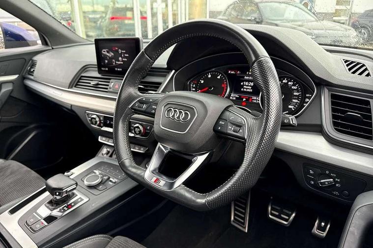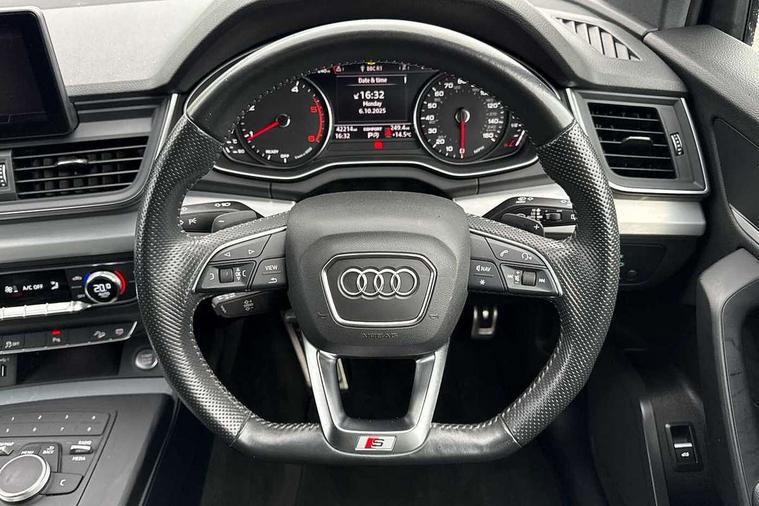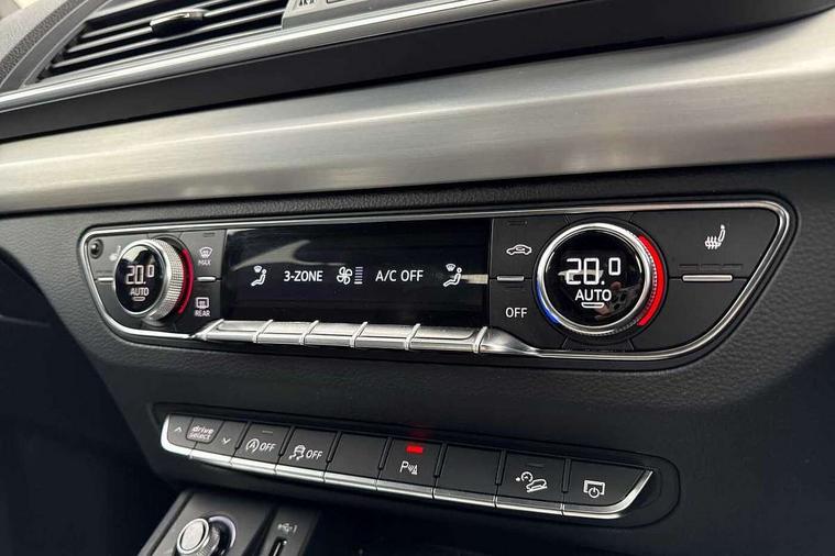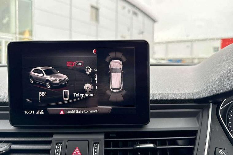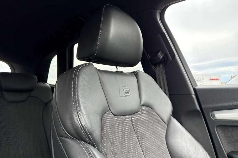 Audi connect, Audi drive select, Audi smartphone interface, Driver information centre with colour display in instrument panel, Electric power steering, Power tailgate, Remote electric boot opening/closing, SD card based MMI navigation, Service interval indicator, Voice control system, Diesel particulate filter, 2 USB ports, Audi sound system, Auxiliary input socket, CD player, DAB Digital radio, MMI radio plus with 7" colour MMI screen and MMI controller, Acoustic windscreen, Aluminium roof rails, Aluminium sill plates, Auto dimming rear view mirror, Black high gloss front air inlet in matt aluminium effect, Body colour bumpers, Body colour door mirrors, Body colour rear diffuser insert, Chrome exhaust tailpipe, Electric headlight adjustment, Electrically adjustable and heated door mirrors, Front and rear electric windows, Front fog lights, Headlight range control, Headlight washers, Honeycomb side air inlet in titan black, Light and rain sensor for auto activation of lights and windscreen wipers, Loading sill protector in stainless steel, Privacy glass with front acoustic glazing, Rear diffuser strip in matt aluminium silver, Rear spoiler, Rear wiper, S Line side skirts, Selenite silver underbody guard, Twilight grey matt radiator grille with matt aluminium horizontal chrome struts, 3 rear headrests, 3 zone climate control, 4 way electric lumbar support for driver and front passenger, 40:20:40 split folding rear bench seat, Black cloth headlining, Front centre armrest with 12v socket, Front sports seats, Front/rear floor mats, Height adjustable driver's seat, Height adjustable front head restraints, Illuminated door sills, Isofix front passenger and rear seat preparation, Jack and tool kit, Load compartment cover, Luggage compartment carpet, Matt selenite silver door inserts, Perforated leather gearknob, Reach + rake adjustable steering column, Removable luggage compartment floor, Removable net partition, Roller blind loadspace cover, Stainless steel pedals, Sunvisors with vanity mirrors, Non Smokers pack, 3 point seatbelts on all seats, ABS, Curtain airbags, Driver and passenger airbags, Driver and passenger side airbags, Electromechanical parking brake, ESC with ASR, ESP, First aid kit, Front passenger airbag deactivation, Hill descent control, Seat belt force limiter, Seatbelt warning lamp, Traction control, Tyre pressure monitor, Warning triangle, Keyless Go access/ignition system, Locking wheel bolts, Remote central locking, Thatcham category 1 alarm + immobiliser, Contrast stitching,