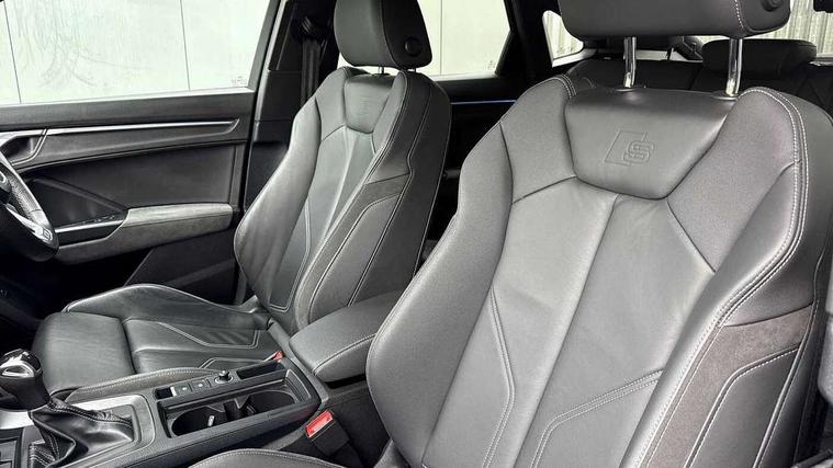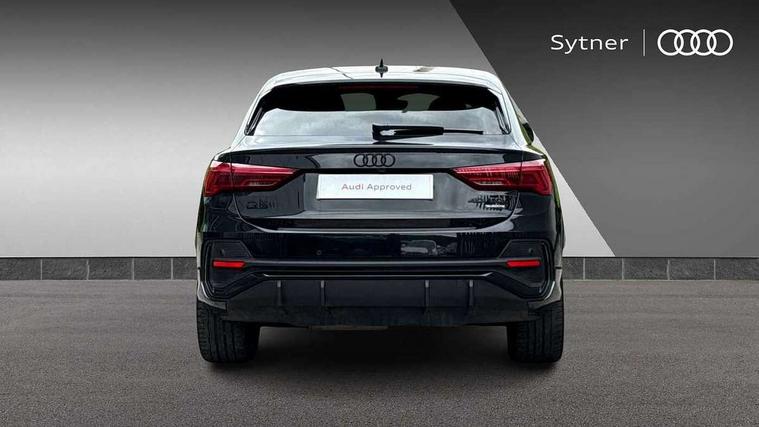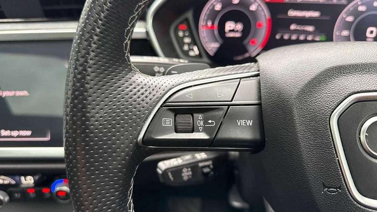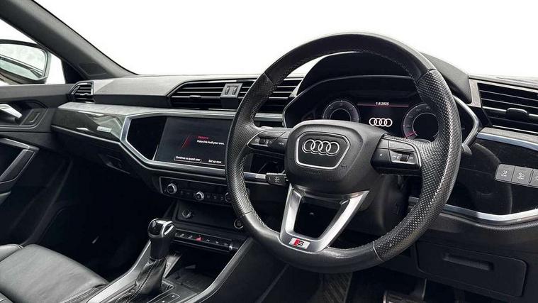 360 degree parking camera, Audi connect safety and service (e-call), Audi drive select, Audi lane departure warning, Audi smartphone interface includes wireless Apple carplay/Android Auto, Audi virtual cockpit plus, Bluetooth interface, Camera based traffic sign recognition, MMI Navigation Plus with high resolution 10.1 inch touchscreen colour display, Power operated tailgate, Progressive steering, Rear cross traffic assist, Service interval indicator, Start stop system with recuperation, Voice control system with natural language interaction, Adaptive suspension with damping control, Diesel particulate filter, 2 USB-C ports with charge and data functions, DAB digital radio module, SONOS premium sound system, Acoustic windscreen, Audi Beam uses LEDs to project Vorsprung logo, Auto dimming door mirrors, Auto dimming frameless rear view mirror, Bumpers and underbody protection in contrasting manhattan grey paint finish, Diffuser grille in grained matt black, Diffuser trim in selenite silver, Electrically folding, adjustable and heated door mirrors with integrated LED side indicators and kerb view function for passenger side, Front and rear electric windows, Front fog lights, Front side air inlets in selenite silver, Headlight washers, High gloss black finish B and C pillars, LED daytime running lights, Matrix LED headlights with LED rear lights and dynamic front and rear indicator, Panoramic opening glass sunroof, Privacy glass dark tinted rear and rear-side windows (from B-pillar backwards), Rain and light sensors, Rear underbody protection in matt black, 12V socket in rear centre console, 4 way electric lumbar support for driver and front passenger, 40:20:40 folding with manual adjustment for 60:40 forwards/backwards position and backrest angle, Adjustable rear seat bench/backrest with centre armrest and cupholder, Black cloth headlining, Dual zone electronic climate control, Electrically adjustable front seats, Front and rear black floor mats with contrast stitching, Front and rear headrests, Front and rear roof module including reading lights, Front centre armrest, Glove compartment lighting, Heated front seats, Height and reach adjustable steering wheel, Illuminated door sill trims with S logo, ISOFIX child seat mounting for front passenger with airbag deactivation and outer rear seat including top tether attachment point for outer rear seats, Leather steering wheel in 3-spoke design with multifunction plus and shift paddles, Luggage compartment light, Perforated leather gearknob, Stainless steel luggage compartment sill finisher, Stainless steel pedals, Black styling pack - Q3 Sportback Vorsprung, Driver Assistance Pack - Q3, Multi coloured extended ambient interior lighting pack - Q3, Non smoking pack - Q3, 3x3 point rear seatbelts, 6 airbags - Driver, front passenger, curtain and side windows, Audi pre-sense front with pedestrain and cyclist recognition, Electrically operated child locks on rear doors, Electromechanical parking brake, Electronic stabilisation control including ABS, ASR and EDL, Hill descent control, Hill hold assist, Pre sense basic, Seatbelt monitoring, Tyre pressure warning, Warning triangle and first aid kit, Advanced key, Anti theft alarm, Anti theft wheel bolts, Remote central locking, Black dashboard, Detail dashboard around MMI touch colour display in glass look, black with surround in aluminium look, Leatherette door armrest,
