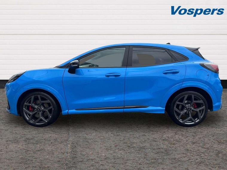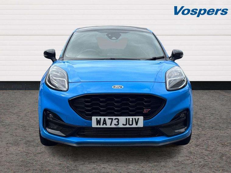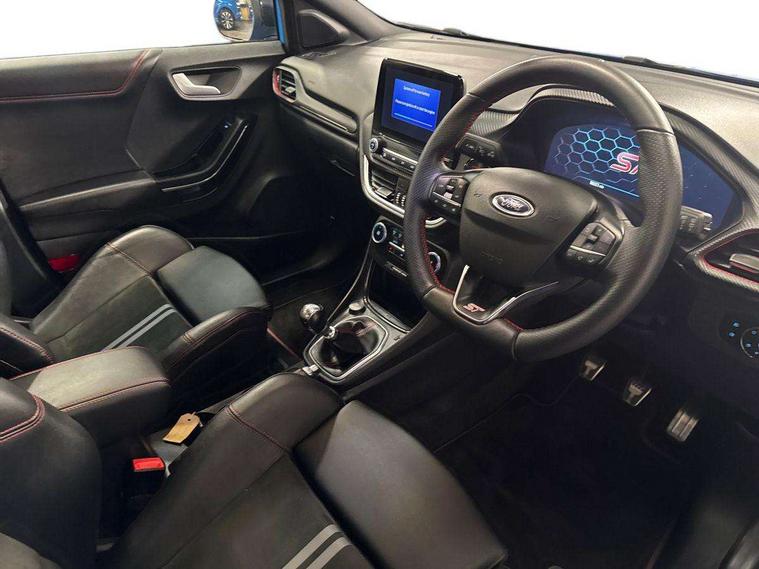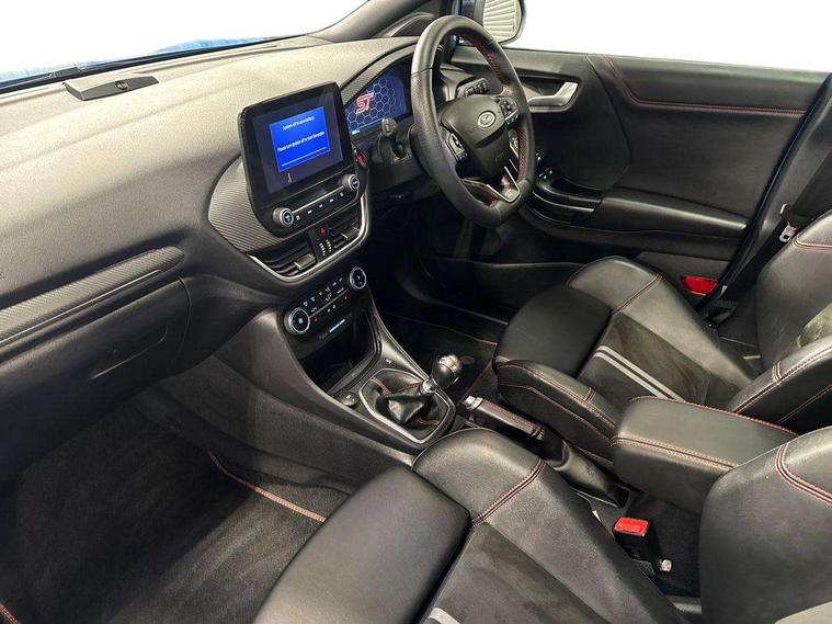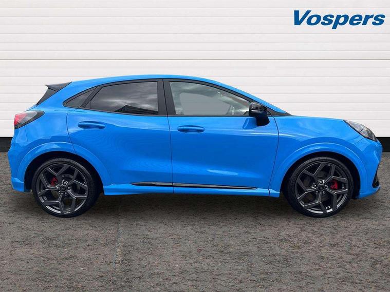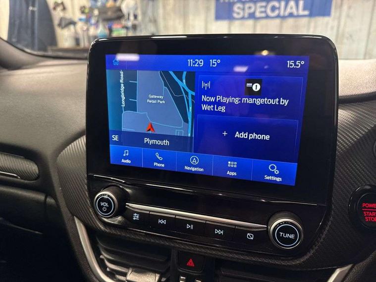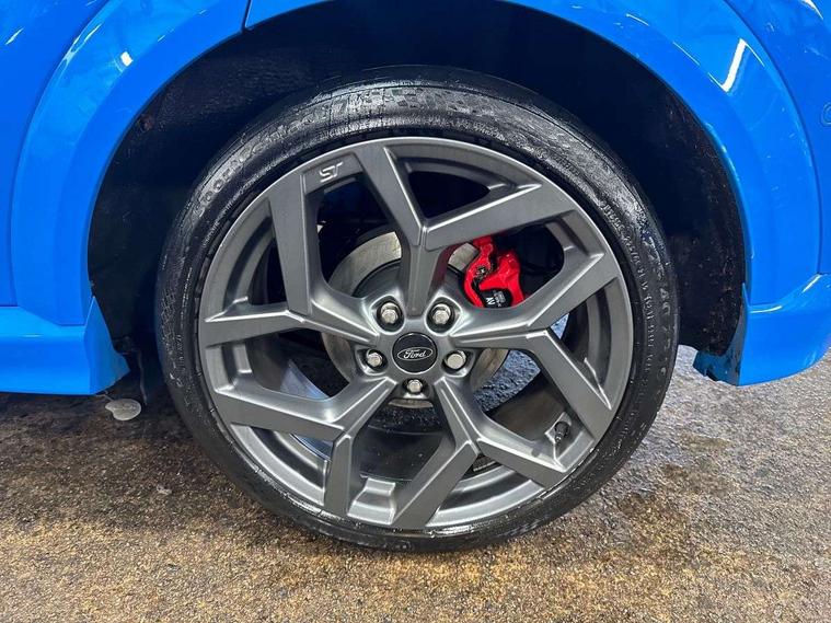 Cruise control with Intelligent speed assist, Driver impairment monitor, Emergency call service, Ford easy fuel, Front and rear parking sensors, Full digital 12.3" instrument cluster, Lane keeping aid with lane departure warning, Power assist steering, Selectable drive modes (normal, sport, eco, track), Speed sign recognition, Engine sound enhancer, ST suspension, Automatic headlights with auto high beam, Automatic rain sensing wipers, Dual chrome exhaust, Fixed LED signature headlamps, Front fog lamps, LED daytime running lights, LED rear lamps, Power foldable heated door mirrors with puddle lamps and puma logo protection, Privacy glass to side rear windows and tailgate glass, Quickclear heated windscreen, Rear side wing doors, Rear wiper, ST scuff plates, Third brake light, Unique ST body styling kit including contrast black roof, large rear spoiler and wing mirrors, plus Ford Performance embossed splitter, 3 seat bench in 2nd row, Alloy sports pedals, Centre console with armrest and stowage, Ford megabox extended bootspace, Ford Performance sensico partial premium leather upholstery with metal grey stitching, Front and rear floor mats, Front and rear head restraints, Manual 6 way driver seat adjust with lumbar adjustment, Manual 6 way passenger seat with lumbar seat adjustment, Single front passenger seat, ST flat bottomed steering wheel with metal grey stitching, ST logo projection, Unique ST gear shift knob, Wireless charging pad with electronic air temperature control (EATC), B&O Premium Audio system + Ford SYNC 3 navigation pack - Puma, Winter pack - Puma, 3 rear seatbelts, Child safety lock, Electronic stability control (ESC) and hill start assist, Pedestrian/cyclist detection & post-collision braking, Pre collision assist system, Red brake calipers, Tyre pressure monitoring system (TPMS), Keyless entry and power start button, Thatcham alarm, Carbon look interior deco spears, 19" 5 Spoke magnetite dark finished alloy wheel, Tyre inflation kit,
