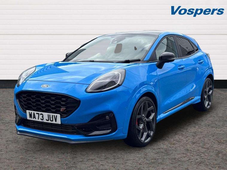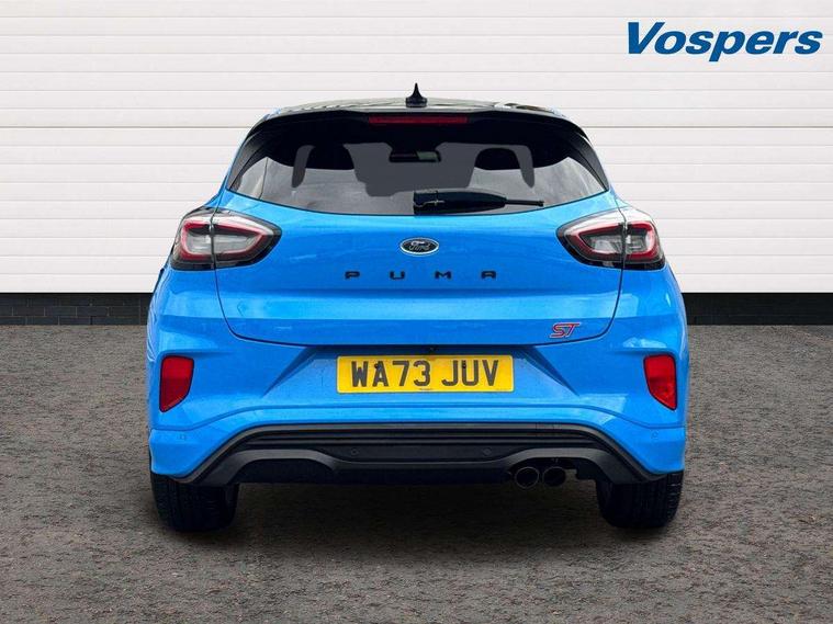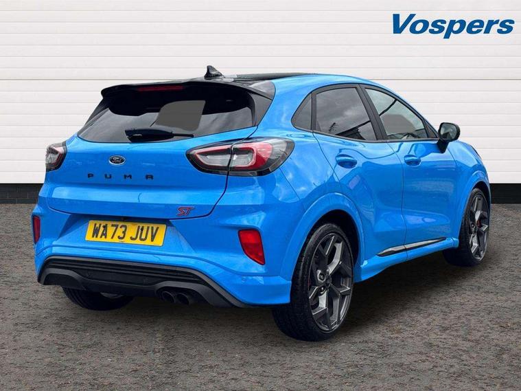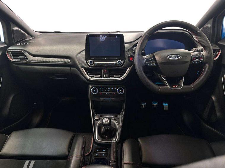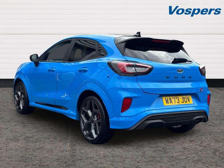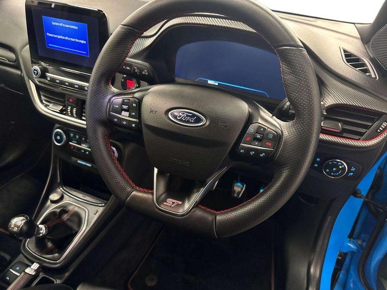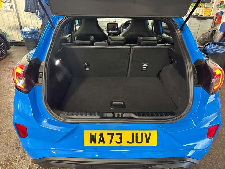 Cruise control with Intelligent speed assist, Driver impairment monitor, Emergency call service, Ford easy fuel, Front and rear parking sensors, Full digital 12.3" instrument cluster, Lane keeping aid with lane departure warning, Power assist steering, Selectable drive modes (normal, sport, eco, track), Speed sign recognition, Engine sound enhancer, ST suspension, Automatic headlights with auto high beam, Automatic rain sensing wipers, Dual chrome exhaust, Fixed LED signature headlamps, Front fog lamps, LED daytime running lights, LED rear lamps, Power foldable heated door mirrors with puddle lamps and puma logo protection, Privacy glass to side rear windows and tailgate glass, Quickclear heated windscreen, Rear side wing doors, Rear wiper, ST scuff plates, Third brake light, Unique ST body styling kit including contrast black roof, large rear spoiler and wing mirrors, plus Ford Performance embossed splitter, 3 seat bench in 2nd row, Alloy sports pedals, Centre console with armrest and stowage, Ford megabox extended bootspace, Ford Performance sensico partial premium leather upholstery with metal grey stitching, Front and rear floor mats, Front and rear head restraints, Manual 6 way driver seat adjust with lumbar adjustment, Manual 6 way passenger seat with lumbar seat adjustment, Single front passenger seat, ST flat bottomed steering wheel with metal grey stitching, ST logo projection, Unique ST gear shift knob, Wireless charging pad with electronic air temperature control (EATC), B&O Premium Audio system + Ford SYNC 3 navigation pack - Puma, Winter pack - Puma, 3 rear seatbelts, Child safety lock, Electronic stability control (ESC) and hill start assist, Pedestrian/cyclist detection & post-collision braking, Pre collision assist system, Red brake calipers, Tyre pressure monitoring system (TPMS), Keyless entry and power start button, Thatcham alarm, Carbon look interior deco spears, 19" 5 Spoke magnetite dark finished alloy wheel, Tyre inflation kit,