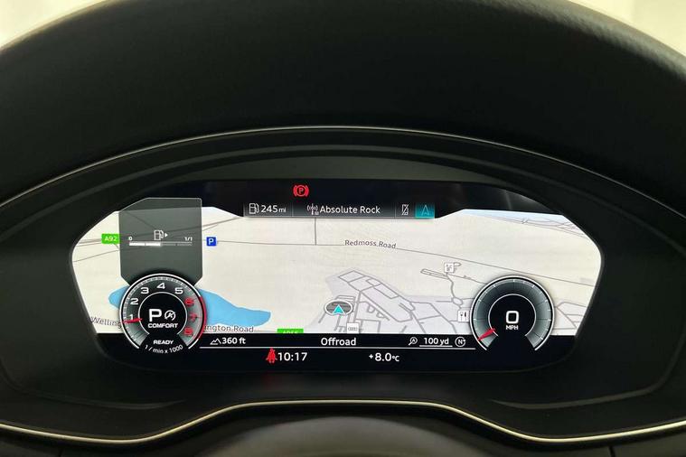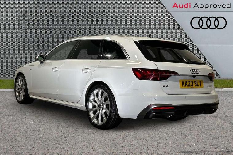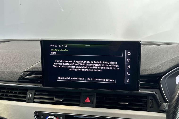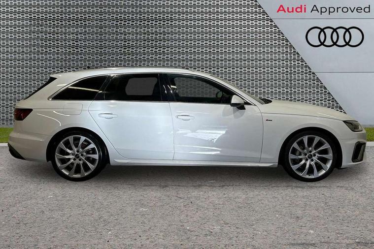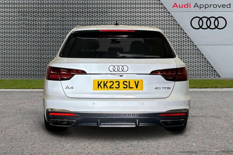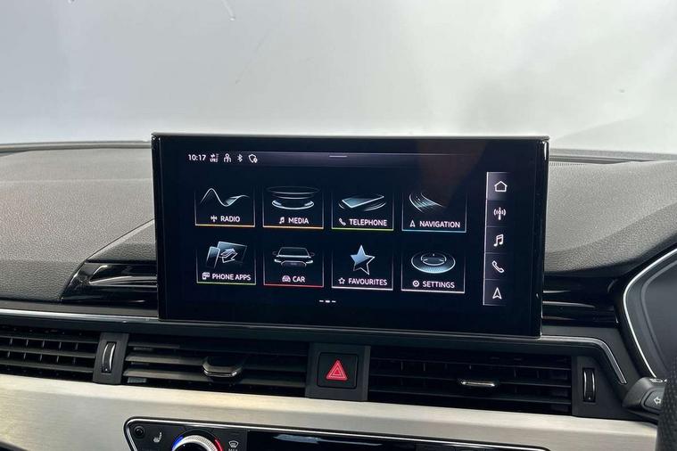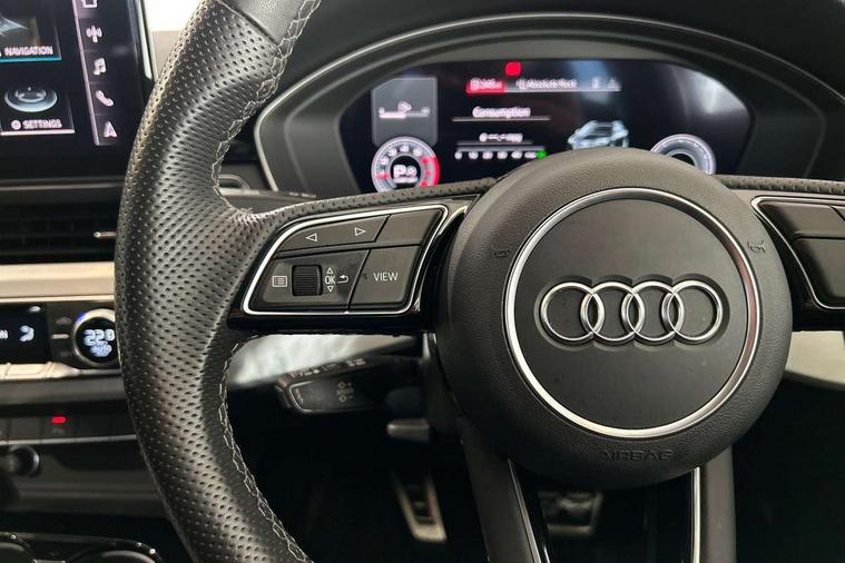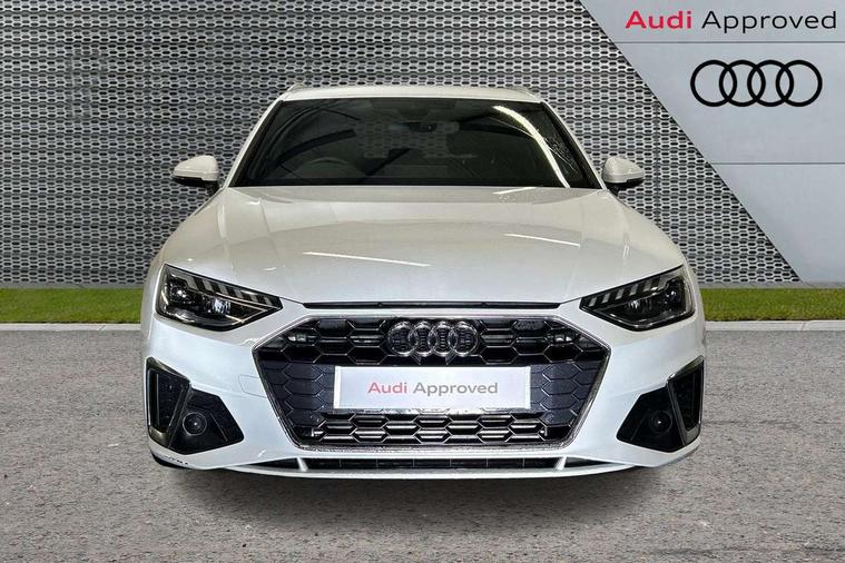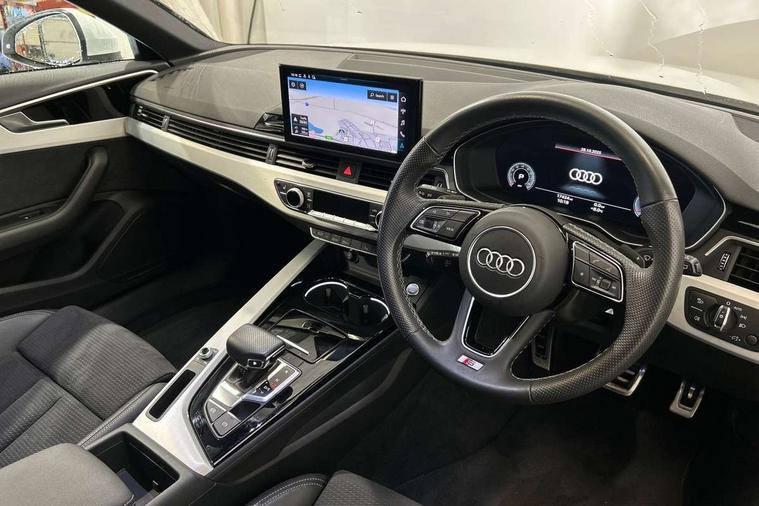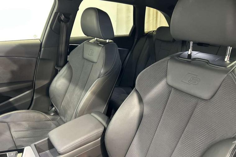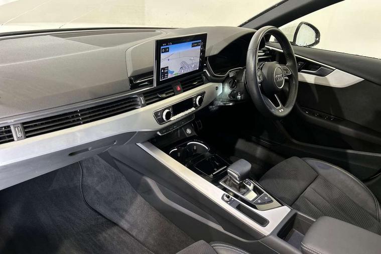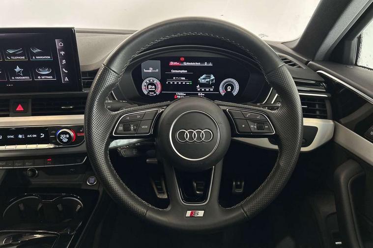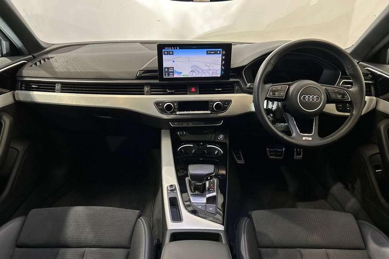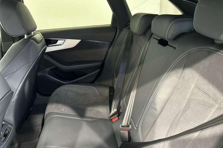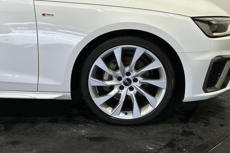 Audi connect safety and service (e-call), Audi connect with Amazon Alexa Integration, Audi drive select, Audi smartphone interface, Audi virtual cockpit, Automatic start-stop system with coasting functionality and efficiency programme, Bluetooth interface, Electromechanical power steering, Email, calendar and text messages displayed via MMI, MMI Navigation plus with MMI touch includes 10.1" high resolution colour MMI display, 3D map, Power operated tailgate, Voice control system, 54 litre fuel tank, Sports suspension lowered by 23mm, 2 USB charging ports, 8 passive loudspeakers, DAB digital radio reception, Aluminium roof rails, Auto dimming rear view mirror, Body colour door handles, Body colour front spoiler lip, Body colour side sill trim, Body coloured door mirrors, Electrically folding auto dimming/adjustable/heated door mirrors with LED side indicators and kerb view function for passenger side, Grained matt black side air inlets with matt aluminium silver inlay, High beam assistant, Honeycomb structure radiator grille in grained matt black, LED headlights with LED rear lights + dynamic rear indicators + headlight adjustment and high beam, turning light + LED daytime running lights, LED third brake light, Matt aluminium silver tailpipe trim, Privacy glass, Rain and light sensors, Rear side wing doors, Rear wiper, S Line badges on the front wings, S line front and rear bumpers with side skirts, S Line rear diffuser in matt anthracite black with trim strip in matt aluminium silver, S Line roof edge spoiler, Variable intermittent front wash/wipe, Windscreen with acoustic glazing, 3 spoke high multi-function sports leather steering wheel grips in perforated leather with S badging including paddle shift, 4 way electric lumbar support for driver and front passenger, 40/20/40 split folding 3 rear seat bench in 3 parts with rear centre armrest, Black cloth headlining, Black perforated leather gearknob, Contrast stitching on seats, steering wheel and gear lever gaiter, Deluxe 3 zone electronic climate control, Door sill trims with aluminium inlay, Electric load area cover, Front and rear head restraints, Front centre armrest, Heated front seats, Illuminated door sill trims with S logo, ISOFIX child seat mounting and top tether, Manual seat adjustment, Single front passenger seat, Stainless steel pedals and foot rest, High gloss package - A4, LED Interior light pack - A4/S4, 3 rear seatbelts, 6 airbags - Driver, front passenger, curtain and side windows, Electronic Stabilisation Control (ESC) including ABS, ASR and EDL, Hill hold assist, Multi collision brake assist, Pop-up bonnet for pedestrian protection, Pre sense city, Rear door child safety locks, Seatbelt monitoring, Warning triangle and first aid kit, Anti theft alarm, Anti theft wheel bolts, Central locking, Keyless Go, Matt brushed aluminium inlays, Tool kit, Tyre repair kit,