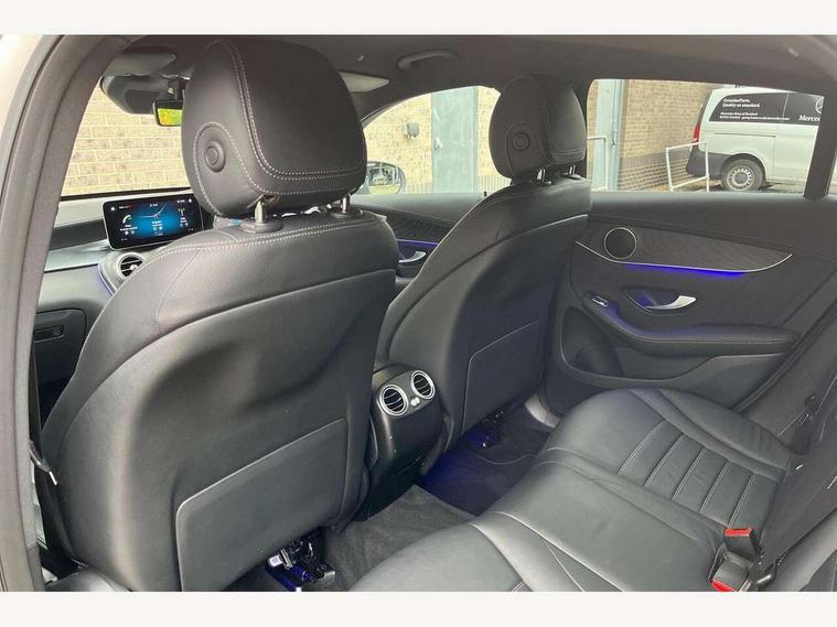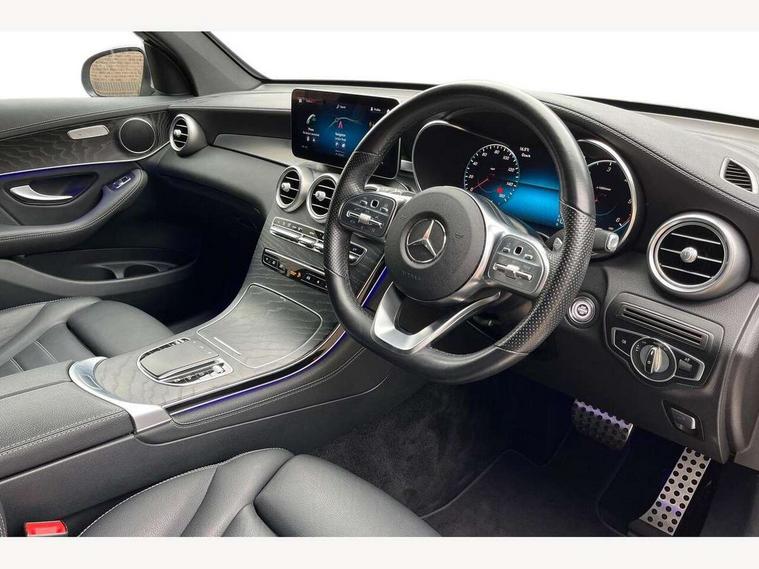 Active parking assist with parktronic system, Attention assist, Bluetooth interface for hands free telephone, Collision prevention assist plus, DYNAMIC SELECT with a choice of driving modes (ECO, Comfort, Sport, Sport+ and Individual), ECO start/stop function, Hard disk navigation, Hey Mercedes Voice activation, Instrument cluster with12.3-inch digital instrument cluster display. High esolution instrument cluster screen with choice of three display styles, MBUX augmented reality for navigation, MBUX Interior assistant, MBUX multimedia system with DAB digital radio and touchpad including satellite navigation, Mercedes connect me with remote online services, Multi function trip computer, Outside temperature display, rear seatbelt status indicator, Power opening/closing tailgate, Remote boot release, Reversing camera, Service indicator (ASSYST), Smartphone integration with Apple CarPlay and Android auto, Traffic sign assist, Wireless charging, 50 litre fuel tank, Diesel particulate filter, Sports suspension tuned for improved handling and driving dynamics, DAB Digital radio, Media display 10.25-inch touchscreen display, Mercedes Benz sound system (225w) includes mid-range sound system, Pre installation for Mercedes Benz Link, USB ports x 2 in centre console, Adaptive brake lights, AMG bodystyling AMG front apron with sporty air intakes and chrome trim element, AMG diffuser-look rear apron with insert in black, Body colour door mirrors, Body coloured bumpers, Electric windows one touch open/close, Electrically adjustable and heated door mirrors, Exhaust tailpipe finisher, Front and rear exterior chrome trim, Headlamp assist automatic headlamp activation, LED tail lamp, Multi beam LED headlamps with 84 indiviually control LED, daytime running lamps, Active Light, cornering light, enhanced fog lamp, adaptive Highbeam Assist, Privacy glass (to rear of B post), Radiator diamond grille, Rain sensor windscreen wipers, Range adjustable headlights, Rear wiper, Running boards, Tinted glass all round, Two chrome plated tailpipe trim elements, 2 way rear head restraints, 3-spoke multifunction AMG steering wheel in black nappa leather with flattened bottom section, chrome inserts and perforated leather in grip area, 40:20:40 split folding rear seats, Ambient lighting, AMG floor mats with edging and embroidered AMG lettering, AMG sports seats, Automatic child seat recognition sensor, Automatic climate control, Black roof lining, Dividing net - rear, Double cup holder in centre console, Easy-pack load compartment cover, Front armrest with storage box, Front door sills with Mercedes benz lettering, Front seats with electric adjust (backrest, height and seat cushion inclination) with 4 way electric lumbar support and manual cushion depth adjust, Gearshift paddles, Heated front seats, Height/reach adjustable steering column, Illuminated and lockable glove compartment, Leather upholstery, Rear top tether child seat ISOFIX attachment, Sports pedals with stainless steel surfaces and rubber studs, Sunvisors with illuminated vanity mirrors, Interior lighting pack - GLC, Mirror pack - GLC, Storage pack - GLC, 3 rear 3 point seatbelts, Active bonnet, Adaptive brake system with HOLD function and brake drying in the wet, ASR, Black seat belts, Brake calipers with Mercedes-Benz lettering + perforated brake discs, Child proof door locks, Dual-stage airbags - driver and front passenger, driver knee bag and window bags for driver, front passenger and rear passengers, Electronic parking brake, Electronic stability programme (ESP) with curve dynamic assist and cross wind assist, Front and rear seatbelt reminder, Front passenger seat occupancy sensor, Hill hold function, Tyre pressure monitoring system, Warning triangle and first aid kit, Alarm system/interior protection/immobiliser, Automatic door locking, KEYLESS-GO starting function, Remote central locking, Open pore black ash wood trim,