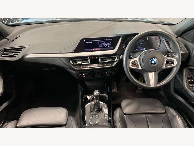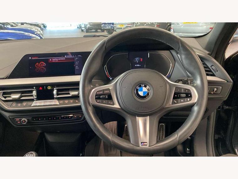 Active guard plus, Attentiveness assist, BMW Online services, BMW Teleservices, Check Control warning system for monitoring of lights and door/luggage compartment open warning, Connected eDrive Services, Cruise control with brake assist, Eco pro mode, Electric power steering with Servotronic steering optimised at all speed ranges, Integrated owners handbook, Lane departure warning system, Oil sensor for level and grade, On board computer, Optimum shift indicator, Personal Profile, Pull away assistant, Speed limiter, 6 speed manual transmission, Aluminium lightweight construction, Anti roll bar front and rear, Balancer shaft, Double VANOS, Drive Performance Control, Electronic differential lock, High precision injection, M sports suspension + self levelling, Petrol Particulate Filter, VALVETRONIC engine management, Bluetooth audio streaming, DAB Digital radio, Auto dimming rear view mirror, Automatic headlight beam throw control, Body colour door handles, Body colour mirror caps, Chrome 'M' logo side designation, Chrome exhaust tailpipe in single, round (Exhaust tailpipe, stainless steel - single, round), Chrome kidney grille frame with Satin Aluminium struts, Direction indicator side lights in exterior mirrors, Electric folding and anti dazzle exterior mirrors, Fading support, Follow me home headlights, Front and rear electric windows with open and close fingertip control, anti trap facility and comfort closing, Front door sill finishers in black plastic with BMW designation, Green tinted heat protection glazing, Heated, electrically adjustable exterior mirror aspheric on driver side, convex on passenger side, High gloss shadow line exterior trim, High gloss shadowline window frame, Recess cover mirror frames and B/C pillar embelisher trim, High level third brake light, LED daytime running lights, LED eyebrow turn indicators, LED front fog lights, Lightweight engineering, Matt black air guide grilles, Model designation on right side of tailgate, Nearside reverse light in rear light cluster, Preparation for high beam assistant, Rain sensor including auto headlights activation, Rear fog lights, Rear window wiper, Shark fin antenna, Visible VIN plate, Welcome lighting, Windscreen wipers with integrated washing jets, 12V power socket in centre console, 2 cupholders in front centre console, 3 rear seat head restraints, 3 spoke M sports design leather steering wheel finished in nappa leather with specific M badge, Anthracite headlining, Anthracite Velour floor mats, Child seat ISOFIX attachment for two outer rear seats and front passenger seat with anchorage points, Conditioned based service, Dakota leather upholstery with perforation and contrast stitching, Driver and front passenger seat heating, Driver side folding compartment in instrument panel, Folding rear clothes hook, Folding rear seats, Four grab handles integrated in roof lining, Front and rear door pockets, Front and rear side armrest integrated into door trim, Front armrest foldable with integrated storage compartment, Front sports seats with electric side bolster adjustment, Gearshift lever with M designation, Glove compartment, Height adjustable front head restraints, Manual adjust steering wheel, Multi-function controls for steering wheel, Rear seat backrest with manual 60:40 split folding with 3 top tether clips integrated on rear of seat panels, Storage compartment in centre console, Sun visors with vanity mirrors and insert tab, Two zone automatic air conditioning, Connected pack professional - 1 Series, Extended Lighting pack - 1 Series, Extended storage pack - 1 Series, Interior lights pack - 1 Series, Luggage compartment pack - 1 Series, M Sport exterior styling aerodynamics pack - 1 Series, 2 tone horn, 3 point seatbelts on all seats, front pyrotechnic belt tensioners, stopper and belt force limiters, rear coded belt buckles, Airbags - Front driver and passenger, front and rear head, front side, curtain head protection, Anti lock braking system (ABS) with brake assist, BMW emergency call, Brake drying, Braking readiness, City braking function, Crash sensor activating central locking release, hazard warning lights, fuel cut off, interior lighting + activation of safety battery terminal clamp, Driver and front passenger seat belt security check, Dynamic stability control + (DSC+), Dynamic Traction Control - DTC, Electrically operated hand brake, Front and rear disc brakes, Front passenger manual airbag deactivation, Rear child proof door locks, Seatbelt warning, Side impact protection, Tyre pressure monitoring system, Warning triangle and first aid kit, Automatic drive away locking facility, Central locking switch for all doors, fuel filler cap and luggage compartment, Deadlocking function system to all doors, Locking wheel bolts, Remote control with integrated key with High-gloss Black inlay and M designation and 1 button for open/ close lock, window, open luggage compartment, Start/stop button with comfort go keyless engine start and auto start stop deactivation button, Thatcham Cat.1 alarm and immobiliser, Contrast stitching on instrument panel, Reduced rolling resistance tyres,