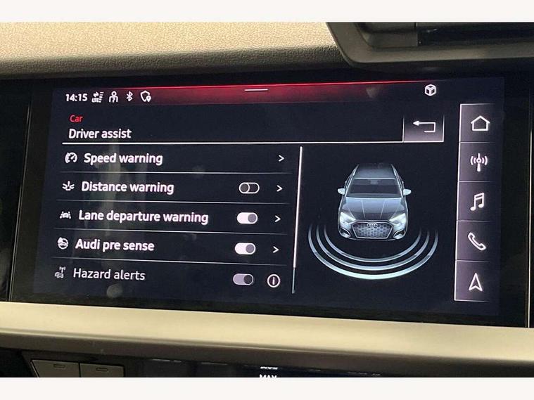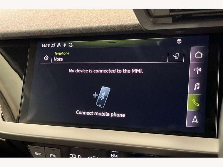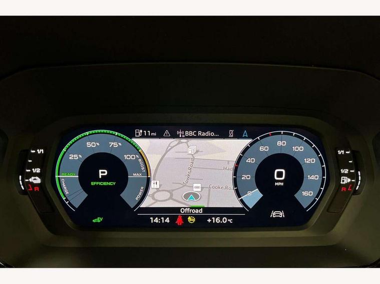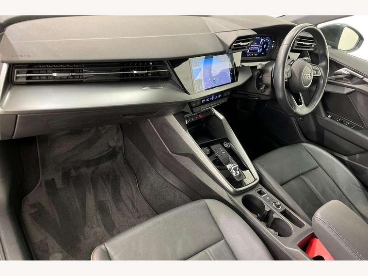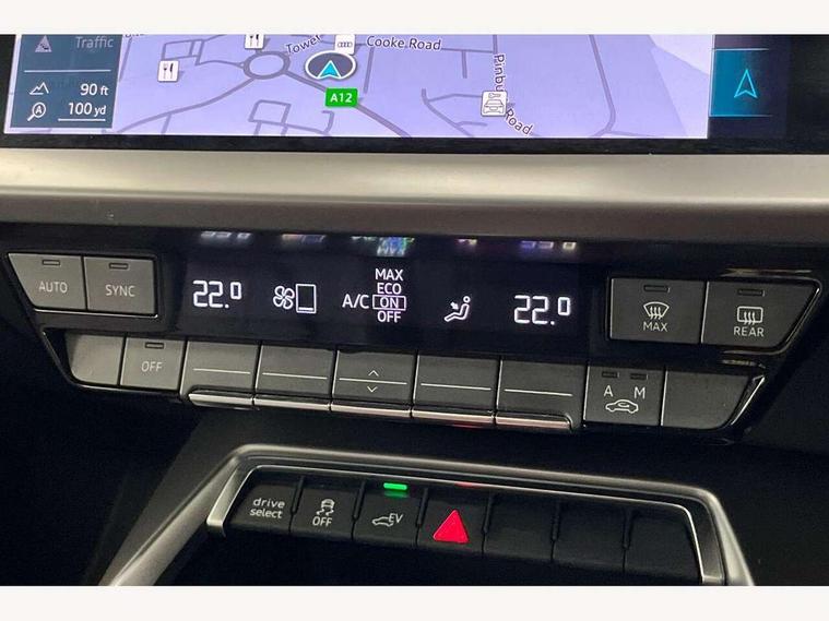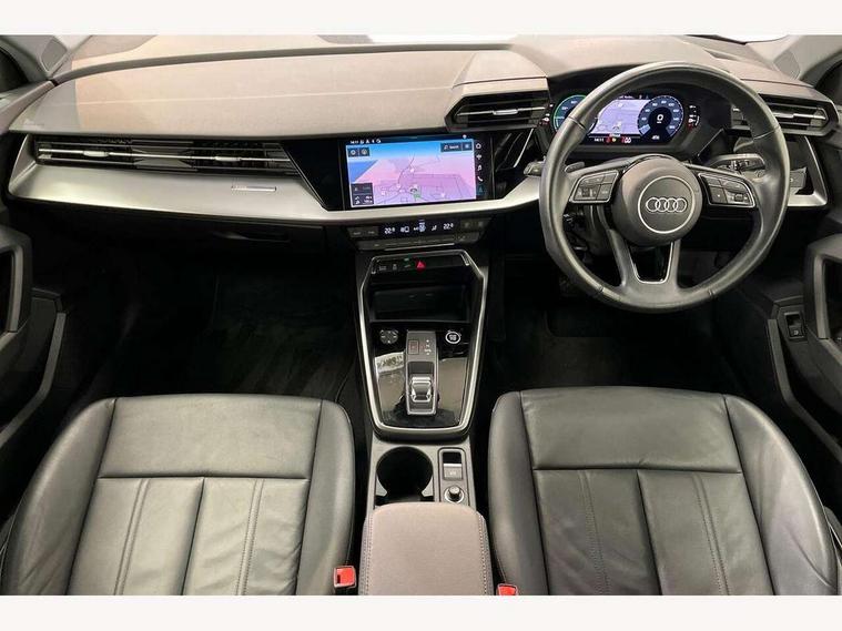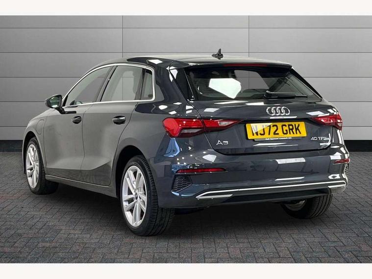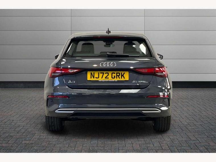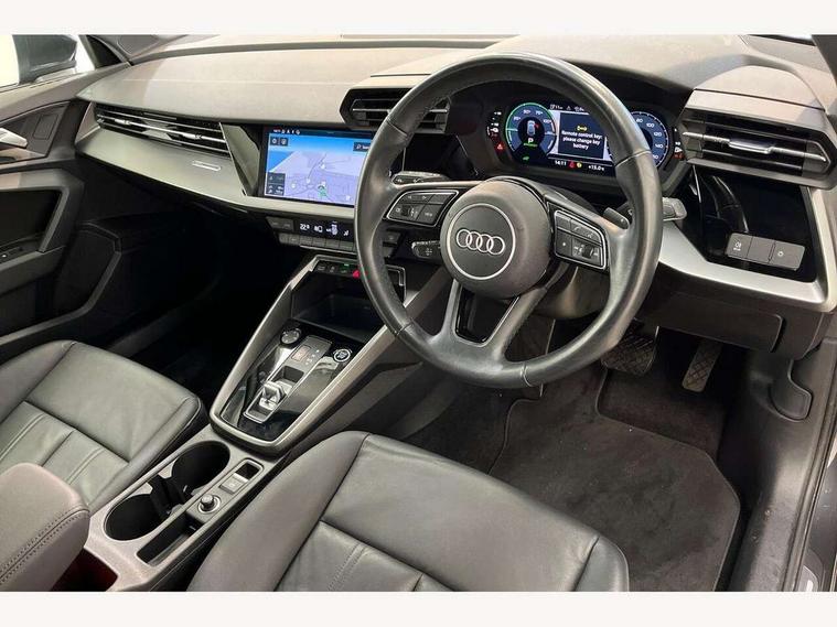 Audi drive select (Auto, Comfort, Dynamic, Efficiency and Individual), Audi smartphone interface, Audi Virtual Cockpit - 10.25" digital and colour instrument cluster, Automatic start/stop system with recuperation, Bluetooth interface, Collision avoidance assistant, e-Call (emergency call), Electromechanical power speed sensitive steering, Lane departure warning system, MMI Navigation Plus with high resolution 10.1" colour touch screen display, Service indicator, Trip computer, Voice control system with natural language interaction, 3 pin 10 amp domestic charging cable, 3.6 kw On-board charger, Standard suspension, Type 2 mode 3 32 amp charging cable, Type 2 socket for AC charging, 2xUSB-C connection with data and charging functions, 6 passive loudspeakers, DAB Digital radio, 3rd brake light, Acoustic glass windscreen, Aluminium window trim, Auto dimming frameless rear view mirror, Body colour exterior mirrors, Body colour roof spoiler, Electrically adjustable/heated/folding/auto dimming door mirrors with integrated LED indications + kerb view function for passenger side, Front electric windows, LED daytime running lights, LED headlights and halogen rear lights, Light and rain sensors, Rear electric windows, Rear side wing doors, Rear window, rear door windows and rear side windows in clear glass, Rear wiper, 12V socket and storage compartment in front centre console, 3 seat bench in 2nd row, 40/20/40 split folding rear seat bench with cupholder, Dual zone electronic climate control, Front and rear centre armrest, Front and rear headrests, Front door sill trims with aluminium inlay, Front/rear floor mats, Height and reach adjustable steering wheel, Interior lighting - Front and rear roof module including reading lights, glove compartment light and right hand side, Luggage compartment floor covering, Manual boot compartment lid, Manually adjustable front seats, Seat side bolsters, Single front passenger seat, Steel grey cloth headlining, Twin leather upholstery, Aluminium interior elements pack - A3 Sportback, Sport styling pack - A3 Sportback, 3x3 point rear seat belts, Audi pre sense front, Driver and front passenger airbag with passenger airbag deactivation, Electronic Stabilisation Control (ESC) including ABS, ASR and EDL, First aid kit with warning triangle and 2 safety vests, Front side airbags with head airbags and interaction airbag, Pre-sense front with pedestrian and cyclist detection, Seatbelt monitoring, Tyre pressure loss indicator, Anti theft alarm, Anti-theft wheel bolts, Immobiliser, Manual child locks, Remote control central locking, Inlays with silk effect paint in platinum grey, Tool kit, Tyre repair kit,