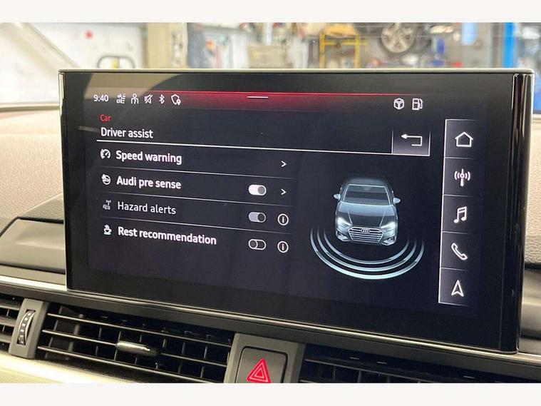 Audi connect safety and service (e-call), Audi connect with Amazon Alexa Integration, Audi drive select, Audi parking system plus with front and rear sensors, Audi smartphone interface, Audi virtual cockpit, Automatic start-stop system with coasting functionality and efficiency programme, Bluetooth interface, Cruise control system with speed limiter, Electric boot lid release, Electromechanical power steering, Email, calendar and text messages displayed via MMI, MMI Navigation plus with MMI touch includes 10.1" high resolution colour MMI display, 3D map, Rear view camera, Voice control system, 54 litre fuel tank, Comfort dynamic suspension, 2 USB charging ports, 8 passive loudspeakers, DAB digital radio reception, Auto dimming rear view mirror, Body coloured door mirrors, Electrically folding auto dimming/adjustable/heated door mirrors with LED side indicators and kerb view function for passenger side, LED headlights and rear lights with LED daytime running lights, LED third brake light, New design rear diffuser, Rain and light sensors, Rear boot, Rear side wing doors, Variable intermittent front wash/wipe, Windscreen with acoustic glazing, 3 spoke high multi-function leather sport steering wheel with paddle shift and height and reach adjustable, 4 way electric lumbar support for driver and front passenger, 40/20/40 split folding 3 rear seat bench in 3 parts with rear centre armrest, Deluxe 3 zone electronic climate control, Door sill trims with aluminium inlay, Front and rear head restraints, Front centre armrest, Heated front seats, Interior lighting, ISOFIX child seat mounting and top tether, Manual seat adjustment, Single front passenger seat, High gloss package - A4, 3 rear seatbelts, 6 airbags - Driver, front passenger, curtain and side windows, Electronic Stabilisation Control (ESC) including ABS, ASR and EDL, Hill hold assist, Multi collision brake assist, Pop-up bonnet for pedestrian protection, Pre sense city, Rear door child safety locks, Seatbelt monitoring, Warning triangle and first aid kit, Anti theft alarm, Anti theft wheel bolts, Central locking, Keyless Go, Tool kit, Tyre repair kit,