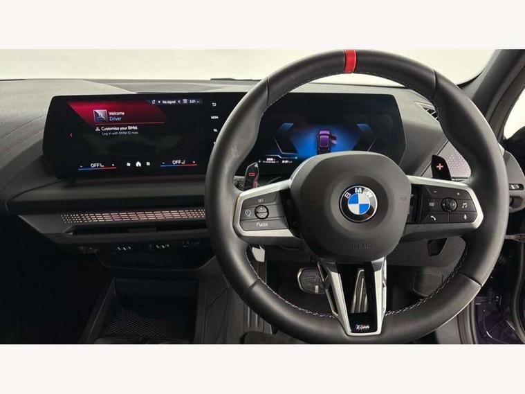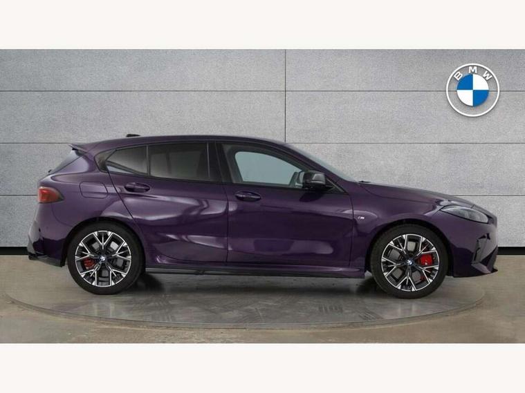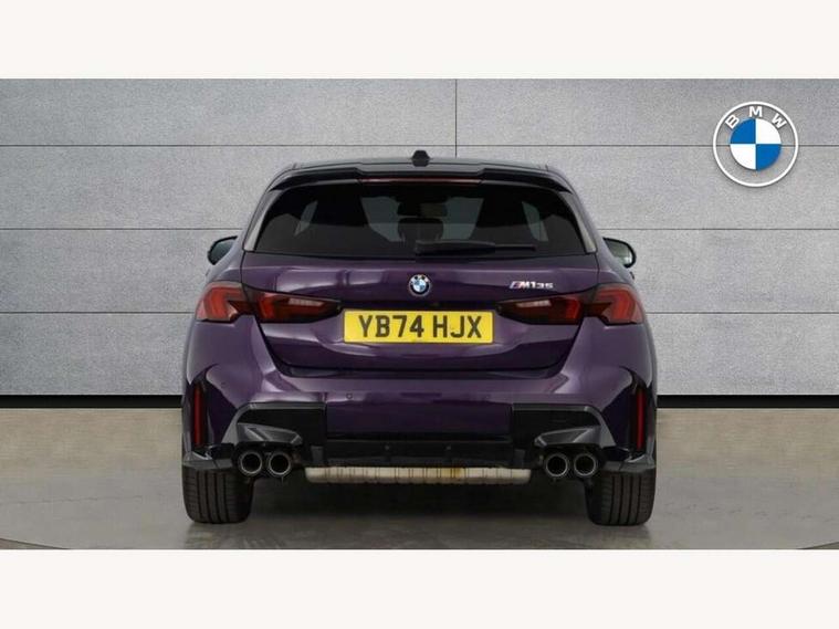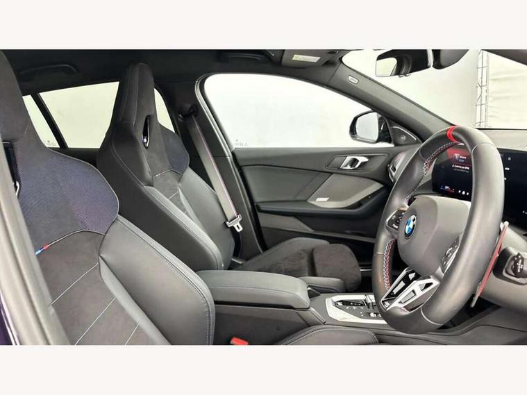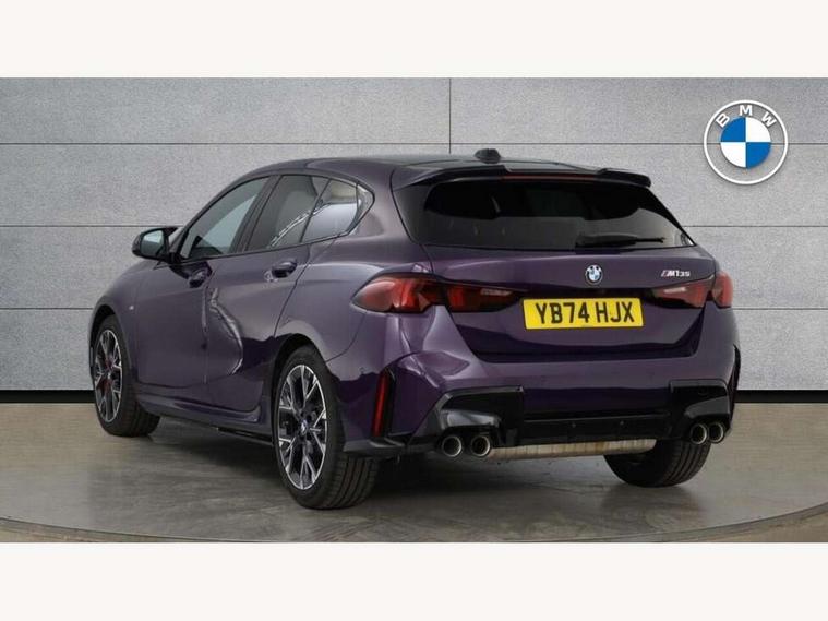 Active guard plus, Attentiveness assist, Bluetooth / WiFi interface for wireless connection of mobile terminal devices and audio streaming, BMW ConnectedDrive online services, BMW Live cockpit plus, BMW Teleservices, Check Control warning system for monitoring of lights and door/luggage compartment open warning, Cruise control with speed limiter, Eco pro mode, Electric power steering, Electro hydraulically controlled multi-plate clutch transfers drive to rear axle and with power take-off device located on the front differential., Energy efficient operating strategy, Front and rear parking sensors, Front axle single joint with specific axle kinematics to minimise drive influences on steering + provide increased rigidity agile driving behaviour, Gearshift time display in manual mode, Integrated owners handbook, Lane departure warning system, M Sports steering with M135i xDrive specific settings, Oil sensor for level and grade, On board computer, Optimum shift indicator, Park assist including reversing assistant, lateral parking aid and reversing assist camera, Personal Profile, Pull away assistant, Rigidly mounted rear subframe - Multi link construction with separate spring / damper configuration and excellent driving characteristics, Speed limit Info including no-overtaking indicator, Speedometer, Sporty fast gear shifting in sport mode, 49 litre fuel tank, Aluminium lightweight construction, Anti roll bar front and rear, Balancer shaft, Double VANOS, Drive Performance Control, Eight speed sport automatic transmission with gearshift paddle switches, Electronic differential lock, Electronic selector lever, Engine cover with M performance designation, High precision injection, Launch control, M Adaptive suspension, M135i specific heavily de-throttled engine intake air guide, M135i specific high-performance cooling package, M135i specific larger turbocharger with integrated divert-air valve, Petrol Particulate Filter, Twin tube gas filled shock absorbers with degressive characteristic curve, VALVETRONIC engine management, Variable, stepless and infinitely adjustable distribution of drive torque between the front and rear axles, xDrive intelligent all wheel drive with M135i specific reinforced components, DAB Digital radio, Harman/Kardon surround sound audio system with 464W amplifier power, 9 channels and 16 speakers, Auto dimming rear view mirror, Automatic headlight beam throw control, Automatic windscreen wipers and automatic headlight, Body colour door handles, Body colour roof trims, Cerium grey exterior mirror caps, Direction indicator side lights in exterior mirrors, Electrically adjustable exterior mirror with mirror adjustment switch on drivers armrest and aspheric on driver side, convex on passenger side, Exhaust tailpipe, Cerium Grey with bevelled finish - twin, round 100mm, left and right split, Fading support, Folding side mirrors with auto dimming/folding wing mirrors with auto dimming, Follow me home headlights, Front and rear bumper system with replaceable deformation elements, Front and rear electric windows with open and close fingertip control, anti trap facility and comfort closing, Front door sill finishers with M135i designation, Green tinted heat protection glazing, High gloss shadowline window frame, Recess cover mirror frames and B/C pillar embelisher trim, High level third brake light, Integrated front windscreen with washer jets, Kidney grille frame in Cerium Grey with Mesh design, LED daytime running lights, LED eyebrow turn indicators, LED Headlights, Lightweight engineering, M Performance exhaust system with valve control and minimised exhaust back pressure, M Performance specific setup, M sport roof spoiler, Matt black air guide grilles, Matt black wheel arch trim, Nearside reverse light in rear light cluster, Preparation for high beam assistant, Rear fog lights, Rear side wing doors, Rear window wiper, Reinforced crank drive, new pistons and adapted con rods, Shark fin antenna, Sun protection glass, Trailer stabilisation logic, Visible VIN plate, Welcome lighting, 12V power socket in front centre console with blanking plug, 3 rear seat head restraints, 3 seat bench in 2nd row, 3 spoke sports leather steering wheel with black leather and stitching, pearl chrome decorative finish, specific M Badge, Anthracite headlining, Black boot net with lashing eyes, Cargo function on 2nd seat row, Child seat ISOFIX attachment for two outer rear seats and front passenger seat with anchorage points, Conditioned based service, Driver and front passenger backrest net on rear, Driver and front passenger seat heating, Driver side folding compartment in instrument panel, Folding rear clothes hook, Four grab handles integrated in roof lining, Front and rear door pockets with bottle holders, Front and rear side armrest integrated into door trim, Front armrest, Glove compartment, Height adjustable front head restraints, Luggage compartment for bag hooks on left and right, foldable luggage compartment liner and four lashing eyelets, Manual adjust steering wheel, Multi-function controls for steering wheel, Rear seat backrest with manual 60:40 split folding with 3 top tether clips integrated on rear of seat panels, Single front passenger seat, Storage compartment in centre console, Storage compartment in luggage compartment, Stowage of the parcel shelf in luggage compartment trim, Sun visors with vanity mirrors and insert tab, Two front centre console cupholders, Type C two USB ports in rear centre console, Velour floor mats, Connected pack professional - 1 Series, Interior lights pack - 1 Series, M Sport exterior styling aerodynamics pack - 1 Series 135i, 2 tone horn, 3 point seatbelts on all seats, front pyrotechnic belt tensioners, stopper and belt force limiters, rear coded belt buckles, Airbags - Front driver/passenger, front and rear curtain head protection, front side, manual deactivation of front passenger airbag, Anti lock braking system (ABS) with brake assist, BMW emergency c