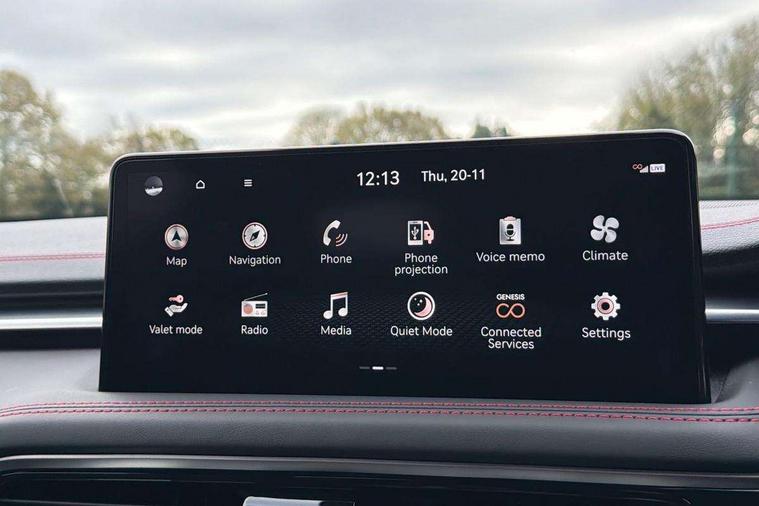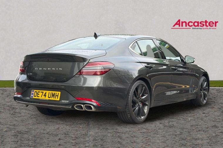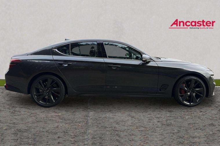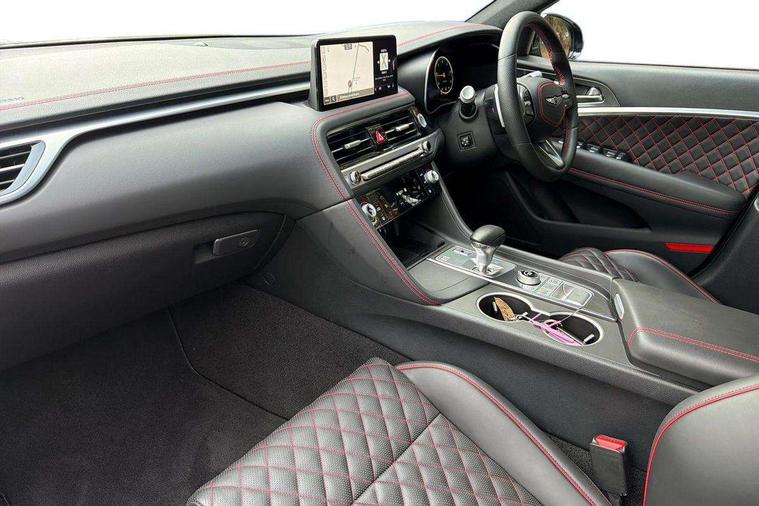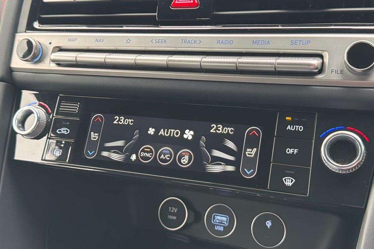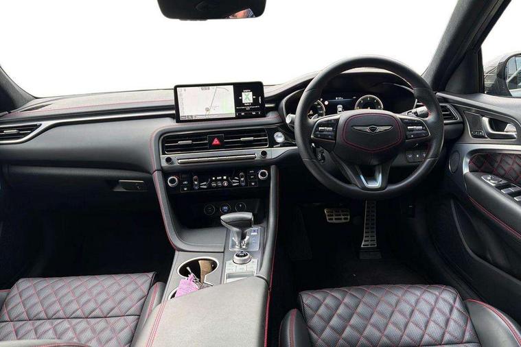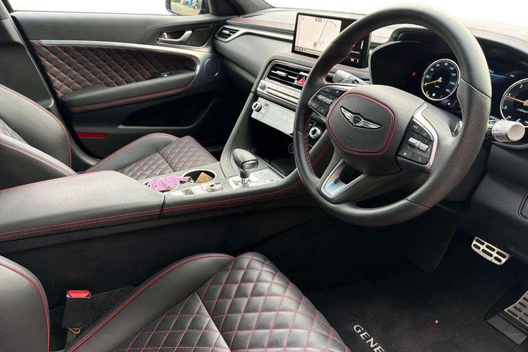10.25" navi screen + DAB radio + phone mirroring + genesis connected, 8" Dashboard cluster TFT display, Blind spot collision avoidance assist rear (BCA-R), Drive mode integrated control, eCall emergency call system, Electric power steering, Electric rear tailgate opening, Electronic chromatic mirror with HOMELINK, Forward Collision Avoidance Assist Junction Turning (FCAJX), Front parking sensors, Highway Driving Assist (HDA), Intelligent speed limit assist (ISLA), ISG with AMS 2, Lane Following Assist (LFA), Lane keeping assist (LKA), Lighting backup guidelines, Low washer fluid warning, Manual speed limit assist (MSLA), Rack and pinion mounted motor driver power steering (MDPS), Rear parking sensors without button, Rear view camera with dynamic guidelines on screen, SCC smart cruise control with stop and start, Trip computer, Wireless phone charger, Battery saver, Electronically controlled suspension, Limited slip differential, Shift by wire - E shift, 1x USB front, Steering wheel audio remote control, Active hood system, Aero blade wiper, Auto up/down windows, Automatic headlights with dusk sensor, Automatic window defogger, Beltline in satin finish, Black painted single rear muffler and chrome coating, Body coloured bumpers, Body coloured door mirrors, Body coloured outside door handles, Body coloured side sills, Dual front LED low and high projection headlamps with high beam assist, Electrochromic inside rear view mirror, Electrochromic outside rear view mirrors, Insulated hood, Laminated front side glass, LED daytime running lights, LED position lamp, LED rear combination lamp, LED rear fog lamp, LED rear stop light, Outside electrical folding rear mirror, Outside rear mirrors electrical adjustment + heated, Puddle lamps with logo, Rain sensor, Rear boot, Rear door glass + backlite glass (solar + solar), Rear side wing doors, Rear spoiler with high mounted stop lamp, Side repeater lamp in exterior mirrors, Sport appearance, Tow hitch receiver, Windshield acoustic film, Windshield glass + front door glass (solar with sun blind + solar), 2nd row heating floor output, 2nd row remote folding seats, 3 seat bench in 2nd row, 4 way manual headrest adjustment for driver and passenger, 4 way mechanical electric lumbar support for driver, 60:40 split back folding and cushion for 3 passengers, Air purification (PM sensor), Backlight flash heated + timer, Central armrest, Console storage box, Console ventilation duct, Drink holder at centre armrest, Driver and passenger electric seat adjustment, Driver and passenger illuminated LED sunvisor, Driver and passenger seat back panel with pocket, Driver and passenger sliding sunvisor, Driver and passenger vanity mirrors, Driver's seat electric height adjustment, Floor mounted pedal, Foot lamp in front, Front air condition with dual zone adjustment, Front and rear courtesy lamp reflector, Front cup holders, Front passenger seat, Front power outlet, Heated front seats, Heated steering wheel, Height adjustable passenger seat, Ion plated interior door handle, Leather gear knob, LED luggage compartment lighting, Luggage net, Luggage net with hooks, Manual tilt and telescopic steering wheel, Metallic pedals, Overhead console LED lamp with sunglass case & mood lamp, Paddle shifter, Perforated leather with metal grain steering wheel, Premium charcoal cabin filter, PTC heater, Room LED lamp in 2nd row, Up/down rear headrest adjustment, USB charger console inside (1port), USB rear charger console outside (2ports), 3x3 point rear seat belts, ABS + ESC + HAC + MCB (Multi Collision Brake), Brembo premium brakes, Driver and passenger depowered airbag, Driver knee airbag, Dual shell horn, Electronic parking brake with auto hold, Forward collision avoidance system (car/pedestrian/bicycle), Front brake ventilated disc 320mm, Front center side airbags, Front thorax and pelvis + rear thorax + side curtain (ff/rr) airbag, Rear brake ventilated disc 314mm, Rear door child safety locks, Rear seat alert without sensors, Red brake calipers, Tyre pressure monitoring system, Upper and lower rear Isofix child anchor, Central door lock driver's control, Immobilizer + deadlock, Smart key/button start, Aluminum sport dark stripe pattern, Leatherette dashboard, Michelin tyres,