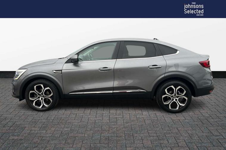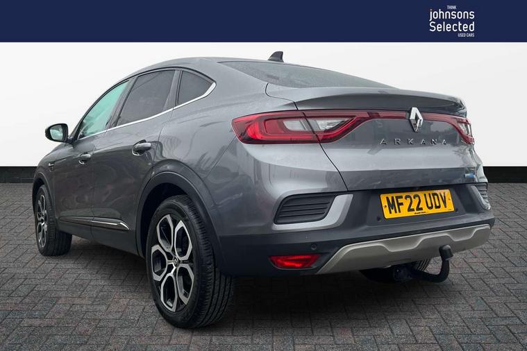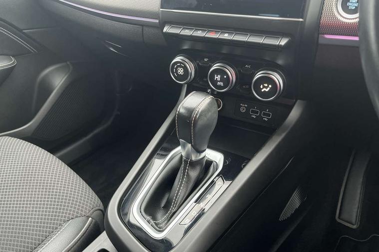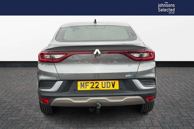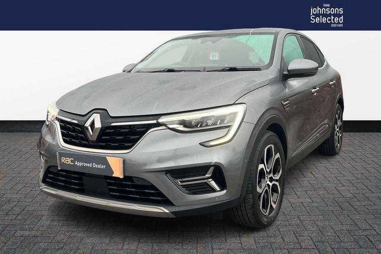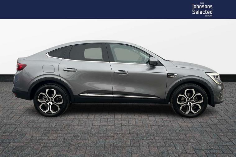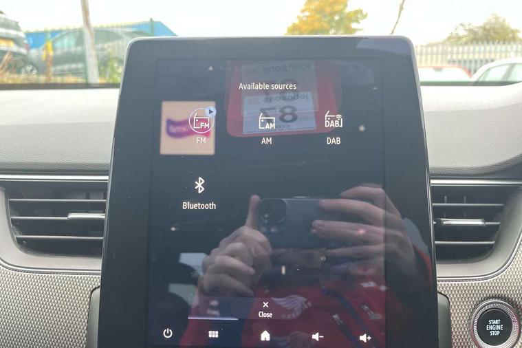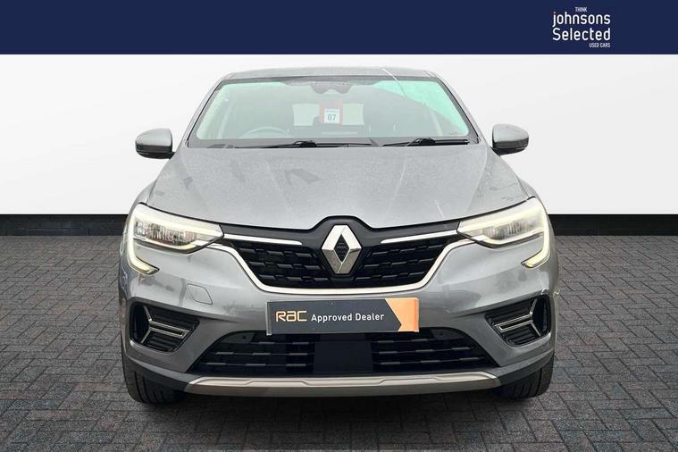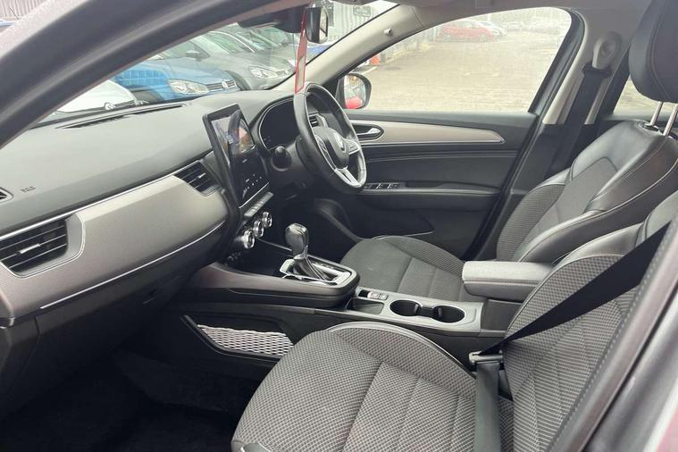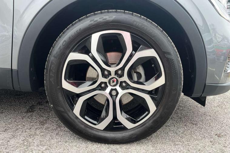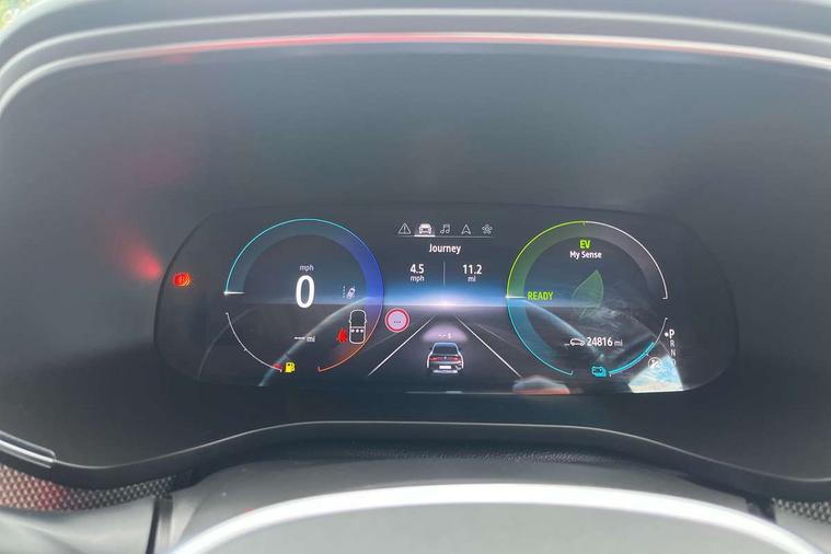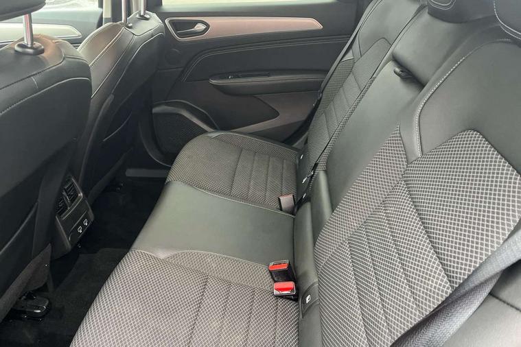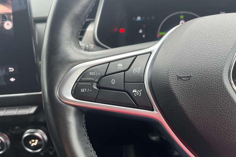 7" TFT Driver information display, Blind spot warning, Bluetooth system, EASY LINK 9.3" portrait touchscreen with navigation, Google search and traffic information, eCall emergency call system, Eco mode, EV button to activate pure mode, Front and rear parking sensors, Gear change indicator, Lane departure warning, Lane keep assist, Multi-sense - 3 driving modes and 8 ambient lighting, Rear cross traffic alert, Rear view camera, Renault automatic emergency assist, Smartphone integration compatible with Apple CarPlay and Android Auto, Traffic sign recognition with over speed prevention, Trip computer, Variable assistance electric power steering, Arkamys classic sound system with 6 speakers, DAB radio, USB port, 3rd brake light, Auto dimming rear view mirror, Automatic headlights, Automatic high / low beam, Automatic windscreen wipers with rain sensor, Black side door protection with chrome insert, Body coloured bumpers, C-shaped LED front signature lighting, Chrome decopart on wing (fender molding), Chrome window lower lining, Extra tinted rear windows and tailgate, Front and rear electric windows, Front driver window with one touch facility and anti-pinch function, Front grille with chrome on upper part, Full LED headlights, Grey front and rear skid plates, Heated rear window, Rain sensor, Rear windscreen wiper, Shiny black shark fin antenna, Side mirrors adjustable electrically, electrically foldable, with defrosting and temperature sensor, automatically foldable at vehicle closure, 3 seat bench in 2nd row, 60:40 split and fixed base rear seats, Automatic climate control with combined filter, humidity sensor and AQS, Central console with storage, Front and rear head restraints, Height and reach adjustable steering wheel, ISOFIX child seat fixing points on rear outermost seats, Leather steering wheel, LED front and rear roof lights, Rear air vents, Single front passenger seat, 3x3 point rear seat belts, ABS+EBA, Active emergency braking system, B Brake Mode - One pedal driving with increased regenerative braking, Distance warning alert, Driver airbag, Driver and passenger front and side airbag deactivation, Driver and passenger side airbags, Driver height adjustable seat belt, Electronic parking brake with auto hold, ESC (Electronic Stability Control), Front and rear no seatbelt warning sound, Front curtain airbags, Front head airbags, Hill start assist, Passenger airbag, Tyre pressure warning light, Anti drill door locks and locking fuel cap, Central door locking, Deadlocking system, Hands free keycard with Keyless access and start, RAID (Renault Anti-Intruder Device) automatic door locking, Rear side wing door and window child locking function (front driver door control panel), Superlocking, Thatcham alarm, 18" Pasadena diamond cut alloy wheels with grey inserts,