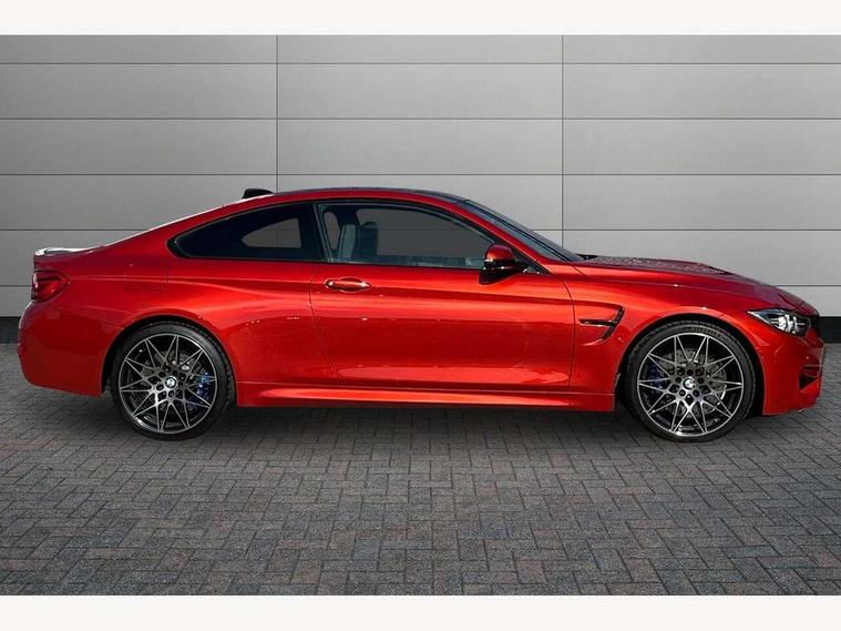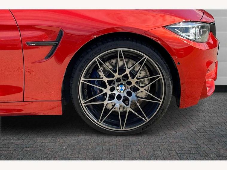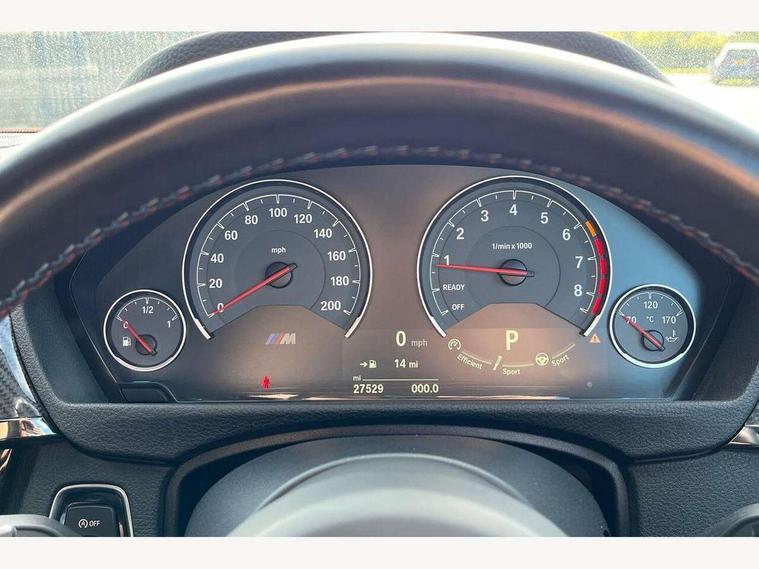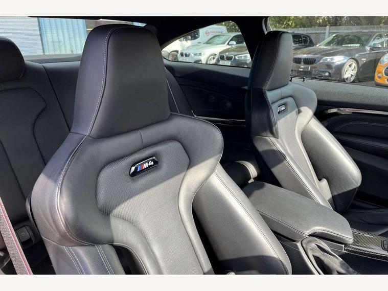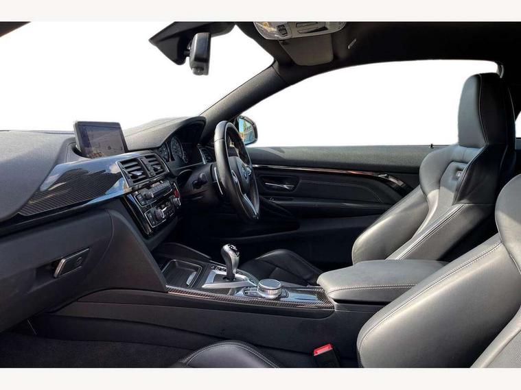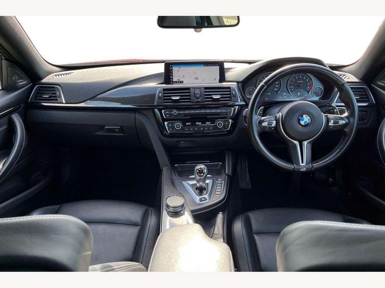 Brake pad wear indicator warning light, Cruise control with brake assist, Door/boot open warning, Electric Power Steering (EPS) with Servotronic, Enhanced bluetooth with wireless charging, Lights on warning, Oil temperature gauge, On board computer, Outside temperature display, Service interval indicator, Stop/start button, Adaptive M Sport suspension, Drive Performance Control, M differential lock, Sport exhaust system, Auxiliary point for auxiliary devices, Bluetooth audio streaming, BMW professional radio/CD/MP3, DAB Digital radio, Wi-Fi hot spot, 2 speed adjustable intermittent wipers with wash/wipe function, Auto dimming rear view mirror, Body colour door handles, Body colour door mirrors, Daytime running lights, Door sill finishers, Dynamic brake lights, Electric adjustable heated door mirrors, Electric front windows/one touch facility, Exhaust tailpipes in high gloss black, Exterior mirrors - electrically folding with anti-dazzle, Follow me home headlights, Heat insulating tinted glass, Heated windscreen washer jets, High gloss black kidney grille, High gloss black M side strakes, Individual high gloss shadow line, LED tail lights, M aerodynamic bodystyling, Rain sensor including auto headlights activation, 12V sockets in front centre console and passenger footwell, 3 spoke leather M sport multifunction sports steering wheel, 4 grab handles, Anthracite headlining, Anthracite Velour floor mats, Driver + passenger electric lumbar support, Driver/passenger sunvisors with illuminated vanity mirrors + covers, Dual zone climate control, Electrically adjustable front seats - driver seat with memory, Front centre armrest with storage compartment, Front cupholders x 2, Front head restraints, Front sliding armrest, Glovebox with lid, Heated front seats, Integrated rear head restraints, ISOFIX child seat preparation+airbag deactivation, Lashing eyelets in boot, Leather gearknob, Leather handbrake grip, M Sports seats, Reach + rake adjustable steering column, Storage compartment in rear centre console, Toolkit located in luggage compartment, Extended lights package - M Series, Media pack - Professional - M4, 3 point seatbelts on all seats, ABS/EBD, Automatic Stability Control (ASC), Cornering brake control (CBC), Crash Sensor - activates hazard/interior lighting + unlocks doors, Driver seatbelt warning indicator, Driver/Front Passenger airbags, DSC+, Dynamic brake control, Dynamic Traction Control - DTC, Front seatbelt force limiters, Front seatbelt pretensioner, Front side airbags, Hill start assist, ITS head airbags for front/rear, Tyre pressure monitor, Warning triangle and first aid kit, Drive away door locking, Electronic immobiliser, Keyless Start, Remote central locking, Remote control Thatcham category 1 alarm, M mobility system (flat-tyre repair system),