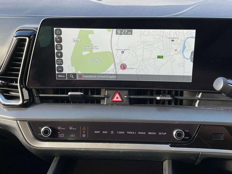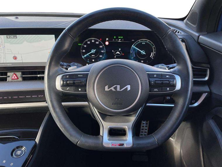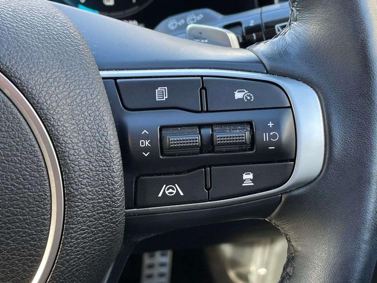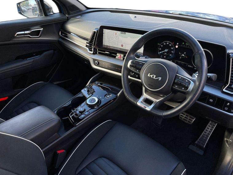 12.3" Display with navigation, 12.3" supervision colour cluster display, 360 degree around view monitor, Apple car play/Android Auto with voice control, Blind spot collision avoidance assist, Blind spot view monitor, Drive mode selector, E-call, Forward collision avoidance assist (FCA) - city/pedestrian/cyclist/junction covering, Front and rear parking sensors, Highway Driving Assist (HDA), Intelligent speed limit assist, Kia Connect (UVO), Lane Following Assist (LFA), Lane keep assist, Low washer fluid warning, Parking collision avoidance assist (PCA), Remote smart parking assist, Reversing camera system integrated into centre fascia screen, Smart cruise control with stop and go functionality, Smart power tailgate, Speed sensitive power steering, Trip computer, Windscreen washer level indicator, Wireless Smartphone charger, Intelligent Stop and Go, Bluetooth audio streaming, DAB Radio with MP3, Harman Kardon premium sound system, Rear USB port, Steering wheel mounted audio controls, USB C type charging ports on centre console, USB C type charging ports on side of front seats, USB port for connection of a media device, All round electric windows with drivers and front passenger auto up/down function, Automatic headlight control system, Automatic window defogger, Backlite glass heated with timer, Body colour and black bumper with silver accents, Body colour exterior door handles, Body colour radiator upper garnish and door garnish, Dual LED adaptive headlamps, Electric panoramic glass sunroof (Electric one touch with safety function), Electrically adjustable/heated/folding door mirrors with LED indicators, Front and rear chrome skid plates, Gloss black door mirrors, Gloss black radiator grille, Gloss black side sill and wheel arch body mouldings, Glossy black roof rack, High beam assist, Interior electrochromic mirror, LED daytime running lights, LED front fog lamps, LED High mounted stop light, LED rear combination lamp, Rain sensing wipers with aero blades, Rear fog lamp, Rear privacy glass, Rear side wing doors, Rear spoiler, Rear wiper, Satin finished beltline, Silver coloured inserts to bumpers, Tinted rear glass, Trailer stability assist, 10 way driver/8 way passenger electrically power adjustable seats, 12V power socket in front centre fascia and luggage compartment, 3 seat bench in 2nd row, 3 x passenger assist grips, 40/20/40 split folding rear seat, All-round height adjustable headrests, Ambient lighting, Black headlining, Centre console storage box, Cupholders in rear armrest, D-Shaped sports leather steering wheel and perforated inserts with GT-Line logo, Door courtesy lamps, Drink holder at centre armrest, Driver and front passenger side sunvisors with illuminated vanity mirrors, Driver seat memory function, Drivers seat power lumbar support, Front and rear door storage, Front seat and rear pockets, Front/rear centre armrests, Gear shift indicator, Glovebox illumination, Heated front and outer rear seats, Heated steering wheel, Interior door lock/unlock function, ISOFIX Child seat top tethers and anchor fixings outer rear seats, LED interior personal lamp, LED lighting in overhead console, Luggage area LED light, Luggage area load cover, Luggage net with hooks, Metal paint interior door handles, Paddle shift controls, Rear cabin light, Rear coat hooks, Single front passenger seat, Sports pedals, Suede leather upholstery, Three zone climate control, Tilt/telescopic adjustable steering wheel, Ventilated front seats, Ventilation ducts to rear compartment, Active front headrests, All round 3-point seatbelts, Anti-lock braking system (ABS), Dual front side airbags, Dual horn, Electronic parking brake, Electronic stability control with downhill brake control, Front passenger airbag cut-off switch, Front seatbelt pretensioners + load limiters, Height adjustable front seatbelts, Hill start assist control (HAC), Impact sensing auto door unlocking, Multi collision brake assist, Rear door child safety locks, Rear seat alert system, Traction control, Twin curtain airbags, Twin front airbags, Tyre pressure monitoring system, Advanced anti-theft system including immobiliser and alarm, Door deadlocks, Engine Start/Stop Button with Smart Entry System, Locking wheel nuts, Speed sensitive auto door locking, Visible vehicle identification number, Aluminium pattern finish centre fascia and door garnish, 18" GT-Line alloy wheels, Michelin tyres, Tyre mobility kit,