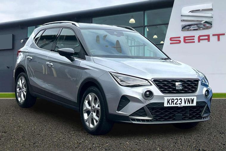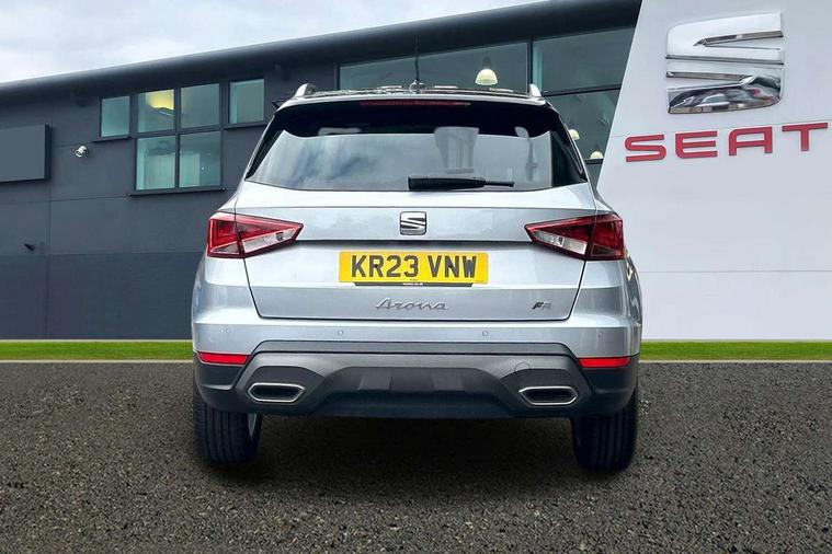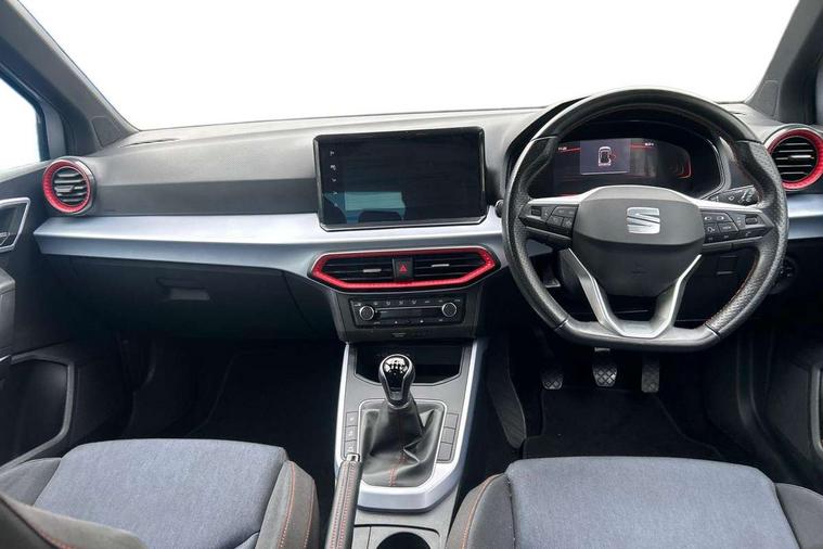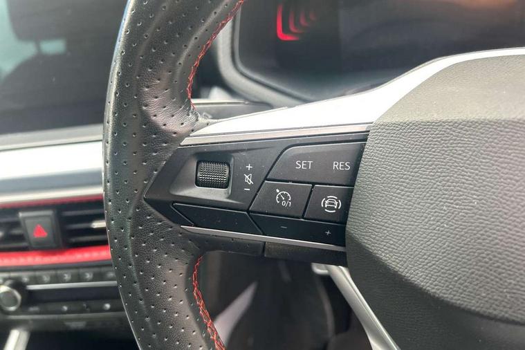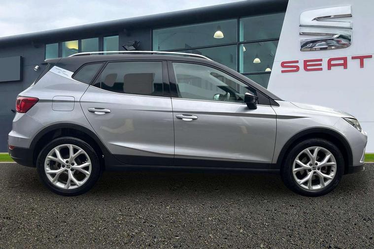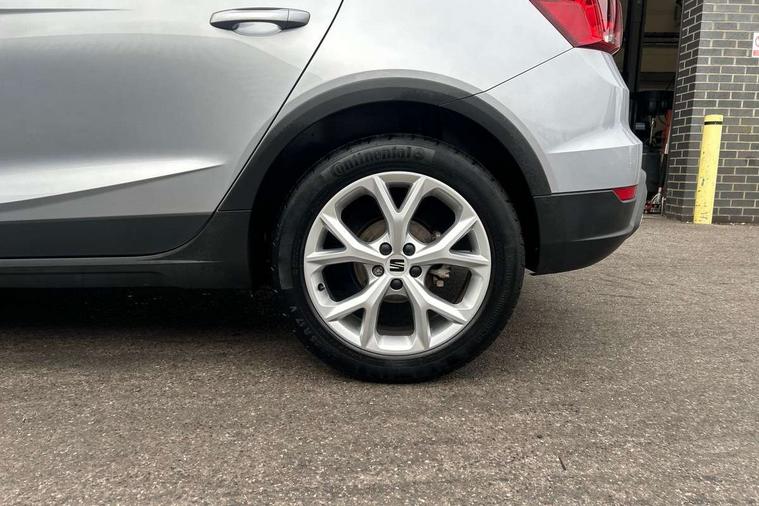 'Lights On' Reminder warning buzzer, 8" Digital cockpit, Digital clock, E-call, Electric speed sensitive power steering, Full Link Smartphone Integration with Mirror Link, Apple Car Play, Google Android Auto with USB Type C cable for Apple and Android compatibility, Lane keeping system, Low fuel warning light, Outside temperature display, Rear parking sensor, RPM counter, Seat connect with safety, service, remote and online, SEAT Drive profile - Four different models normal-sport-eco-individual, steering response, throttle response, Trip computer, Wireless phone charger, 9.2" colour touchscreen with navigation system, voice control and USB port (type c), Bluetooth interface for hands free and audio streaming, DAB digital radio and AM/FM radio, Steering wheel mounted audio controls, Anti theft roof antenna, Auto dimming interior rear view mirror, Automatic activation of hazard warning lights, Body coloured bumpers, Body coloured door handle inserts, Chrome roof rails and window surrounds, Dark tinted rear windows, Electric front/rear windows, Electrically adjustable, heated and folding door mirrors, Front fog lights with cornering function and rear fog light, FULL LED automatic headlights with dynamic headlight range control, coming and leaving home, LED daytime running lights, LED rear tail lights and licence plate lights, Protective side mouldings, Rain sensing wipers, Rear side wing doors, Rear spoiler, Rear window wash/wipe, Roof colour door mirrors, Third brake light, Twin exhaust pipe styling hidden exhaust pipe, Visible VIN plate, Windshield wiper with intermittent control and potentiometer, 2 cupholders, 3 seat bench in 2nd row, 60/40 split folding rear seat, Aircare filter, Black interior roof, Cloth upholstery, Double boot floor, Driver sunvisor with covered mirror + card holder, Dual zone climate control, Front courtesy light with front and rear reading lights, Front sport seats, Gear shift indicator, Height adjustable front seats, Height/reach adjustable steering column, Illuminated boot, Instrument lighting with brightness control, Interior ambient lighting, Interior light in footwell, central console and door panel, ISOFIX points in outer rear seats with top tether anchorage points, Passenger sunvisor with vanity mirror, Perforated flat bottomed leather steering wheel/gear knob/handbrake with red stitching and FR logo, Single front passenger seat, Two front and three rear height adjustable headrests, Interior chrome pack - Arona, 3 point seatbelts on all rear seats, ABS, Active front headrests, Child locks on rear doors, Driver and front passenger airbags with front passenger airbag de activation, front side and curtain airbags, Electronic stability control, Emergency Brake Assist (EBA) and front assist, Front and rear seatbelt reminder, Hill hold control, Multi-Collision braking, Tiredness recognition system, Traction control, Tyre pressure monitoring system, Alarm with back-up horn, Electronic engine immobiliser, Locking wheel bolts, Remote central locking + deadlocks, Tow away protection, Titan black dashboard, 17" Dynamic alloy wheels,