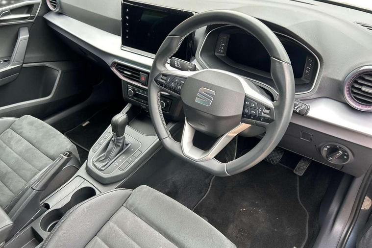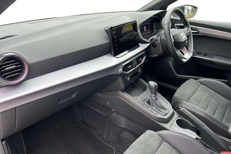 'Lights On' Reminder warning buzzer, 10" Digital cockpit, 9.2" touchscreen navigation system with type C USB socket, Voice control and DAB/AM/FM radio, Auto start and stop system, Bluetooth audio streaming with handsfree system, Digital clock, E-call, Front and rear parking sensors with rear view camera, Full link smartphone integration with mirror link, wireless apple carplay, Google android auto + USB Type C cable for apple and android devices, Lane assist, Low fuel warning light, Outside temperature gauge, Power Steering, Seat connect plus with safety, service, remote and online, SEAT drive profiles and ECO function, SEAT logo boot release, Speed limiter, Traffic sign recognition, Trip computer, Comfort suspension, Auxiliary input socket, Radio/MP3 player, SD card slot, Steering wheel mounted controls, Anti theft roof antenna, Atom grey door mirrors, Auto dimming rear view mirror, Automatic rain sensing wipers, Body colour bumpers, Body colour door handles, Chrome window surround and upper grille surround, Dark tinted rear windows, Electric adjustable/heated/folding door mirrors, Electric front windows, Electric headlight adjustment, Electric rear windows, Front/rear fog lights, FULL LED automatic headlights with dynamic headlight range control, coming and leaving home, LED daytime running lights, LED tail lights, Rear side wing doors, Rear wiper, Third brake light, 3 seat bench in 2nd row, 60/40 split folding rear seat, Ambient interior lighting, Chrome detailing and black headlining, Comfort seats, Dual zone climate control with combination filter, Front centre armrest, Front courtesy lights, Front cupholders x 2, Front reading lights, Gear shift indicator, Glovebox, Height adjustable front and rear headrests (five), Height adjustable front seats, Height/reach adjust steering wheel, Illuminated air vent surrounds, Illuminated boot, Instrument lighting with brightness control, Isofix, Leather multifunction flat bottomed sports steering wheel, Microsuede cloth upholstery, Passenger sunvisor, Single front passenger seat, Storage pockets on back of front seats, Sunvisors with mirror and driver side card holder, Safety and driving pack (M) - Ibiza, Safety and driving pack (S) - Ibiza, 3 point seatbelts on all 3 rear seats, ABS, Active front headrests, Child locks on rear doors, Electronic stability control, Energy recovery system, Front driver and passenger side airbags with curtain airbag and front passenger airbag deactivation, Hill hold control, Multi-Collision braking, Seat belt reminder for front and rear seats, Tiredness recognition system, Tyre pressure monitoring system, Electronic engine immobiliser, KESSY Keyless entry and go, Locking wheel bolts, Perimeter alarm and interior monitoring inc.backup horn, tow away protection and electronic engine immobiliser, Remote central locking + deadlocks, 18" Dynamic machined alloy wheels in Nuclear grey,