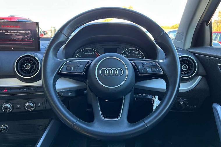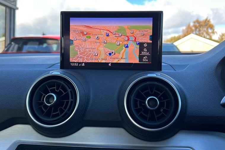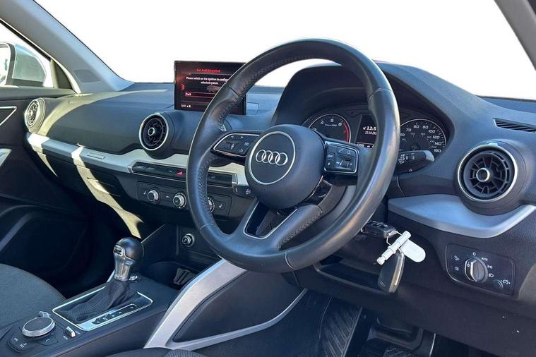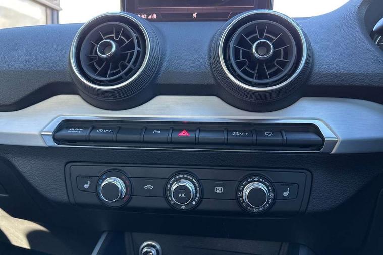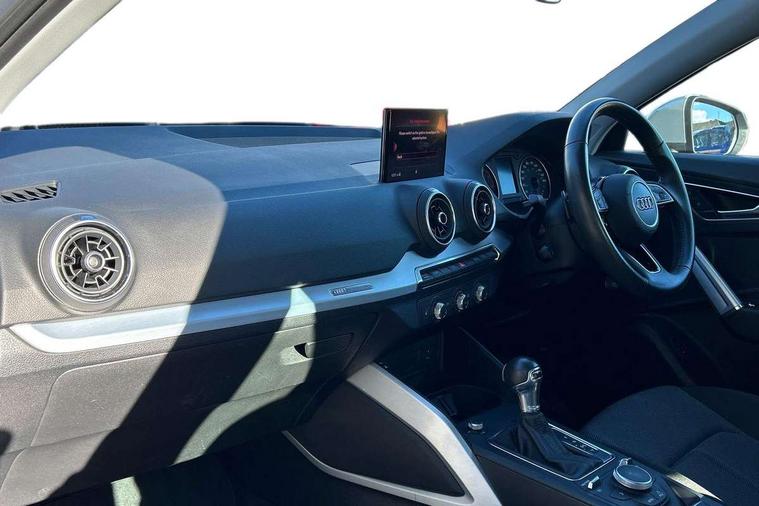Audi drive select, Audi smartphone interface, Automatic start/stop system with recuperation, Bluetooth interface includes bluetooth audio streaming, Cruise control, MMI - Multi Media Interface control system, MMI SD card integrated nav with 3D map display, dynamic route guidance with TMC, MMI search, natural voice recognition and myAudi special destinations, Power operated tailgate, Progressive steering, Service interval indicator, Dynamic suspension, 2 x SDXC card reader, Audi music interface - apple iPod, apple iPhone, USB storage media, compatible MP3 players, 2 x USB charging points and 1 x Aux-in, CD Drive, DAB digital radio and AM/FM radio, MMI radio plus with 7" colour MMI screen and MMI controller, Air inlet in manhattan grey metallic, Black window trims, Body colour door mirrors, Chrome exhaust tailpipe, Electrically adjustable and heated door mirrors with integrated LED side indicators, Front and rear electric windows, Front underbody guard and rear diffuser trim in selenite silver, Front windscreen with grey tinted sunband, Halogen headlights including headlight range adjustment, High gloss black radiator grille, Interior mirror, LED indicator lights, Manual folding door mirrors, Rain and light sensors, Rear wiper, Side skirts in manhattan grey, Wheel arch trims in manhattan grey, 60/40 split folding rear seat bench, Door sill trims with aluminium inlay, Electronically operated child locks, Front centre armrest, Front headrests, Front sports seats, Front/rear floor mats, Height/reach adjust steering wheel, ISOFIX child seat mounting for front passenger with airbag deactivation and outer rear seat including top tether attachment point for outer rear seats, Manual seat adjustment including seat height adjustment for front seats, Storage compartments - Glovebox, cupholder compartment in centre console, storage compartment in rear centre console, front and rear door pockets, Three rear headrests, Titanium grey cloth headlining, Non smoking pack - Q2, 3x3 point rear seatbelts, 6 airbags - Front, curtain and front side airbags, Electromechanical parking brake, Electronic stabilisation control including ABS, ASR and EDL, Extended and proactive pedestrian protection, Hill hold assist, Multi collision brake assist, Pre-sense front with pedestrian recognition, Seatbelt monitoring, Tyre pressure warning light, Warning triangle and first aid kit, Anti theft alarm, Anti theft wheel bolts, Central locking system with remote control key, Aluminium interior element,