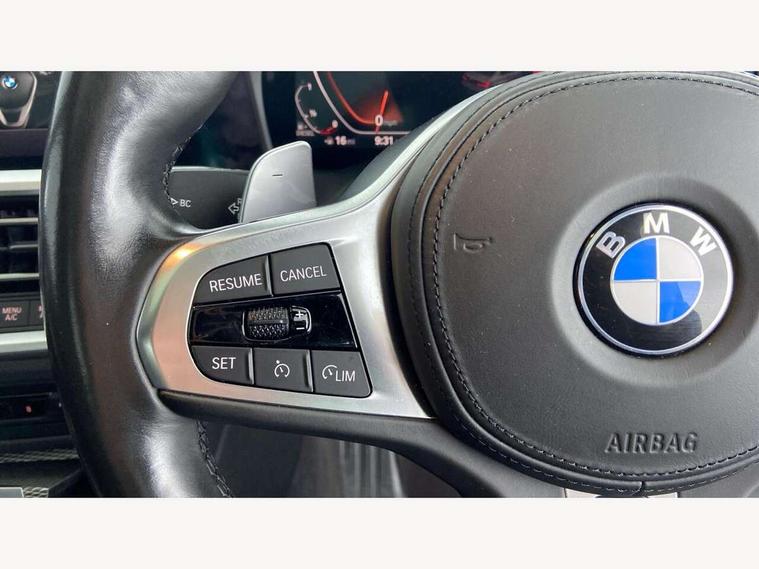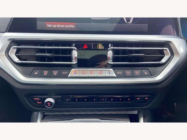 Active guard plus, Attentiveness assist, Auto start-stop, BMW ConnectedDrive online services, BMW iDrive controller on centre console, BMW Live Cockpit Professional sat nav system including 10.25" high resolution display and Intelligent Voice Assistant, BMW service history, BMW Teleservices, Brake pad wear indicator in front and rear, Check Control warning system for monitoring of lights and door/luggage compartment open warning, Condition based service, Electric power steering with Servotronic steering optimised at all speed ranges, Instrument cluster with speedometer with mph readout, tachometer, fuel gauge and oil temperature gauge, Integrated owners handbook, Oil sensor for level and grade, warning by check control system, On board computer - average speed+fuel consumption, service interval, clock/date, odometer/trip meter, outside temperature display and ice warning, Optimum shift indicator, Personal Profile - automatic lock when driving away selectable, Variable sport steering, Balanced 50/50 weight distribution, Battery cut-out switch, Diesel particulate filter, Drive performance control - ECO PRO, comfort and sport modes, Incorrect fuelling protection, Larger capacity fuel tank, M sport suspension, Sport automatic transmission with steering-wheel mounted gearshift paddles and launch control, Stroke dependent dampers, DAB tuner, Electronic service booklet, Acoustic glazing, Active airstream chrome frame kidney grille with 8 high gloss black vertical slats, Automatic headlight beam throw control with load dependent regulating reaction, dynamic compensation of braking dive and acceleration squat, Black roof mouldings, Body colour - fuel filler flap, front and rear bumpers, door handles and mirror caps with integrated turn indicator + bottom segment in matt black, Dynamic brake lights, Electric windows - front and rear, with open/close fingertip control, anti-trap facility and comfort closing, Exhaust tailpipe - split left and right, Extended LED headlights, Exterior mirrors - electrically folding with anti-dazzle, Fading support, Front and rear bumper system with replaceable deformation elements, Front black door sill finishers with BMW designation, Green tinted heat protection glazing, High gloss shadow line exterior trim, Interior rear view electrochromatic mirror with automatic anti dazzle function, LED front fog lights, Lightweight engineering, M designation on front side panels, left and right, Matt black exterior B pillar, Rain sensor with automatic headlight activation, Rear wiper, Shark fin antenna, Two part LED tailights in L-shape with components in smoked glass, brake light, LED turn indicator and rear fog light, Visible VIN plate, Welcome lights in interior and door handle area, Windscreen wipers with integrated washing jets, xDrive designation on right tailgate, 12V power socket in front storage compartment, 2 front cupholder in centre console with clamping elements and matt black inlay, 3 rear seats with non folding headrests with 3 point seat belts, 3 zone automatic air conditioning, 4 pieces lashing eyelets in luggage compartment, 40:20:40 split folding rear seat with loading system, Ambient lighting with welcome carpet light, Anthracite headlining, Armrest integrated in front and rear door trim + front centre console armrest, Centred top Luggage compartment lights, Four grab handles integrated in roof lining, Front and rear door exit lighting (left / right), Front and rear door pockets, Front and rear reading lights, Front and rear velour floor mats, Front head restraints, Front sport seats, Heated driver and front passenger seats, Height adjustable mechanically and infinitely variable steering column, Illuminated armrest storage compartment, Illuminated glove compartment with separate small compartment, Interior lighting - front centre over interior mirror with soft light, rear centre and front and rear footwell lighting, M Sport multifunction leather steering wheel, Make-up mirror lights, Rear centre armrest with 2 cupholders, Rear centre console with storage compartment and ventilation grille, Sunvisors with vanity mirrors and ticket pocket, Toolkit located in luggage compartment, Connected pack professional - 3 Series Saloon/Touring, M Aerodynamics pack - 3 Series Saloon/Touring, 2 tone horn, BMW emergency call, Brake energy regeneration, Braking pre-tensioning, Child proof locking system in rear door, Child seat ISOFIX attachment rear outer seats, Coasting in idle in ECO PRO mode, Crash sensor activating of airbags, Unlocking doors, hazard warning lights, interior light, safety battery terminal, Driver and front passenger side airbags, integrated in the door side seat backrest bolsters for all seat variants, Driver/Front Passenger airbags, Dry braking, Dynamic brake control, Dynamic stability control + (DSC+) - Anti-lock Braking System (ABS) with brake assist and cornering brake control + Automatic Stability Control (ASC), Dynamic Traction Control - DTC, Electric parking brake including automatic hold function and automatic release of the parking brake when driving off, Electronic differential lock control (EDLC), Front passenger manual airbag deactivation, Head airbags for all 4 outer seats, Hill start assist, M Sport braking system, Seat belt security check for driver and front passenger, Side impact protection, Three 3 point seat belts on all seats including front belt stopper, pyrotechnic belt tensioners and belt force limiters, Tyre pressure monitoring with three level warning strategy, Ventilated front and rear disc brakes, Warning triangle and first aid kit, Alarm system (Thatcham 1) with remote control and electronic engine immobiliser, Central locking switch for all doors, fuel filler cap and luggage compartment, Remote control with integrated key one button open/close vehicle and windows, sole opening of the luggage compartment lid and panic mode, Start/stop button with Comfort Go keyless engine start and auto Start/stop deactivation button, Vehicle k