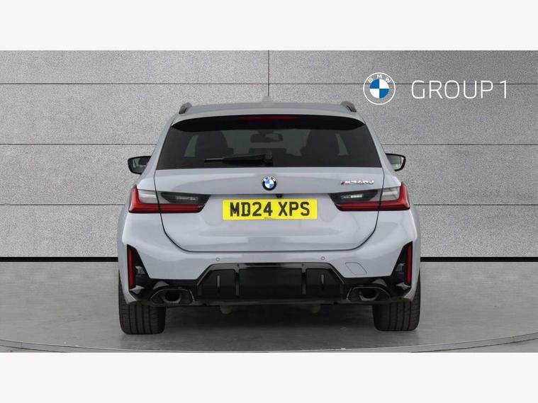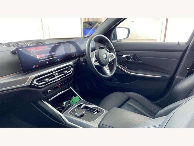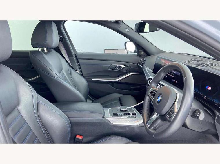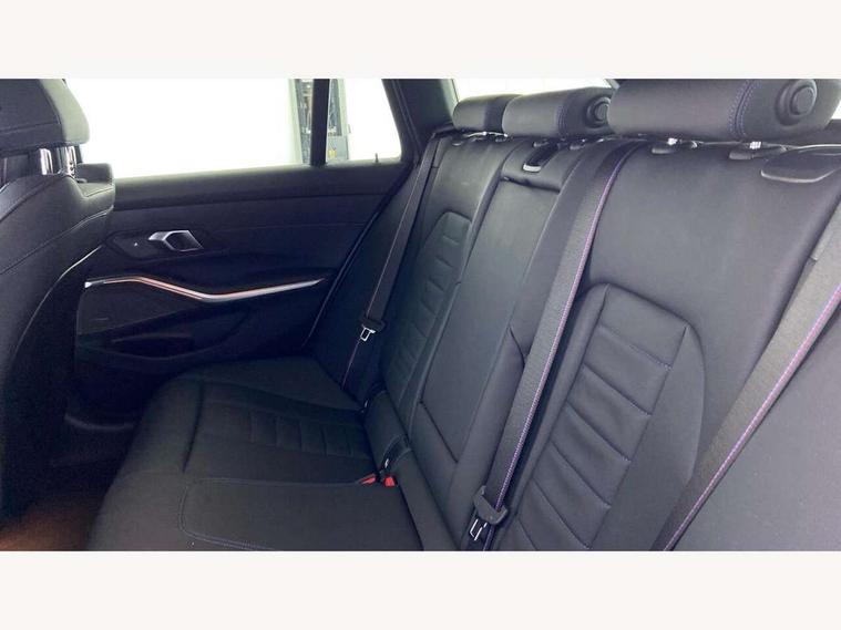 Active guard plus, Attentiveness assist, Automatic Start/stop button, BMW iDrive, BMW Teleservices, Condition based service, ConnectedDrive Services, Driving experience switch, Oil sensor for level and grade, Preparation for driver assistance, Shifting point display, Variable sport steering, 48V Mild hybrid technology, Double joint spring strut front axle, Fuel tank breather system, Larger capacity fuel tank, M Sport differential, Sport automatic transmission with steering-wheel mounted gearshift paddles and launch control, DAB tuner, 3rd brake light, Acoustic glazing, Adaptive LED Headlights, Automated High beam assist, Automatic headlight beam throw control with load dependent regulating reaction, dynamic compensation of braking dive and acceleration squat, BMW emblem, engine compartment lid and tailgate, BMW individual lights shadow line, BMW M Individual high gloss shadow line with extended contents, Body colour roof fin, Door sill strips, Electric windows - front and rear, with open/close fingertip control, anti-trap facility and comfort closing, Follow me home headlight function, Front and rear bumper system with replaceable deformation elements, Front apron plastic in body colour, Fuel filler flap - right rear in body colour, Heated washer jets, High gloss shadow line exterior trim, High gloss shadow line roof rails, Illuminated bow type door handles in body colour drivers side with door lock, Interior rear view electrochromatic mirror with automatic anti dazzle function, LED daytime running lights, LED rear lights, LED turn indicator, Licence plate panel integrated into front bumper and tailgate, Matt black B-pillar finsher, Matt black window recess cover, Model designation on right side of tailgate, One piece front bumper cover including towing eye cover in body colour, Rain sensor with automatic headlight activation, Rear side wing doors, Rear wiper, Reversing lights, Side frame decorative moulding black matt, Sun protection glass, Visible exhaust tailpipe finisher, Welcome lights in interior and door handle area, 12V power socket in front storage compartment, 2 front cupholder in centre console with clamping elements and matt black inlay, 3 seat bench in 2nd row, 3 zone automatic air conditioning, 40:20:40 split folding rear seat with loading system, Ambient inside door handle light, Ambient light design projected onto the left and right entering and exiting area, Ambient lighting front and rear with 9 selectable colours, Ambient storage compartment lighting in the centre console, Anthracite headlining, Armrest integrated in front and rear door trim + front centre console armrest, BMW ID, Contour lighting in instrument panel and door trim panel, Cruise control operation in steering wheel, Driver backrest width adjustment, Folding rear centre armrest with 2 cupholders, Front and rear ambient footwell lighting, Front and rear door exit lighting (left / right), Front and rear headrests, Front and rear reading lights, Front and rear velour floor mats, Heated front seats, Height adjustable mechanically and infinitely variable steering column, Illuminated armrest storage compartment, Illuminated glove compartment, Illuminated luggage compartment, Lashing eyelets in luggage compartment, M Sport multifunction leather steering wheel, Make-up mirror lights, Single front passenger seat, Standard seat for driver and passenger with manual adjustment, Sunvisors with vanity mirrors and ticket pocket, Toolkit located in luggage compartment, Connected pack professional - 3 Series Saloon/Touring, Interior and exterior mirror pack - 3 Series Touring/Saloon, M Aerodynamics package - 3 Series Saloon/Touring, M sport exterior styling pack - 3 Series Saloon/Touring, Storage compartment pack - 3 Series Saloon/Touring, 3x3 point rear seatbelts, BMW emergency call, Child locks on rear doors, Crash sensor activating of airbags, Unlocking doors, hazard warning lights, interior light, safety battery terminal, Driver and front passenger with seat occupancy detection for driver's and passenger side, Driver and passenger side airbags, body protection at side and airbags deploy from seat backrests, Dynamic brake control, Dynamic stability control + (DSC+) - Anti-lock Braking System (ABS) with brake assist and cornering brake control + Automatic Stability Control (ASC), Dynamic Traction Control - DTC, Electric parking brake including automatic hold function and automatic release of the parking brake when driving off, Electronic differential lock control (EDLC), Head airbags in 1st and 2nd row, head protection at side, curtain airbags open from headliner above 1st and 2nd row, M Sport brakes in red calipers, M sport seatbelt, Plastic fuel tank, Side impact protection, Tyre pressure monitoring with three level warning strategy, Ventilated front and rear disc brakes, Warning triangle and first aid kit, Alarm system, Centre lock switch, Closing system with central locking, Electronic vehicle immobiliser, Sensatec instrument panel,