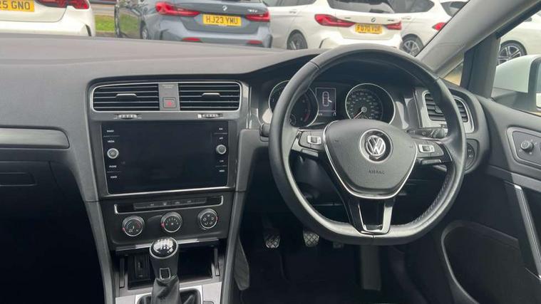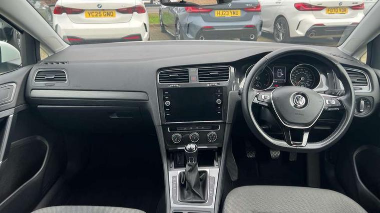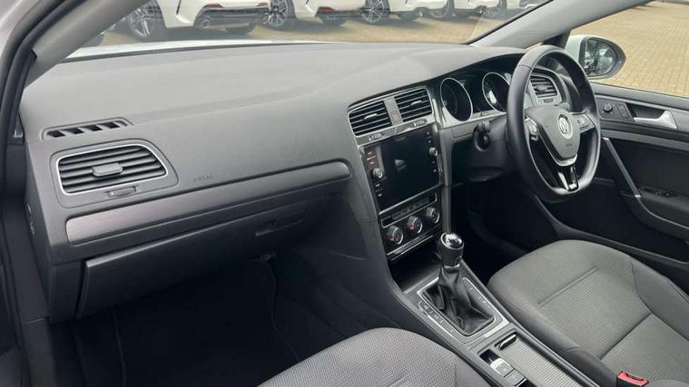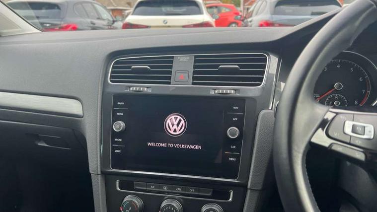 'Lights On' Reminder warning buzzer, ACC - Adaptive cruise control with front assist, forward collision warning, distance monitoring, city emergency brake and speed limiter, Bluetooth telephone and audio connection for compatible devices, Brake pad wear indicator warning light, Driver alert system, Driver profile selection, Driving Mode Selection with four preset modes - Eco, normal, sport or individual modes, Instrument cluster in white, Multifunction computer with visual gear change recommendation for fuel consumption, Power assisted speed sensitive electro-mechanical steering, Push tank flap, Speed limit display, Speedo, rev counter, electronic odometer, trip, service interval display, exterior temperature and fuel gauge, Stop/start system, Warning buzzer and light for front seatbelts unfastened, Battery regeneration during braking, XDS electronic differential lock, Composition media system, DAB Digital radio receiver, Driver Personalisation profile selection, MP3/WMA compatability, Multi device interface (MDI) with USB connection, Personalisation 1.1 profile for media, Premium USB cable in choice of either Apple or Android smartphone compatibility, SD card slot, SMS Functionality, USB and SD card connectivity, Black front air intake and radiator grille with chrome insert, Black rear diffuser, Body colour bumpers, Body colour door handles, Body colour door mirrors with integrated indicators, Dusk sensor + automatic driving lights, Electric front windows, Electric rear windows, Electrically adjustable and heated door mirrors, Fully galvanised body, Heated rear windscreen, Hidden exhaust pipe, High level 3rd brake light incorporating LED Technology, LED daytime running lights, LED front fog lights with static cornering light function, Rear fog lamp, Rear tinted glass 65% light absorbing from B pillar backwards, Rear window aerial, Rear window wash/wipe with intermittent wipe, Reflectors in all doors, Tailgate with integrated rear roof spoiler, Windscreen wipers/ intermittent wipe + 4 position delay, 12V socket in luggage compartment, 3 rear headrests, 4 load lashing points in luggage compartment, 60/40 split folding rear seat backrest, Auto fold down lever in rear seat backrest, Bag hook in luggage compartment x 2, Cooled glovebox, Cupholder cover, Dust/pollen filter, Front and rear reading lights incorporating LED technology, Front centre armrest with storage compartment and two rear air vents, Front seat back storage pockets, Grab handles front x 2, rear x 2 with integrated coat hooks, Height and reach adjustable steering wheel, Illuminated vanity mirrors, Instrument lighting white adjustable panel illumination, Interior light delay, Isofix preparation for 2 rear child seats, Load through provision with rear centre armrest and cupholders x2, Luggage compartment lighting, Overhead storage box, Passenger underseat drawer, Pearl grey headlining, Storage box in luggage compartment, Storage compartment in roof console with cover, Storage compartments in centre console, Storage compartments in front doors, Storage compartments in rear doors, Stowable luggage compartment cover, Sun visors, Variable boot floor, height adjustable and removable, Convenience Pack - Golf, Light and Sight pack - Golf, Mirror pack - Golf, 3 rear three point seatbelts, Airbags - Driver's and front passenger's, curtain airbag, Driver's knee, front side impact and passenger's airbag deactivation switch, Anti-lock Braking System (ABS) with Hydraulic Brake Assist (HBA), Automatic post collision braking system, Child locks on rear doors, Driver/Passenger optimised head restraints, Electronic parking brake with auto hold, Electronic stability control (ESC) including Electronic differential lock (EDL) and ASR (Traction control) with deactivation via infotainment system, Front ventilated disc brakes and rear disc brakes, Pre crash preventive occupant protection, Three point height adjustable front seatbelts with tensioners, Tyre pressure loss indicator, Alarm with interior protection and deactivation via infotainment system, Electronic engine immobiliser, Remote central locking with 2 remote folding keys, Brushed dark silver decorative inserts in dash and door panels, Chrome plated air vent surround, Chrome plated electric mirror adjustment light switch surround, Polar night black centre console, Steel space saver spare wheel,