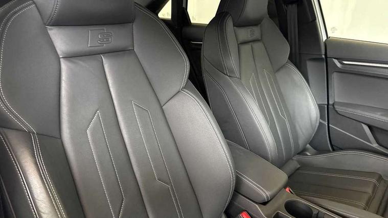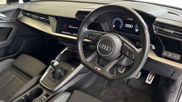 Audi drive select (Auto, Comfort, Dynamic, Efficiency and Individual), Audi smartphone interface, Audi Virtual Cockpit - 10.25" digital and colour instrument cluster, Automatic start/stop system with recuperation, Bluetooth interface, Camera based traffic sign recognition, Collision avoidance assistant, Cruise control + speed limiter, e-Call (emergency call), Electromechanical power speed sensitive steering, Lane departure warning system, MMI Navigation Plus with high resolution 10.1" colour touch screen display, Rear parking sensors, Service indicator, Trip computer, Voice control system with natural language interaction, Sports suspension, 2xUSB-C connection with data and charging functions, 6 passive loudspeakers, CD player, DAB Digital radio, 3rd brake light, Acoustic glass windscreen, Audi beam uses LEDs to project the Audi logo onto the ground as you exit your A3, Auto dimming frameless rear view mirror, Electrically adjustable/heated/folding/auto dimming door mirrors with integrated LED indications + kerb view function for passenger side, Front electric windows, Illuminated door sills with aluminium inserts at the front with S logo, LED daytime running lights, LED headlights with LED rear lights and dynamic rear indicators, Light and rain sensors, Model and engine designation badges at rear, Privacy glass - dark tinted rear window, rear door and side windows, Rear boot, Rear electric windows, Rear side wing doors, S roof spoiler, 12V socket and storage compartment in front centre console, 3 seat bench in 2nd row, 3 spoke flat bottomed multi-function leather sport steering wheel, 4 way electrically adjustable lumbar support for driver and front passenger, 60/40 split folding rear seat bench, Black cloth headlining, Dual zone electronic climate control, Front and rear centre armrest in artificial leather, Front and rear headrests, Front/rear floor mats, Height and reach adjustable steering wheel, Interior lighting - glove compartment light and right hand side, Luggage compartment floor covering, Manual boot compartment lid, Single front passenger seat, Stainless steel pedals and front footrest in black, Twin leather upholstery with front sports seats S embossed logo, Aluminium interior elements pack - A3, Black styling pack - A3 Saloon/Black edition, LED interior lighting pack - A3 Saloon, 3x3 point rear seat belts, Driver and front passenger airbag with passenger airbag deactivation, Electronic Stabilisation Control (ESC) including ABS, ASR and EDL, First aid kit with warning triangle and 2 safety vests, Front side airbags with head airbags and interaction airbag, Pre-sense front with pedestrian and cyclist detection, Seatbelt monitoring, Tyre pressure loss indicator, Anti theft alarm, Anti-theft wheel bolts, Electronically operated child locks, Immobiliser, Remote control central locking, Aluminium air vent surrounds, Dark spectrum aluminium inlays, accent surfaces in the dashboard and centre console in platinum grey silk effect paint finish, 19" 5 arm trapezoid design alloy wheels in matt grey with diamond cut finish,