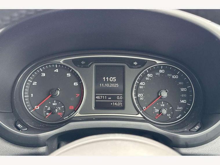 Electro-mechanical PAS, Low washer fluid indicator, Service interval indicator, Voice control system, Additional SD card reader, Audi music interface, Bluetooth audio streaming, DAB Digital radio, Adaptive brake lights, Electric adjustable door mirrors, Electric front windows, Front fog lights, Heat insulating glass, Heated door mirrors, Heated rear windscreen, Rear wiper, 12V Accessory socket in centre console, 3 spoke leather multifunction sports steering wheel, Adjustable rear head restraints, Cupholders in centre console, Door sills trims with aluminium inlays, Front floor mats, Front head restraints, Front seats - 'Easy Entry', Front sports seats, Height adjustable front seats, Illuminated glovebox, Isofix attachments on rear seats, Jack and tool kit, Leather handbrake, Lumbar adjustment for front seats, Rake/reach adjustable steering wheel, Split folding rear seats, ABS/EBD, Brake assist function, Driver and passenger side airbags, Driver/Front Passenger airbags, EDL, ESP with ASR, First aid kit, Front and rear seatbelt reminder, Front passenger airbag deactivation, Head airbags, Height adjustable front seatbelts, Rear three point seatbelts x 2, Tyre pressure monitor, Warning triangle, Locking wheel bolts, Remote control central locking, Thatcham category 1 alarm + immobiliser, Tyre repair kit,