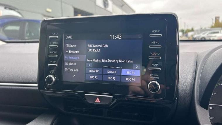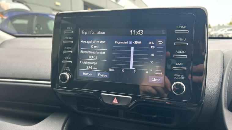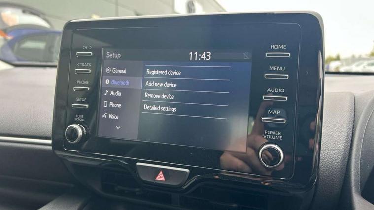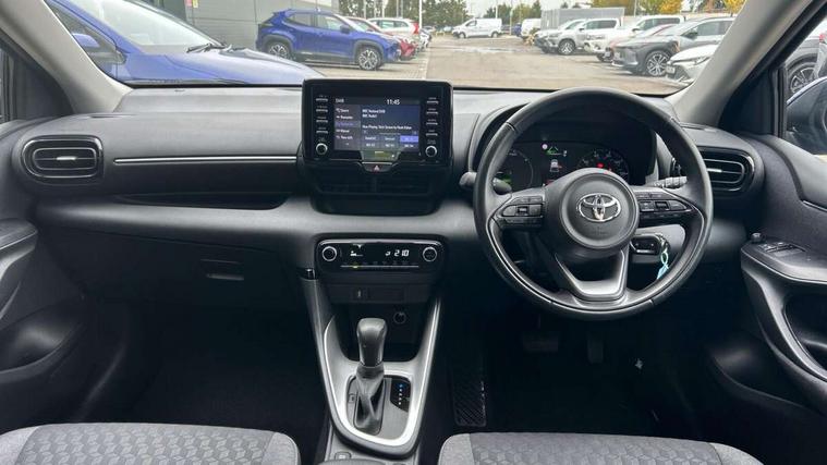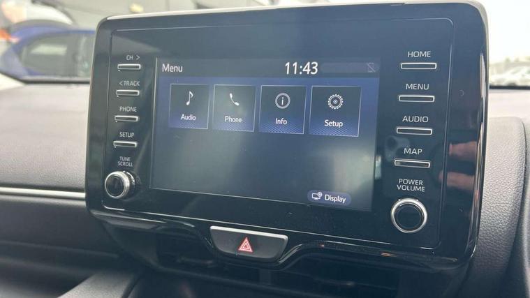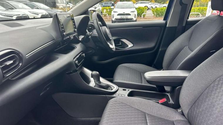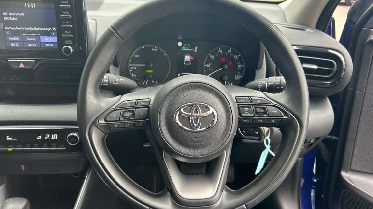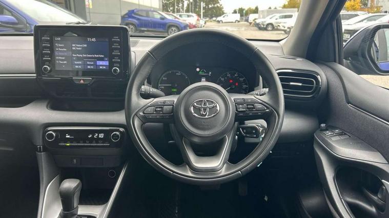 4.2" coloured TFT multi information display with analogue speedometer, Adaptive cruise control, Adjustable speed limit with speed warning, Bluetooth connectivity, E-call, Electric power steering, Hybrid energy display, Multi information display switches on steering wheel, Reversing camera, Smartphone integration with Apple CarPlay and Android auto, Tailgate, Voice recognition, Vehicle Stability Control (VSC), 4 speakers, 7" Multimedia display touch screen, Toyota Touch 2 with DAB, USB connection, Acoustic windscreen glass, Auto windscreen wipers, Automatic headlights, Body coloured door mirrors, Bulb indicators, Chequered front grille, Daytime running lights, Electric adjustable heated door mirrors, Follow me home headlights, Front auto power windows with anti jam protection, Halogen projector headlights, LED High mounted stop lamp, Manual headlight levelling, Rain sensor, Rear side wing doors, Rear spoiler, Rear wiper, Shark fin antenna, Turning signal integrated indicators in door mirrors, Variable front intermittent wipers, 3 adjustable rear headrests, 3 seat bench in 2nd row, 3 spoke leather steering wheel, 60/40 split folding rear seat, Active headrests, Adjustable boot height, Auto air conditioning, Coat hooks in rear grab handles, Cup holders (2 front & door), Data Communication Module (DCM) connected services, Fabric upholstery, Front armrest, Glovebox, Grey roof lining, Height adjustable driver's seat, Isofix seat fixing, Leather gearshift, Pollen filter, Shopping bag hooks, Single front passenger seat, Tilt/telescopic steering column, 3 point seatbelts on all rear seats, ABS+EBD+Brake assist, Electronic parking brake, Emergency brake light system (EBS), Front passenger airbag on/off switch, Front seatbelt reminder, Hill start assist control (HAC), Rear child proof door locks, Rear seat belt reminder, Supplemental Restraint System (SRS) 8 airbags: Driver & passenger's airbags, dual side curtain airbags, side impact airbags, front centre airbag, Toyota Safety Sense 2, Precollison + Night time Pedestrian & Cyclist Detection, Lane Trace Assist, Auto High Beam, Intelligent ACC & Road Sign Assist, Tyre pressure warning system, 2x Master key, Alarm/immobiliser, Remote powered central double locking doors, Soft touch instrument panel, Space saver spare wheel,