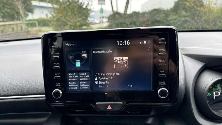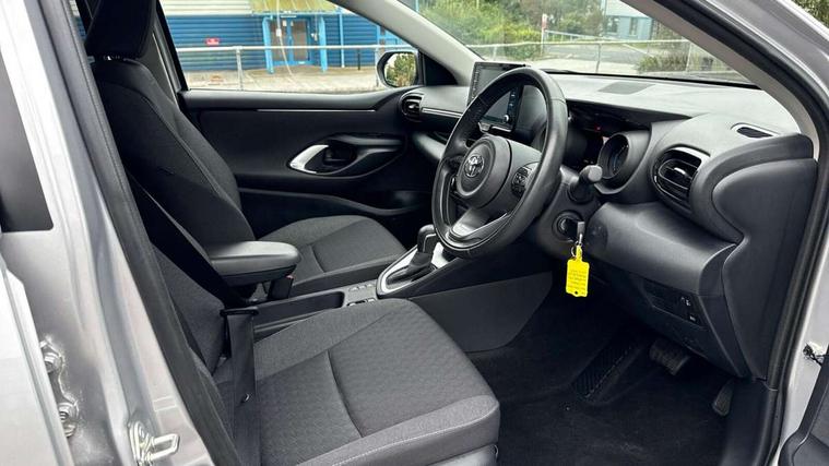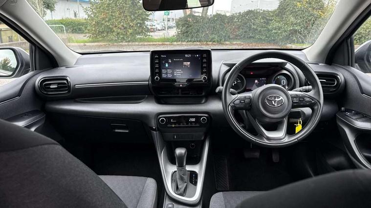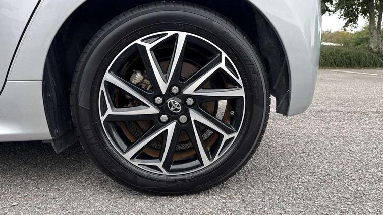 Adaptive cruise control, Adjustable speed limit with speed warning, Bluetooth connectivity, Colour binocular inspired displays with digital speedometer, E-call, Electric power steering, Hybrid energy display, Multi information display switches on steering wheel, Reversing camera, Smartphone integration with Apple CarPlay and Android auto, Tailgate, Voice recognition, Vehicle Stability Control (VSC), 4 speakers, 8" Multimedia display touch screen, USB connection, Acoustic windscreen glass, Auto windscreen wipers, Automatic headlights, Body coloured door mirrors, Electric adjustable heated door mirrors, Follow me home headlights, Front auto power windows with anti jam protection, Full LED rear lights, LED daytime running lights, LED front fog lights, LED front light guide, LED Headlights, LED High mounted stop lamp, LED Indicators, LED rear light guide, Manual headlight levelling, Painted chequered front grille, Rain sensor, Rear auto power windows with anti jam protection, Rear privacy glass, Rear side wing doors, Rear spoiler, Rear wiper, Shark fin antenna, Turning signal integrated indicators in door mirrors, Variable front intermittent wipers, 3 adjustable rear headrests, 3 spoke leather steering wheel, 60/40 split folding rear seat, Active headrests, Adjustable boot height, Auto air conditioning, Coat hooks in rear grab handles, Cup holders (2 front & door), Data Communication Module (DCM) connected services, Fabric upholstery, Front armrest, Glovebox, Grey roof lining, Height adjustable driver's seat, Isofix seat fixing, Leather gearshift, Pollen filter, Shopping bag hooks, Single front passenger seat, Tilt/telescopic steering column, 3 point seatbelts on all rear seats, ABS+EBD+Brake assist, Electronic parking brake, Emergency brake light system (EBS), Front passenger airbag on/off switch, Front seatbelt reminder, Hill start assist control (HAC), Rear child proof door locks, Rear seat belt reminder, Supplemental Restraint System (SRS) 8 airbags: Driver & passenger's airbags, dual side curtain airbags, side impact airbags, front centre airbag, Toyota Safety Sense 2, Precollison + Night time Pedestrian & Cyclist Detection, Lane Trace Assist, Auto High Beam, Intelligent ACC & Road Sign Assist, Tyre pressure warning system, 2x Master key, Alarm/immobiliser, Remote powered central double locking doors, Soft touch instrument panel, Space saver spare wheel,