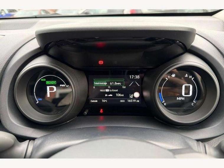 4.2" multi information display, 8" Toyota touch 2 multimedia system with Smartphone integration with Apple CarPlay and Android auto, Adjustable speed limiter, Bluetooth connectivity, Digital speedometer, Driver attention alert system, eCall emergency system, Electric power steering, Full range intelligent adaptive cruise control, Hybrid system indicator, Key reminder warning, Lane trace assist, Multimedia, audio, telephone and voice recognition switches on steering wheel, My T Connected services, Pre-collision system enhanced with emergency steering assist, Reversing camera, Road sign assist - RSA, Steering assisted vehicle stability control, 6 speakers, DAB Digital radio, USB connection, 3rd brake light, Acoustic windscreen glass, Anti-jam protection on power windows, Auto high beam [AHB] with on/off switch, Automatic headlights, Black lower front grille, Black Shark-fin antenna, Black upper front grille, Black wheel arch mouldings, Body colour door handles, Body colour front bumper, Body colour rear bumper, Electric adjustable heated door mirrors, Follow me home headlights, Front and rear electric windows with auto up/down function, Front intermittent wipers, Halogen projector headlights, Headlight cut off reminder, Indicators integrated on door mirrors, Intermittent rear wiper, LED daytime running lights, LED Indicators, Manual headlight levelling, Manually retractable door mirrors, Noise reduction layer on windscreen, Rain sensor, Rear side wing doors, Rear spoiler, Rear window defogger, 12v power outlet - front, 2x Rear coat hooks, 3 seat bench in 2nd row, 3 spoke leather steering wheel, 60/40 split folding rear seat, Adjustable speed limiter switch on steering wheel, Auto air conditioning, Boot light, Central armrest, Driver and front passenger personal lights, Fabric door trim, Fabric upholstery, Front console box, Front cup holders, Front head restraints, Glovebox, Grey roof lining, Height adjustable driver's seat, Height adjustable front passenger seat, ISOFIX child restraint system, Lane departure alert switch on steering control, Leather gearshift, Manual telescopic and tilting steering wheel, Mirror on driver and passenger sun visor, Pollen air filter, Rear head restraints, Single front passenger seat, Soft tonneau cover, 3x3 point rear seat belts, ABS+EBD+Brake assist, Driver and passenger central airbags, Driver and passenger front airbags, Driver and passenger side airbags, Electronic parking brake, Emergency brake light system (EBS), Front seat belt reminder, Hill start assist control (HAC), Passenger airbag on/off switch, Pre-collision system with pedestrian and cyclist detection, Rear door child safety locks, Rear passenger side airbags, Rear seat belt reminder, Traction control, Tyre pressure warning system, Immobiliser, Intrusion alarm, Keyless smart entry with push button start, Power door locks, Power passenger window lock, Remote door lock, 16" 10 spoke alloy wheels, Tyre repair kit,