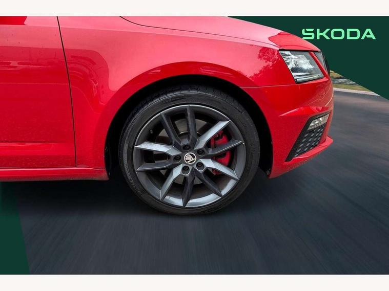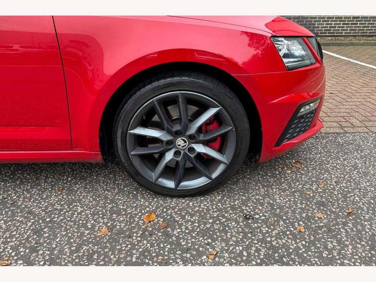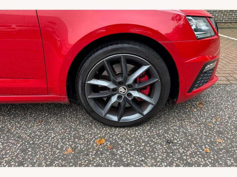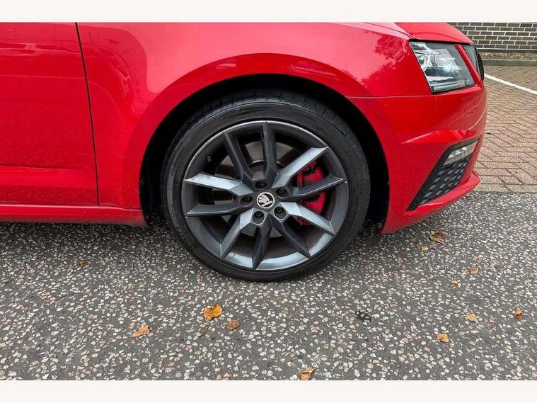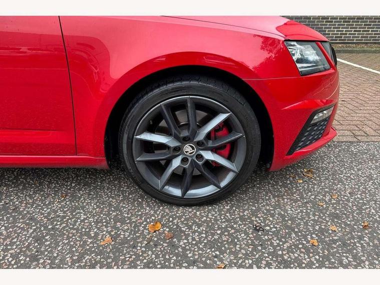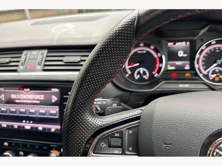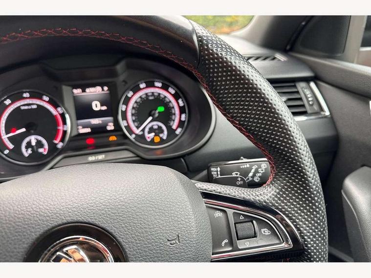 Bluetooth system, Drive mode selector, Driver alert system, Electro-mechanical PAS, Fatigue detection system, Multifunction colour trip computer, Outside temperature gauge, Service interval indicator, Voice control system, Electro-mechanical front differential lock, Sports suspension, Auxiliary input socket, Bolero Radio, DAB Digital radio, Multi device interface, SD card slot, USB connection, Adaptive front lighting system, Aero wiper + intermittent function, Auto dimming rear view mirror, Body colour door handles, Body colour side mouldings, Body coloured bumpers, Door sill, Electric front windows, Electric heated + adjustable door mirrors, Electric rear windows with child safety lock, Headlight washers, Internally adjustable headlight beam level, LED daytime running lights, LED Headlights, LED rear lights (high), Privacy glass, Rain sensor, Rear wiper, Tinted glass, 3 spoke supersport multifunction leather steering wheel including paddle shift, Air re-circulation and pollen filter, Ambient lighting in door trim, Backrest release, Chrome inner door handles, Driver's vanity mirror, Dual zone automatic air conditioning with humidity sensor and control, Floor mats, Front armrest with storage box, Front footwell illumination, Front seat and rear pockets, Front sports seats, Height adj rear head restraints, Height adjustable front head restraints, Height/reach adjust steering wheel, Illuminated air conditioned glovebox, Illuminated luggage compartment, Interior courtesy light operated by door switches, Isofix child seat preparation, Lashing eyelets in boot, Passenger underseat drawer, Passenger vanity mirror, Rear armrest with 2 cupholders and load through provision, Rear footwell illumination, Split folding rear seats, Sunglasses storage, Umbrella under front passenger seat, vRS Cloth upholstery, LED Interior lighting package - Octavia, 3 rear 3 point seatbelts + pretensioners, ABS, Automatic post collision braking, Curtain airbags, Driver and passenger airbags, Driver and passenger side airbags, Drivers knee airbag, ESP including MBA, MSR, ASR, EDL, HBA, Fuel supply cut off, Head airbags, Height adjustable front seatbelts + pretensioners, Hill hold control, Passenger airbag deactivate switch, Red brake calipers, Seatbelt warning lamp, Tyre pressure monitor, Alarm, Anti-theft wheel bolts, Electronic immobiliser, Remote central locking, Low rolling resistance tyres,