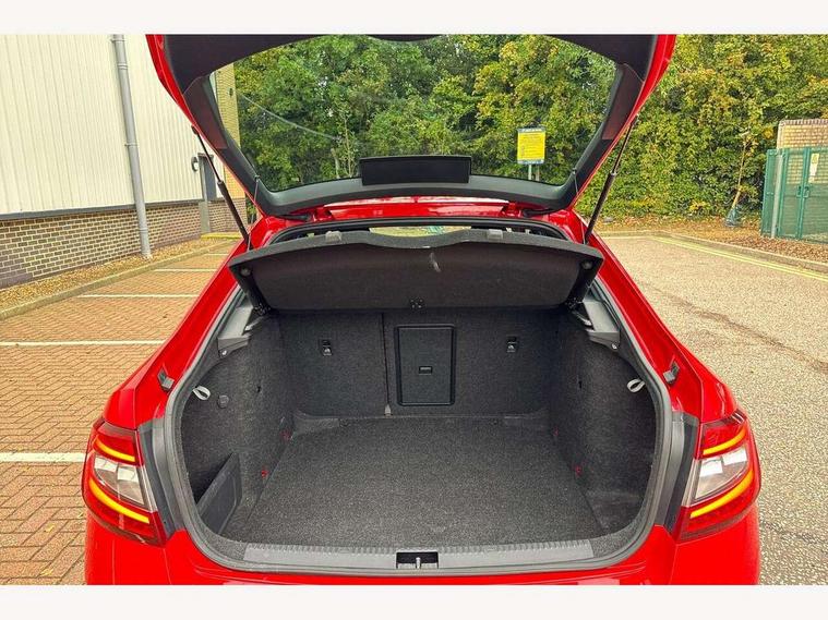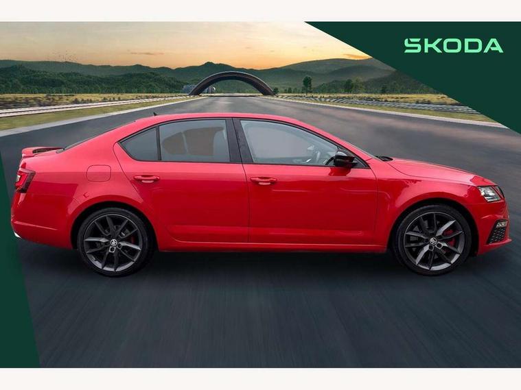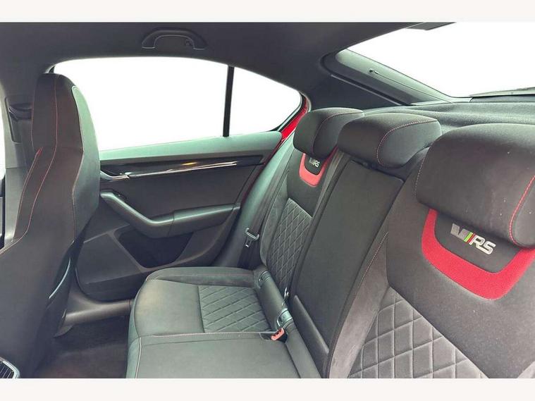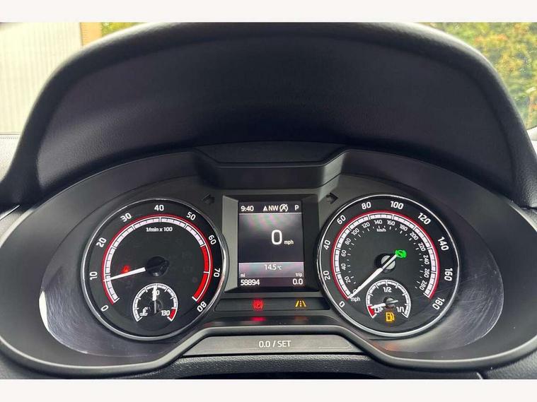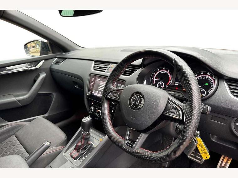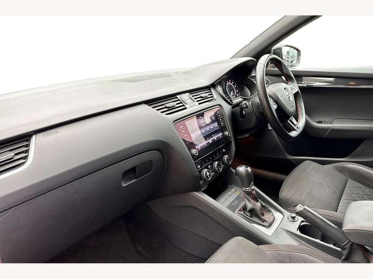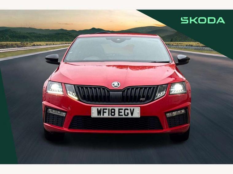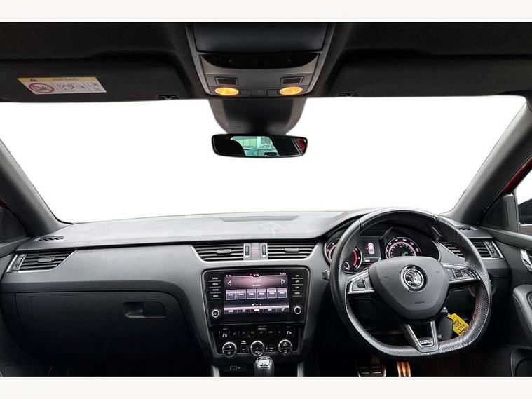 Bluetooth system, Drive mode selector, Driver alert system, Electro-mechanical PAS, Fatigue detection system, Multifunction colour trip computer, Outside temperature gauge, Service interval indicator, Voice control system, Electro-mechanical front differential lock, Sports suspension, Auxiliary input socket, Bolero Radio, DAB Digital radio, Multi device interface, SD card slot, USB connection, Adaptive front lighting system, Aero wiper + intermittent function, Auto dimming rear view mirror, Body colour door handles, Body colour side mouldings, Body coloured bumpers, Door sill, Electric front windows, Electric heated + adjustable door mirrors, Electric rear windows with child safety lock, Headlight washers, Internally adjustable headlight beam level, LED daytime running lights, LED Headlights, LED rear lights (high), Privacy glass, Rain sensor, Rear wiper, Tinted glass, 3 spoke supersport multifunction leather steering wheel including paddle shift, Air re-circulation and pollen filter, Ambient lighting in door trim, Backrest release, Chrome inner door handles, Driver's vanity mirror, Dual zone automatic air conditioning with humidity sensor and control, Floor mats, Front armrest with storage box, Front footwell illumination, Front seat and rear pockets, Front sports seats, Height adj rear head restraints, Height adjustable front head restraints, Height/reach adjust steering wheel, Illuminated air conditioned glovebox, Illuminated luggage compartment, Interior courtesy light operated by door switches, Isofix child seat preparation, Lashing eyelets in boot, Passenger underseat drawer, Passenger vanity mirror, Rear armrest with 2 cupholders and load through provision, Rear footwell illumination, Split folding rear seats, Sunglasses storage, Umbrella under front passenger seat, vRS Cloth upholstery, LED Interior lighting package - Octavia, 3 rear 3 point seatbelts + pretensioners, ABS, Automatic post collision braking, Curtain airbags, Driver and passenger airbags, Driver and passenger side airbags, Drivers knee airbag, ESP including MBA, MSR, ASR, EDL, HBA, Fuel supply cut off, Head airbags, Height adjustable front seatbelts + pretensioners, Hill hold control, Passenger airbag deactivate switch, Red brake calipers, Seatbelt warning lamp, Tyre pressure monitor, Alarm, Anti-theft wheel bolts, Electronic immobiliser, Remote central locking, Low rolling resistance tyres,