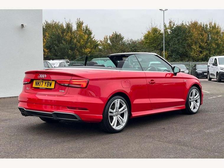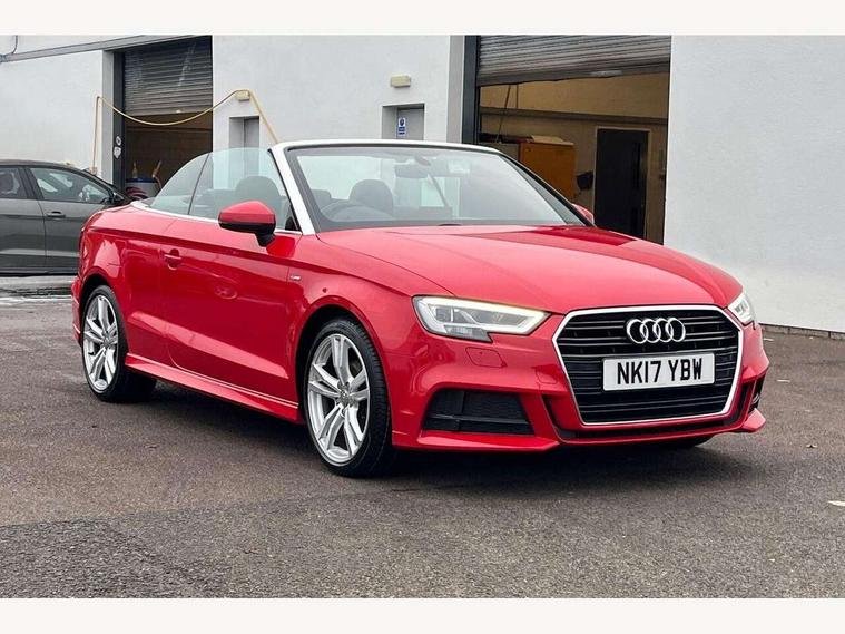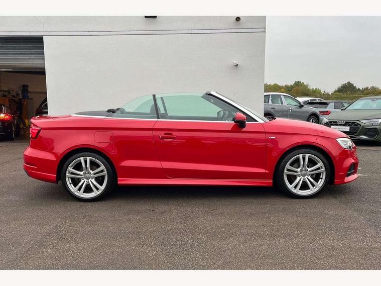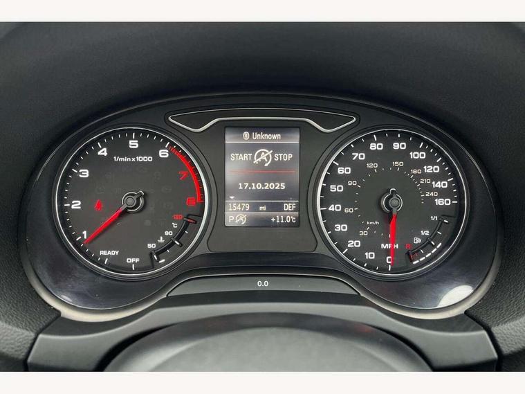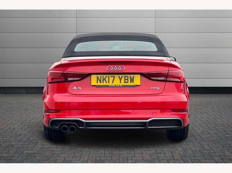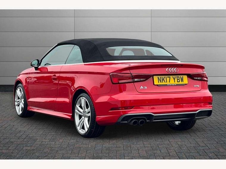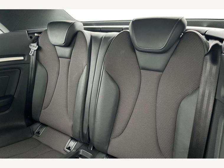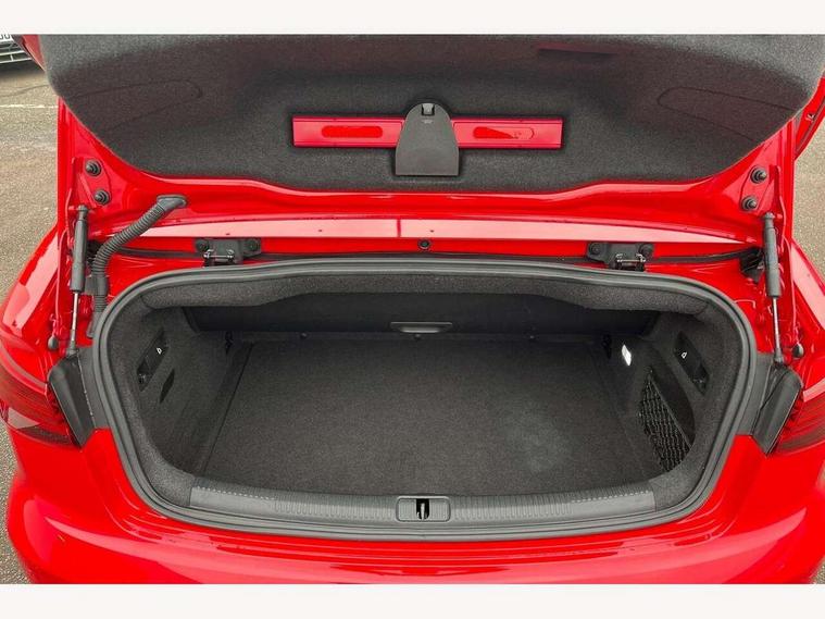 Audi connect, Audi drive select, Audi smartphone interface, Bluetooth interface, Colour driver's information system display, Service interval indicator, 2 USB ports, Audi music interface, DAB Digital radio, Aluminium side window trim, Automatic lights and wipers, Body colour bumpers, Body colour door mirrors with integral indicators, Chrome exhaust tailpipes, Electric operated/heated door mirrors, Front and rear electric windows, Fully automatic acoustic hood, Heated front windscreen, Heated rear window, Heated windscreen washer jets, LED daytime running lights, S Line body styling, 2 height adjustable rear headrests, 3 spoke flat bottom multi-function leather steering wheel including paddle shift, 4 lashing points to secure luggage, 50/50 split folding rear seat, Adjustable front armrest, Driver/passenger sunvisors, Dual zone electronic climate control, Front/rear floor mats, Height adjustable front seats, Height/reach adjustable steering column, Illuminated door sills, Illuminated glovebox, ISOFIX child seat preparation+airbag deactivation, Jack and tool kit, Perforated leather gearknob, Stainless steel pedals, Storage compartment in centre console, Storage compartments in doors, LED interior light pack - A3/RS3, Light and rain sensor pack - A3 Cabriolet, Storage pack - A3 Cabriolet/Saloon, 3 point seatbelts on all seats, ABS/EBD, Active bonnet, Active front headrests, ASR, Automatic roll over protection, Driver and passenger side airbags, Driver/Front Passenger airbags, Drivers knee airbag, EDL, Electromechanical parking brake, ESC - Electronic Stability Control + traction control, Front passenger airbag deactivation, Seatbelt warning, Tyre pressure monitor, Warning triangle and first aid kit, Anti theft alarm, Anti-theft wheel bolts, Immobiliser, Remote control central locking, Aluminium air vent surrounds, Aluminium trim elements, Space saver spare wheel,