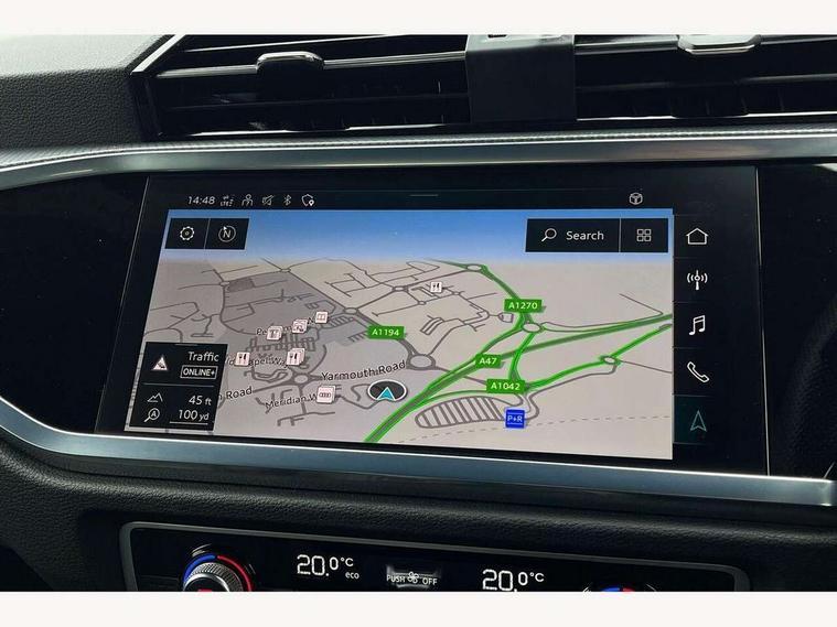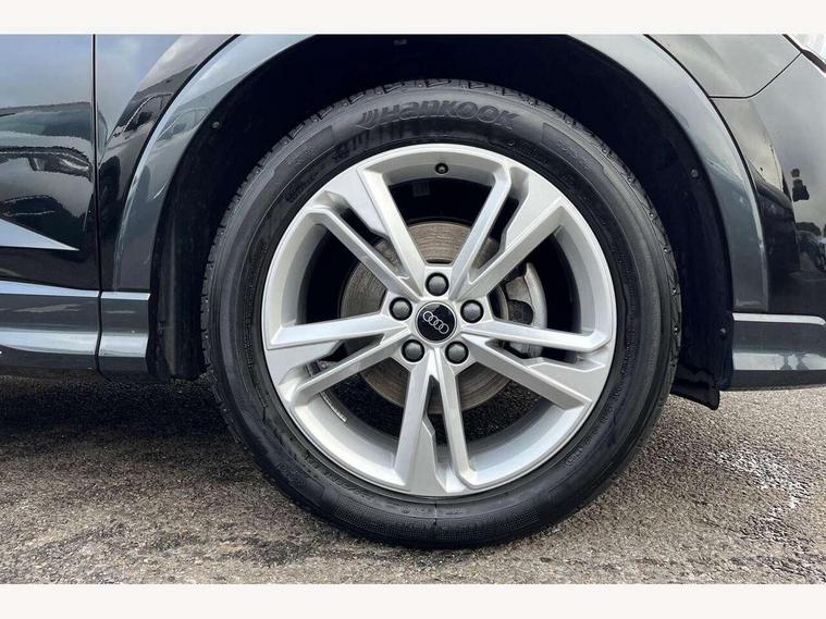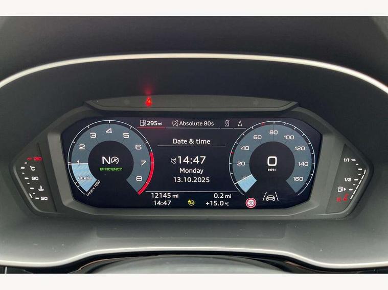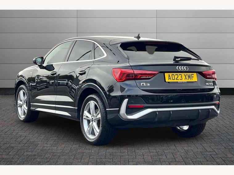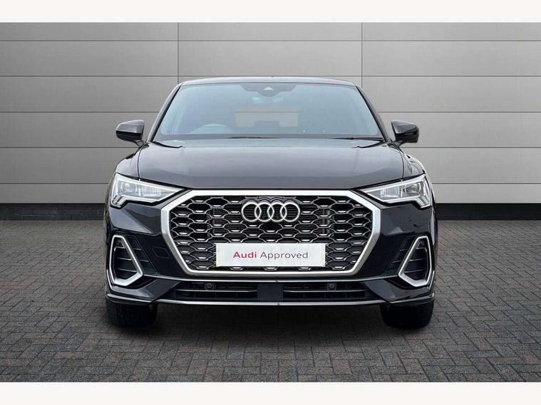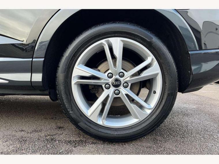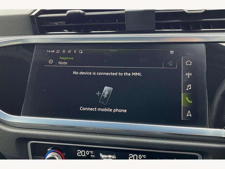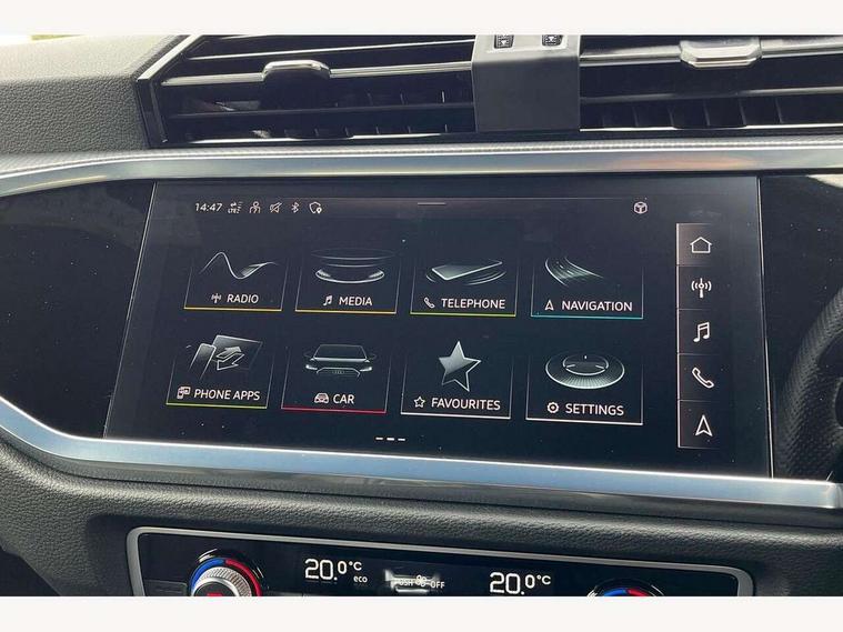 Audi drive select, Audi lane departure warning, Audi Virtual Cockpit - 10.25" display, Bluetooth interface, Camera based traffic sign recognition, Legal emergency call, MMI Navigation Plus with high resolution 10.1 inch touchscreen colour display, Power operated tailgate, Progressive steering, Service interval indicator, Smartphone interface includes wireless Apple carplay/Android Auto, Start stop system with recuperation, Voice control system with natural language interaction, Sports suspension, 2 USB-C ports with charge and data functions, 6 passive loudspeakers, DAB digital radio module, Acoustic windscreen, Aluminium window trim, Auto dimming frameless rear view mirror, Diffuser grille in grained matt black, Diffuser trim in selenite silver, Electrically folding, adjustable and heated door mirrors with integrated LED side indicators and kerb view function for passenger side, Front and rear electric windows, Front fog lights, Front side air inlets in selenite silver, Front underbody protection in manhattan grey paint finish, Grille surround in aluminium silver matt, High gloss black finish B and C pillars, LED Dynamic rear indicators, LED headlights with LED daytime running lights, LED rear lights, LED third brake light, Privacy glass dark tinted rear and rear-side windows (from B-pillar backwards), Radiator grille in anthracite black with inlay in matt aluminium silver, Rain and light sensors, Rear side wing doors, Rear underbody protection in matt black, Rear wiper, S line badges on front wings, S line front and rear bumpers and side skirts in contrasting Manhattan grey paint finish, Side skirt insert in matt Platinium grey, Variable front intermittent wipers, 12V socket in rear centre console, 3 seat bench in 2nd row, 3 spoke leather multifunction steering wheel features S badging and grips in perforated leather with contrast stitching, 40:20:40 folding with manual adjustment for 60:40 forwards/backwards position and backrest angle, Adjustable rear seat bench/backrest with centre armrest and cupholder, Black cloth headlining, Dual zone electronic climate control, Front and rear black floor mats with contrast stitching, Front and rear headrests, Front and rear roof module including reading lights, Front centre armrest, Glove compartment lighting, Height and reach adjustable steering wheel, Illuminated door sill trims with S logo, ISOFIX child seat mounting for front passenger with airbag deactivation and outer rear seat including top tether attachment point for outer rear seats, Luggage compartment light right in white, Luggage compartment sill protection in stainless steel, Manual front seats with height adjustment, Perforated leather gearknob, Single front passenger seat, Stainless steel pedals, Ambient lighting pack - Q3, Non smoking pack - Q3, 3x3 point rear seatbelts, 6 airbags - Driver, front passenger, curtain and side windows, Audi pre-sense front with pedestrain and cyclist recognition, Electrically operated child locks on rear doors, Electromechanical parking brake, Electronic stabilisation control including ABS, ASR and EDL, Front seatbelt reminder, Hill descent control, Hill hold assist, Pre sense basic, Seatbelt monitoring, Tyre pressure warning, Warning triangle and first aid kit, Anti theft alarm, Anti theft wheel bolts, Immobiliser, Remote central locking, Aluminium look interior elements, Black dashboard, Dark matt brushed aluminium inlay, Detail dashboard around MMI touch colour display in glass look, black with surround in aluminium look, Leatherette door armrest,