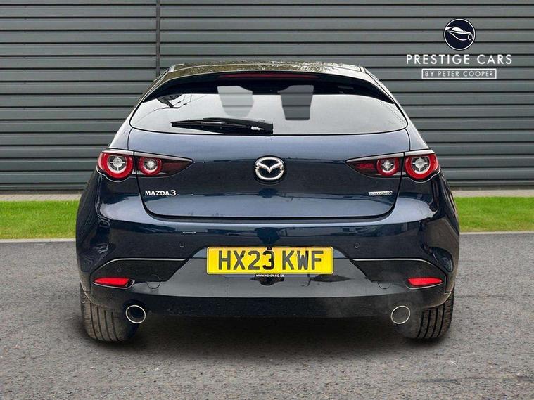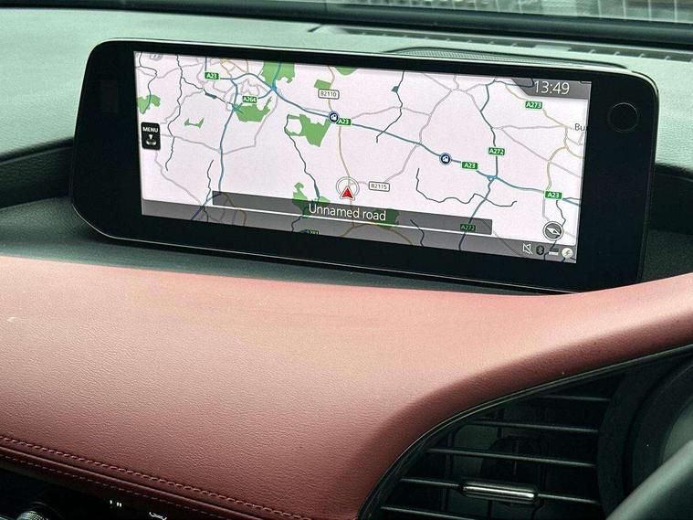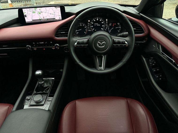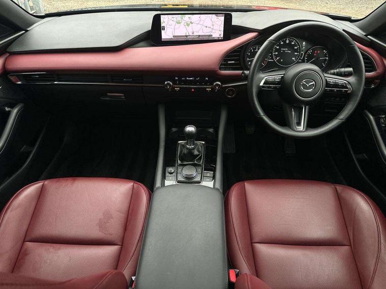 10.25" display with Mazda Connect infotainment, 360 View Monitor, 7" colour TFT display, Audio transfer from bluetooth devices, Blind spot monitoring with rear cross traffic alert, Colour active driving display inc Windscreen projected, Traffic Sign Recognition, turn-by- turn navigation and Mazda Radar Cruise Control information, Cruising Traffic Support, Digital instrument cluster, Driver attention alert system, Driver monitoring system, E-call with GPS, Emergency stop signalling system, Engine start/stop button, Front and rear parking sensor with audible and visual warning, Front Cross Traffic Alert, Integrated bluetooth with steering wheel mounted controls, Intelligent speed assist, Lane keep assist system (LAS) with Lane departure warning system (LDWS), Mazda connected services, Mazda Navigation System with european mapping, Mazda Radar Cruise Control, Mobile App interface, Multimedia Commander, PAS, Service indicator, Tailgate, Traffic sign recognition (TSR), Trip computer, Wireless Apple CarPlay/Android Auto, Wireless charging, i-stop, 2 USB-C ports in the front, Mazda Multimedia System with AM / FM / DAB radio with 12 Speaker Bose sound system, bose centerpoint, bassmatch+audiopilot technology, Adaptive LED Headlights, Auto dimming driver's door mirrors, B-pillar garnish in piano black, Body coloured door mirrors, Coming/leaving home lighting function, Dark metallic finish signature wing, Door mirrors with adjustable memory and tilt-down function when reversing, Dual chrome tailpipes tip, Dusk sensing headlights, Electric front/rear windows with one touch/auto up/down, Electrically adjustable, heated auto power folding door mirrors, Frameless auto dimming interior rear view mirror, Front body coloured bumper with black lower bezel, Front kodo turn signal, Front wiper de-icer, Gloss black finish front grille, Gloss black rear roof spoiler, LED auto headlight levelling, LED indicator lights, LED third brake light, Power tilt and slide sunroof, Privacy glass with dark tinting on rear side windows and rear window, Rain sensing front wipers with adjustable sensitivity and speed, Rear colour coded bumper with gloss black lower moulding, Rear fog lights, Rear side wing doors, Signature LED daytime running lights, Signature LED rear combination lights, Speed adjustable rear wash wiper with intermittent wipe, 12v electrical power outlet, 3 seat bench in 2nd row, 60/40 split fold down rear seats, Chrome interior trim accents with steering wheel centre bezel, surround of engine start / stop button and glove box handle, Dark roof headlining, ceiling and pillars, Dark vinyl leather door panel inserts, Driver's seat power slide, recline, height, seat tilt and lumbar adjustment with head up display and driver door mirror memory, Driver, front passenger and two rear door pockets, Driver, Front passenger and two rear grab handles with coathooks, Driver/passenger sunvisors + vanity mirrors (drivers side with ticket holder), Dual zone climate control air conditioning, Folding rear centre armrest with two cup holders, Front and rear courtesy lamps, Front armrest, Front centre storage with two cupholders, Front head restraints, Front passenger seatback pocket, Front passengers seat manual slide, recline and height adjustment, Gear shift indicator, Heated front seats with 3 stage setting, Heated steering wheel, Illuminated glovebox, ISOFIX child seat anchorage points attached on outer rear seats, Leather upholstery, Leather wrapped gear shift knob, Leather wrapped steering wheel, LED interior light, LED light in luggage compartment, Power outlet in luggage compartment, Roof mounted sunglasses holder, Single front passenger seat, Three height adjustable rear head restraints, Tilt/height adjustable steering wheel, 3 point ELR front seatbelts with pretensioners, 3 rear 3 point seatbelts with ELR, Anti-lock braking system (ABS), Drivers knee airbag, DSC - Dynamic Stability Control, Dual stage driver and single stage passenger airbags, EBD - Electronic brakeforce distribution, Electronic parking brake with auto disengage function and auto hold function, Front and rear curtain airbags, Front passenger airbag cut-off switch, Front side airbags, Front smart city brake support, G-Vectoring control plus, Hill launch assist, Intelligent Traction Control system, Manual child lock in rear doors, Mild Hybrid system with regenerative braking, Rear crossing smart brake support, Rear smart city brake support, Seatbelt reminder for driver/front passenger and rear seats, Tyre pressure monitoring system (TPMS), Auto door lock when driving, Remote central locking + deadlocks, Smart keyless entry, Thatcham accredited alarm and immobiliser, 18" Black alloy wheels, Emergency tyre repair kit,