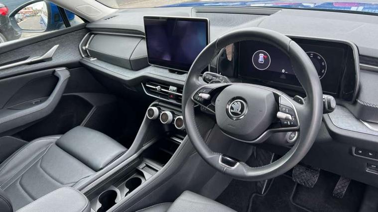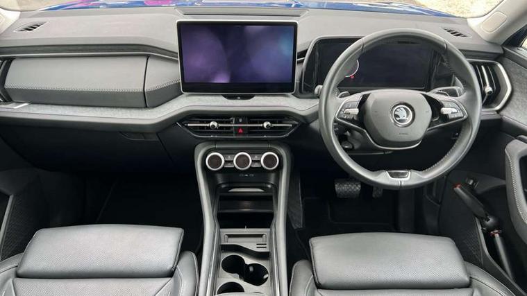 13" satellite navigation touchscreen display, Blind spot detection with door exit warning, Bluetooth system, ChatGPT functionality, Drive mode selector, Driver alert with fatigue sensor, Driver drowsiness alert system, Dry display cleaner, e call+, Front cross traffic assist, Lane assist, PAS, Rear traffic assist, Tailgate unlocking from outside, Traffic sign recognition, USB C Port x 2 in front centre console, Virtual Cockpit - 10.25" digital display, Voice control system, Wireless charging for two smartphones (15W) with cooling function, Wireless SmartLink for Apple CarPlay and Android Auto, Stop/start function, 2x USB-C in the rear, DAB Digital radio, Aero front windscreen wipers with intermittent function, Auto dimming rear view mirror, AWL (all weather lighting) and all weather light with cornering function, Black wheel arch surrounds, Body colour bumpers, Body colour door mirrors and handles, Cornering light and poor weather light, Electric folding /adjustable/separted heated/folding door mirrors, auto dimming with boarding sports and memory function, Electric front and rear windows, Exterior black decorative trims, Heat insulating glass in windshield, Heated rear window, Ice scraper in fuel tank cap, Invisible tailpipe, LED daytime running lights, LED rear fog light, LED third brake light in rear spoiler, Light assistant with automatic headlight control and coming home feature, Logo projection in door mirrors, Privacy glass, Rear side wing doors, Rear spoiler, Rear window wiper, Red decorative strip between rear LED lights, Safety reflectors on front and rear doors, Window control switches with black trim, Windscreen wipers with rain sensor, Without engine designation, 1.5l bottle holder points in all door, 12V socket in boot, 1x centre rear reading light, 2 seat bench in 3rd row, 3 configurable smart dials with 32mm coloured display, 3 seat bench in 2nd row, 4 foldable roof handles with rear coat hooks, Ambient interior lighting - Dashboard, front-door stowage compartments, front and rear door panels and footwell lighting, Automatic gear selector on steering wheel, Chrome interior door handles, Driver/front passenger reading lights, Fabric headlining, Fixed bench 40:60:40 split folding backrests, Front and rear floor mats, Front centre armrest with jumbo box storage compartment, cup holder and 12V socket, Front courtesy lights, Height adjustable front headrests, Isofix child seat fittings in outer middle row rear seats and front passenger with top tether, Manually adjustable steering column, Pollen filter, Rear centre armrest with cupholders, Rear seat boot backrest release, Retractable luggage compartment cover, Single front passenger seat, Sliding trunk cover, Small Bags on the inner sides of the front backrests, Storage pocket including mobile phone pockets on the backs of the front seats, Sunvisors with illuminated vanity mirrors, Three rear height adjustable headrests, Ticket holder on A Pillar, Tri zone climate control, Umbrella in door panel x1 made from sustainable materials, Upper and lower glovebox with card holder and coin compartment, USB C port by rear view mirror for charging only (15W), Exterior styling pack - Kodiaq, Auto door release and activation of warning lights in the event of an accident, Driver and front passenger airbag with knee airbag and front passenger airbag deactivation, Electric child locks, Electronic parking brake, ESC (incl. ABS+EMD+MSR+ASR+EDL+HBA+DSR+RBS+ESBS+MCB+TSA+XDS), Front assist with braking reaction to vehicles, pedestrians and cyclists, Front disc brakes, Fuel cut off safety device, Height adjustable front 3 point seatbelts + pretensioners, Hill hold control, Junction assist with automatic emergency braking, Rear disc brakes, Safety vest holder in door, Seat belt reminder for all seats, Three point rear seat belts, Two tone horn, Tyre pressure monitor, Anti-theft wheel bolts, Immobiliser, Remote central locking with 2 keys, Breakdown kit,
