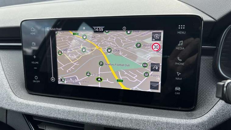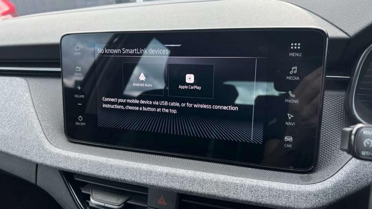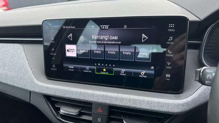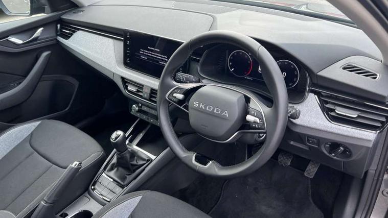 Advanced driver attention and drowsiness monitor, Bluetooth, e-Call (emergency call), Front assist system, PAS, Rear parking sensors, Rear view camera, Speed limiter, Tailgate, Traffic sign recognition, Virtual Cockpit - 10.25" digital display, Voice control system, Wireless smartlink, 4 USB C ports, 8 Speakers, 9.2" Skoda navigation display, DAB radio, Auto dimming rear view mirror, Automatic headlamp activation with Coming home and Leaving home feature, Automatic high/low beam, Body colour bumpers, Body colour door mirrors and handles, Chrome moulding around grille, Front and rear electric windows, Full LED headlights, Heated rear window, LED 3rd brake light, LED brake lights, LED daytime running lights, LED front turning lights, LED high beam, LED low beam, LED taillights, Rear LED fog light, Rear side wing doors, Rear wiper, Tinted windows, Unique dark chrome design logo on alloy wheels, 12V socket in luggage compartment, 3 seat bench in 2nd row, Black / Grey armrest stitching, Black hotstamping, Cargo elements, Chrome inner door handles, Door inserts in satin black, Driver and passenger sun visors with vanity mirror, Dual zone climate control, Front and rear roof lights, Front centre armrest, Front head restraints, Glasses storage in roof liner, Height adjustable driver seat, Height adjustable passenger seat, Ice scraper, Illuminated glove compartment, Inner circulation control with pollen filter, ISOFIX for front passenger seat, Isofix preparation for back seats, Leather gearknob and handbrake lever, Loft cloth upholstery, Luggage net under rear parcel shelf, Manual lumbar support for front seats, Net package and top tether hooks in boot space, Pearl grey ceiling, Pocket on the back of both front seats, incl. mobile phone pockets, Single front passenger seat, Skoda lettering on steering wheel, Textile floor mats, Third rear headrest, Ticket holder, Top tether for front passenger seat, Umbrella in driver's door, 3x3 point rear seatbelts, ABS, Child locks, Curtain airbags and front side airbags, Disc brakes, Driver and front passenger airbags, ESP, Hill hold control, Manual leather parking brake, One tone horn, Passenger airbag switch off function, Seatbelt reminder for driver and front passenger, Tyre pressure monitoring system, Anti theft alarm system with interior monitoring, backup horn and towing protection, Anti-theft wheel bolts, Remote central locking with 2 remote folding keys, SAFE function for remote central locking, Decord pad, door inserts Kota uni,